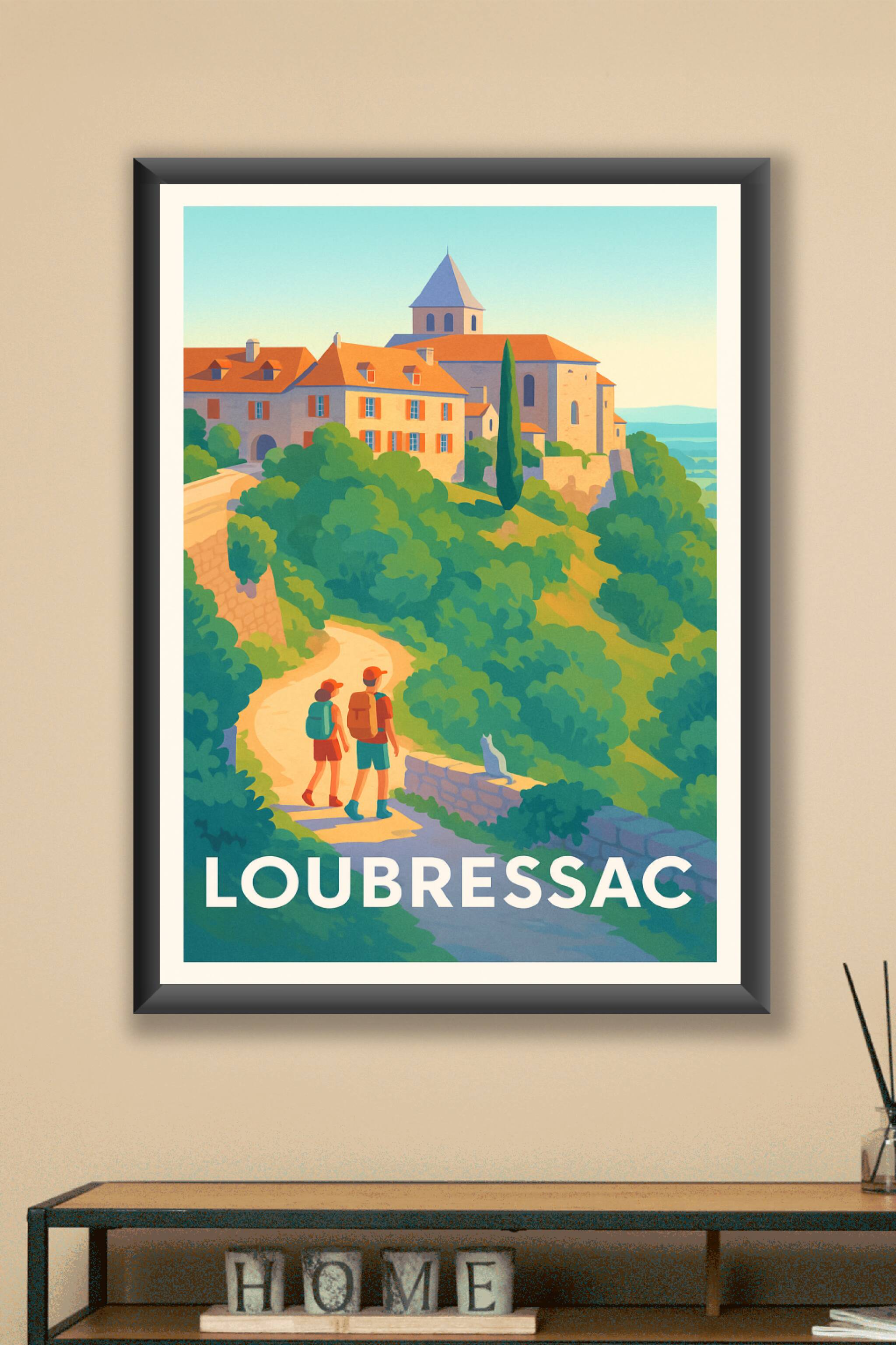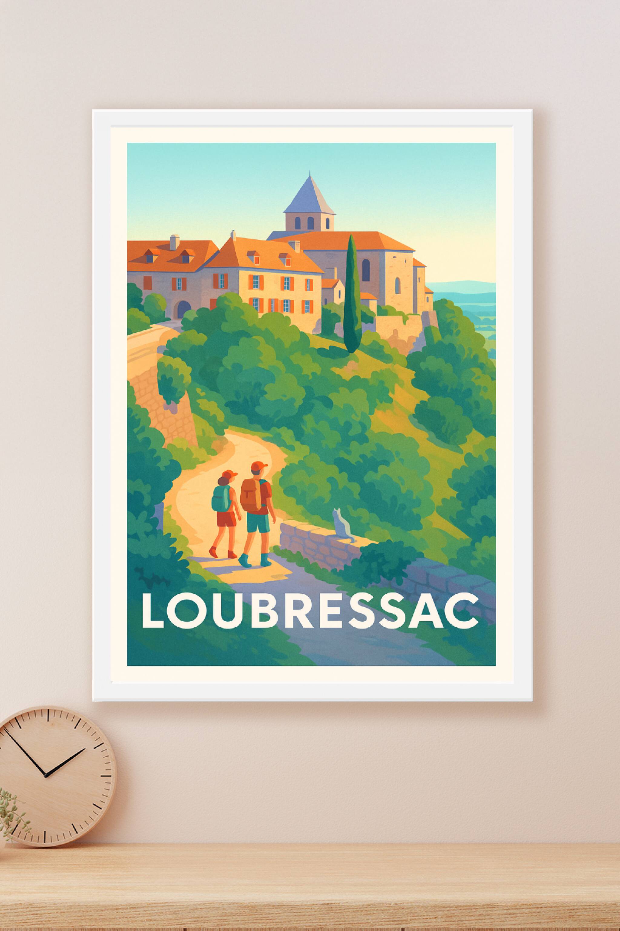 Redécouvrez le charme unique de Loubressac avec cette affiche illustrée qui capture la beauté intemporelle du village perché au cœur de la nature v...