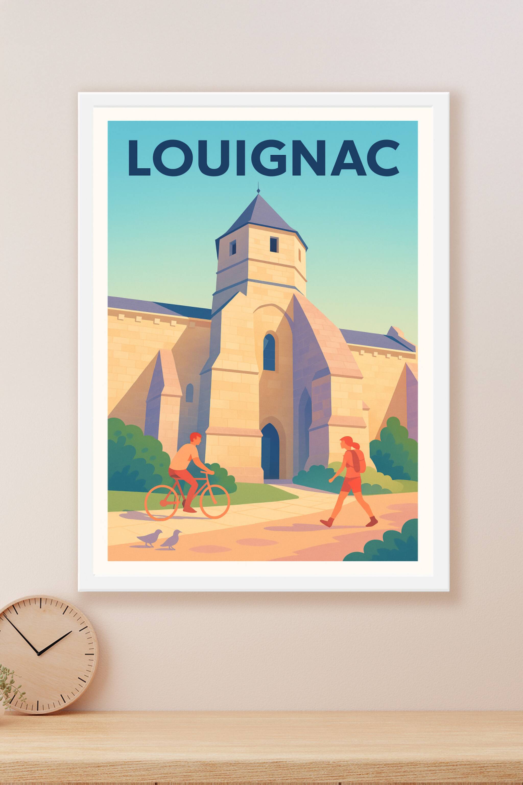 Découvrez l'élégance intemporelle de Louignac à travers cette affiche au style rétro moderne. Le poster met en lumière un édifice emblématique de l...