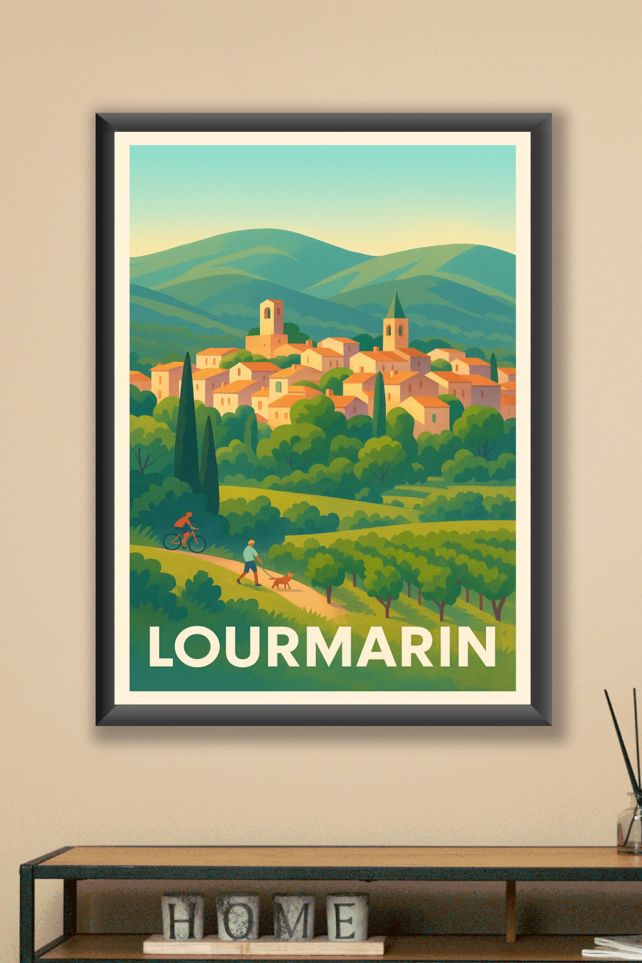 Découvrez la douceur et la tranquillité de Lourmarin à travers cette affiche au style illustratif vintage. Ce poster met en lumière le charme des c...