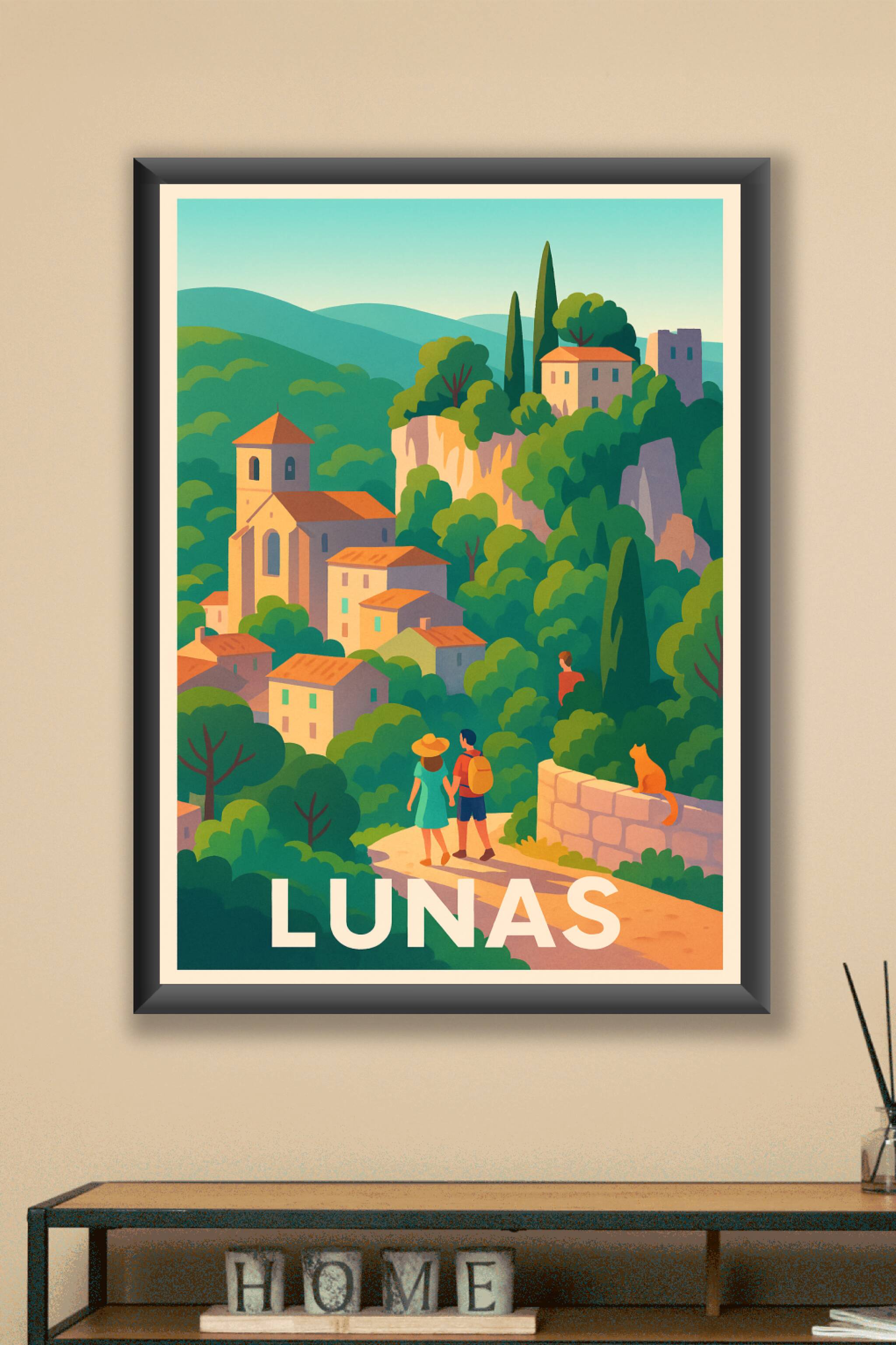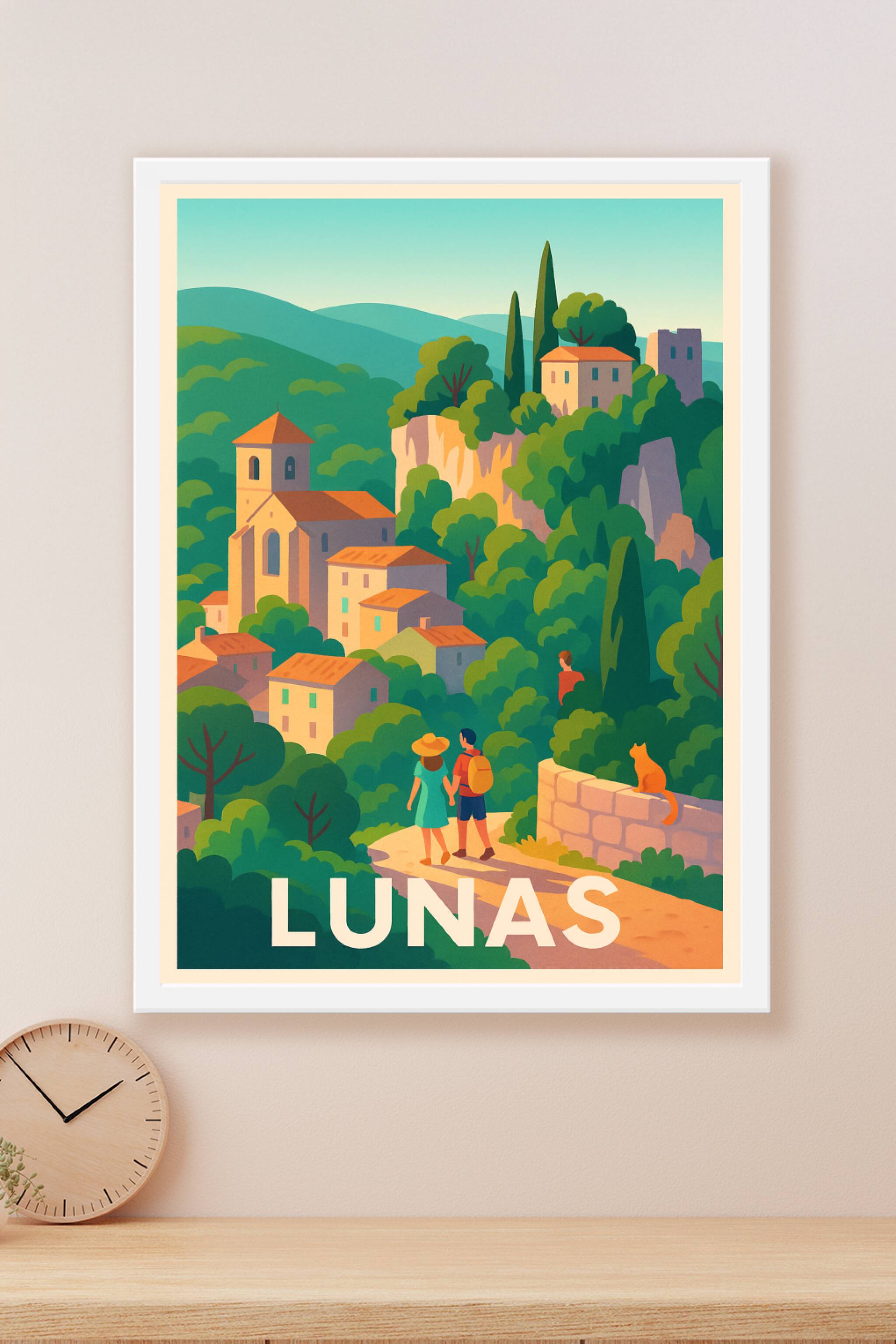 Découvrez l'enchantement du village de Lunas avec cette affiche illustrée toute en douceur et en couleurs vibrantes. Ce poster capture l'atmosphère...