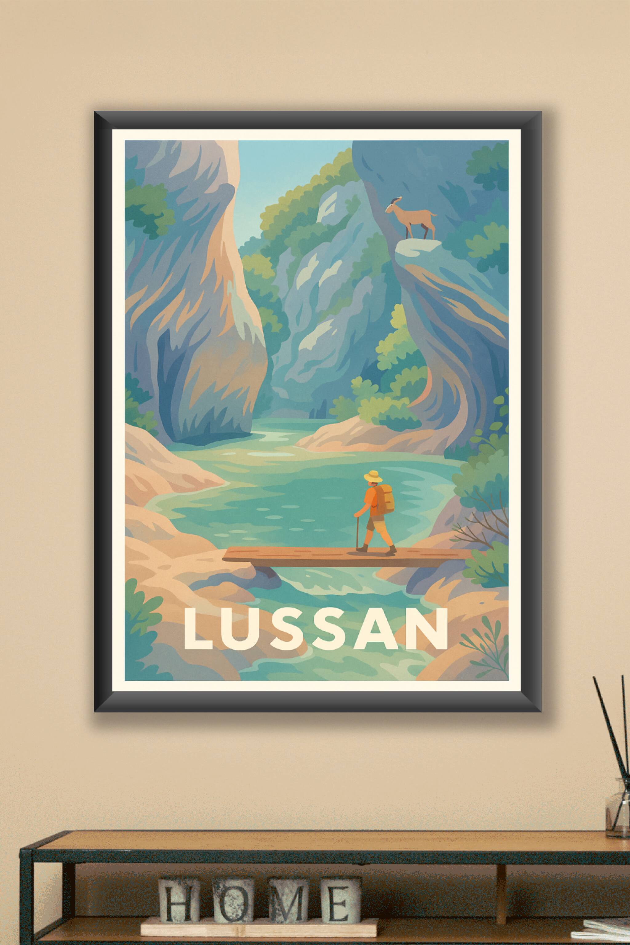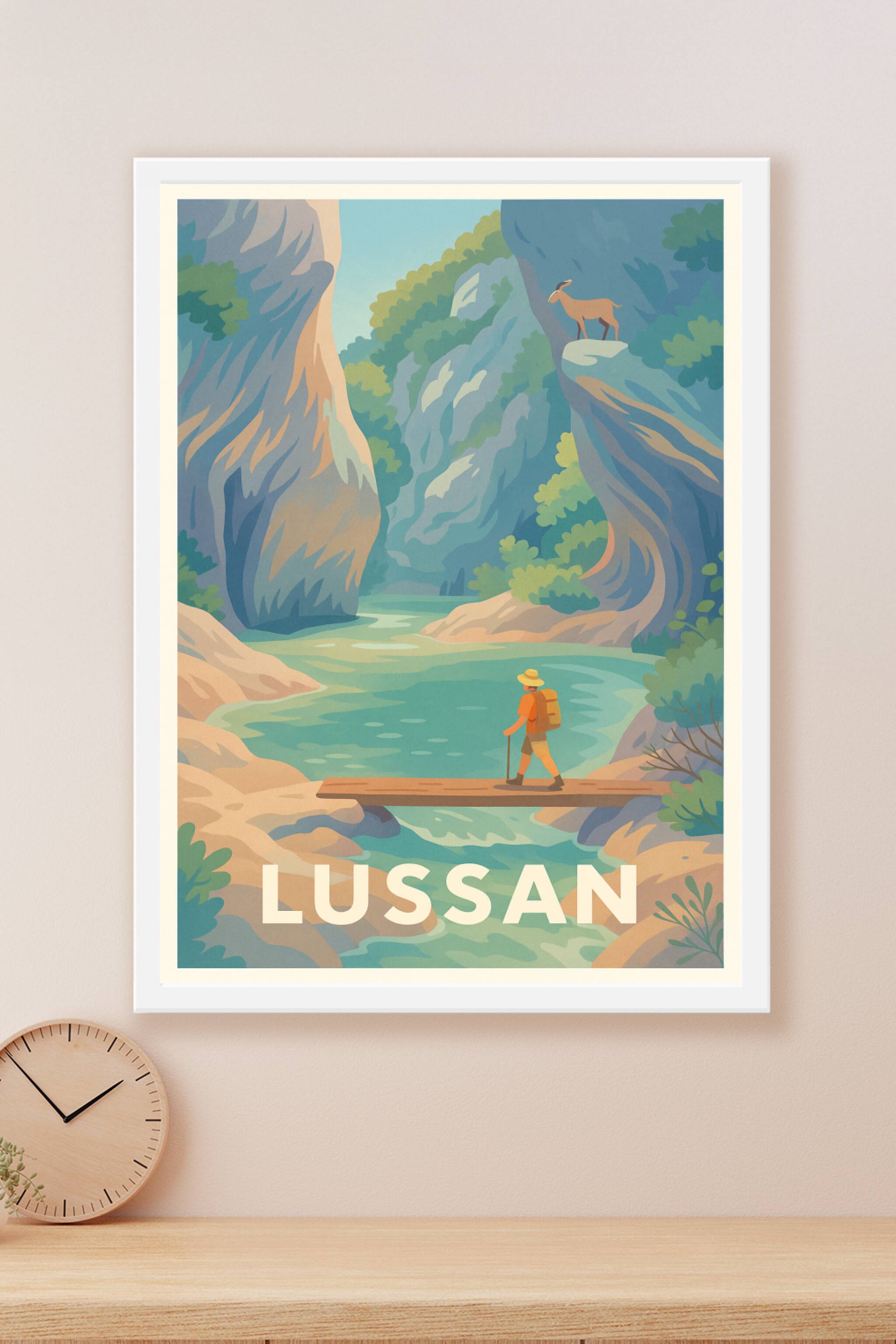 Découvrez la beauté sauvage de Lussan avec cette affiche illustrée dans un style vintage qui évoque la douceur des paysages naturels préservés. Cet...