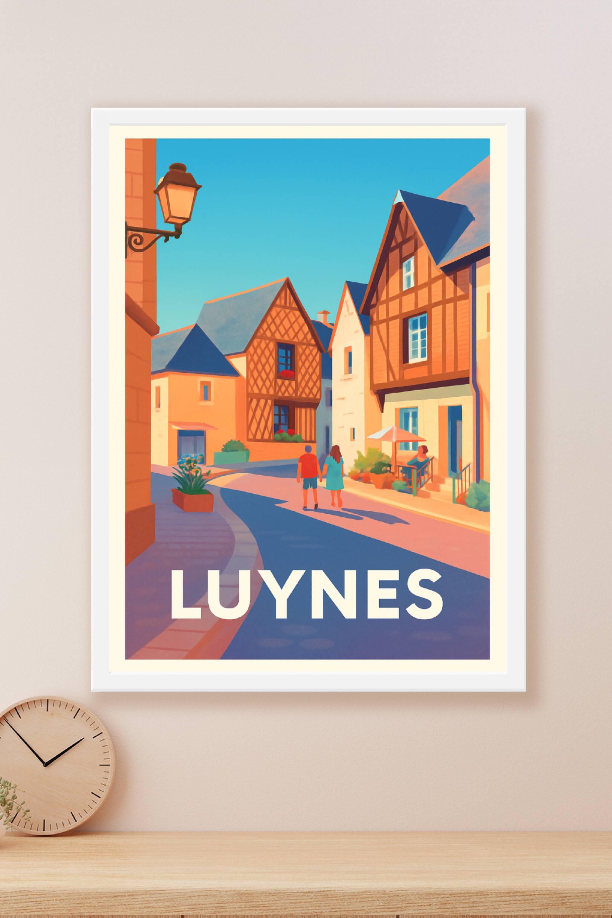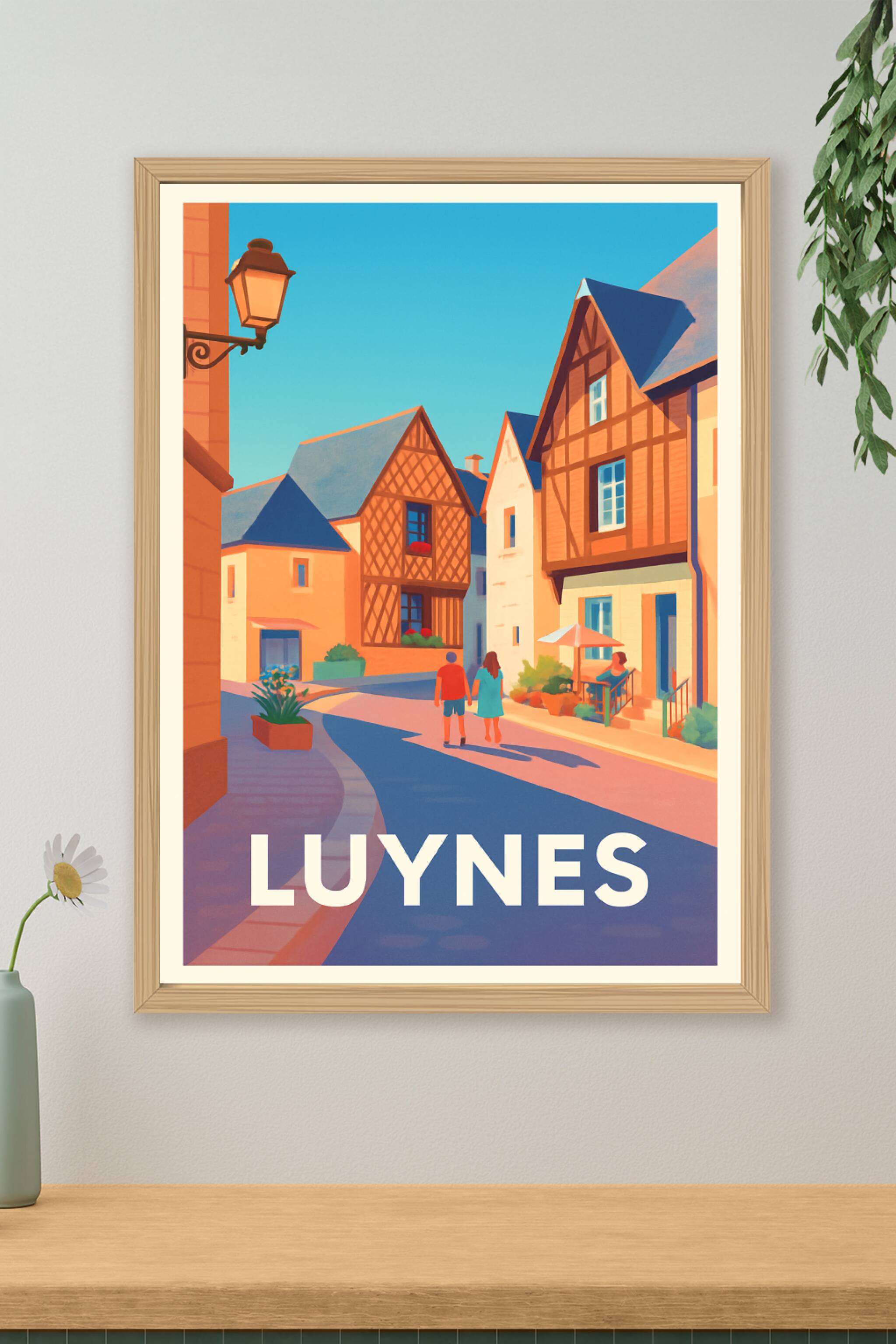 Découvrez la douceur de vivre à Luynes avec cette affiche illustrée qui capture l'essence charmante et paisible de ses rues typiques et ses maisons...