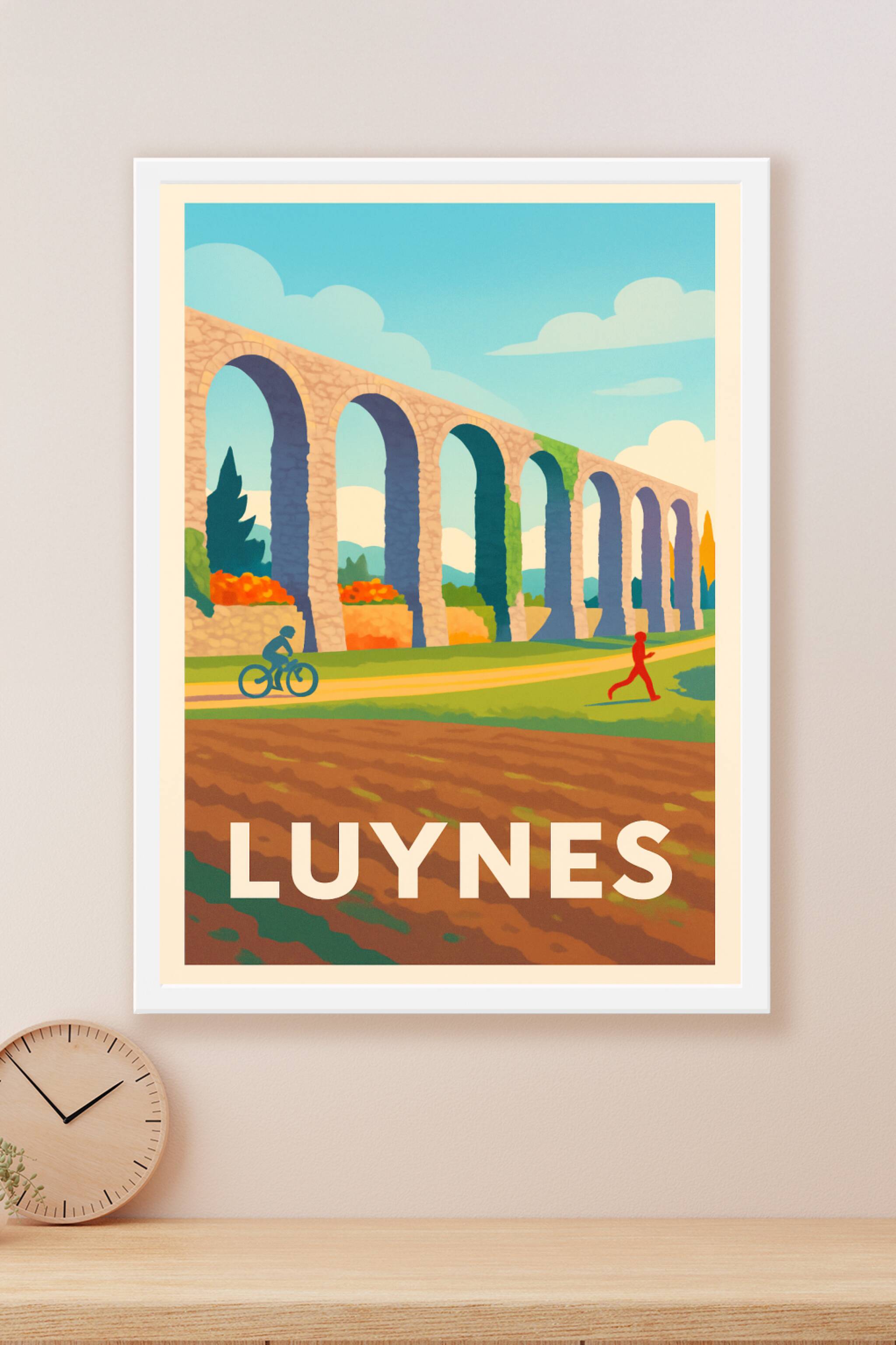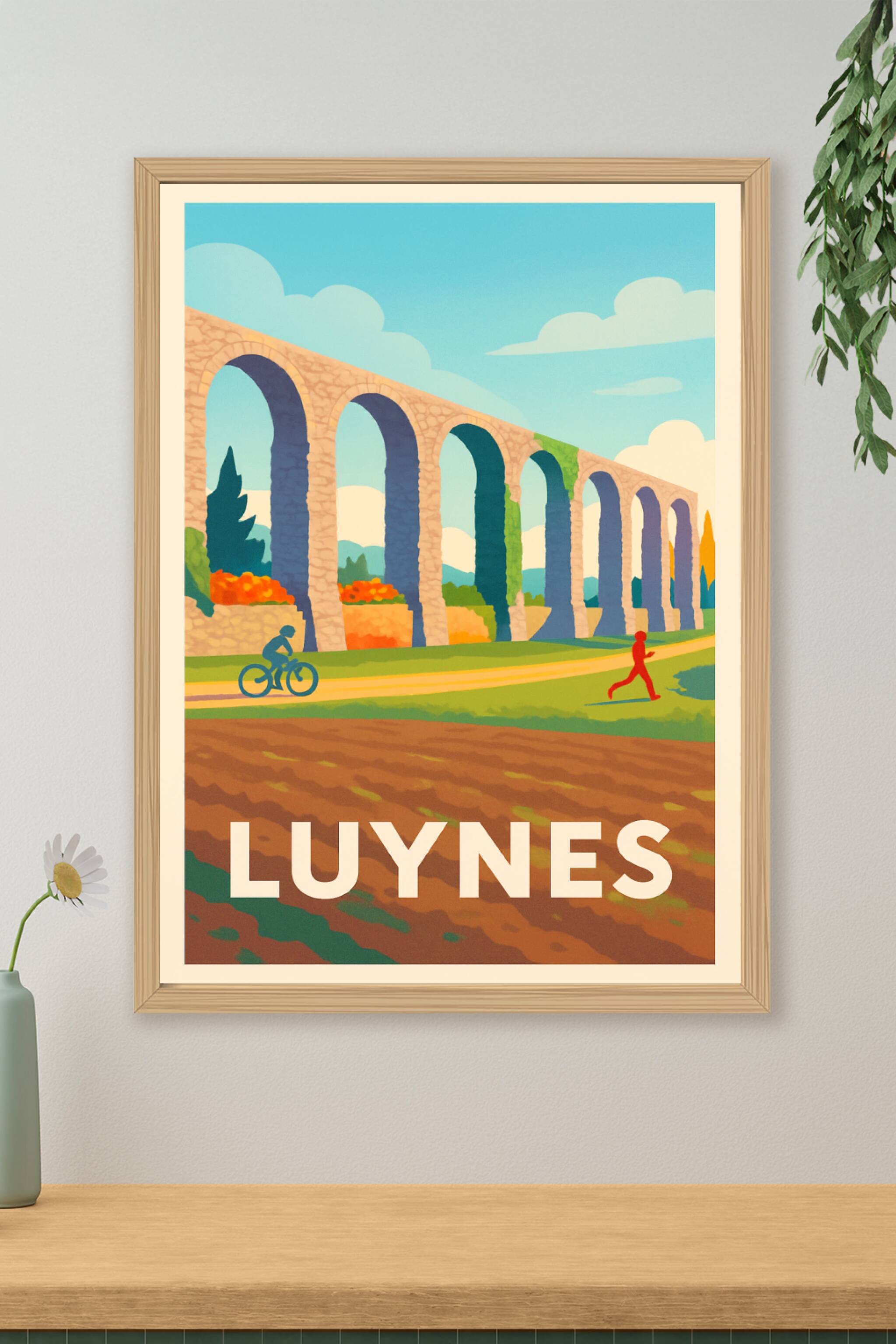 Découvrez l'affiche Luynes, une invitation à la détente et à la découverte au cœur d'un paysage apaisant où l'ancien aqueduc se dresse majestueusem...