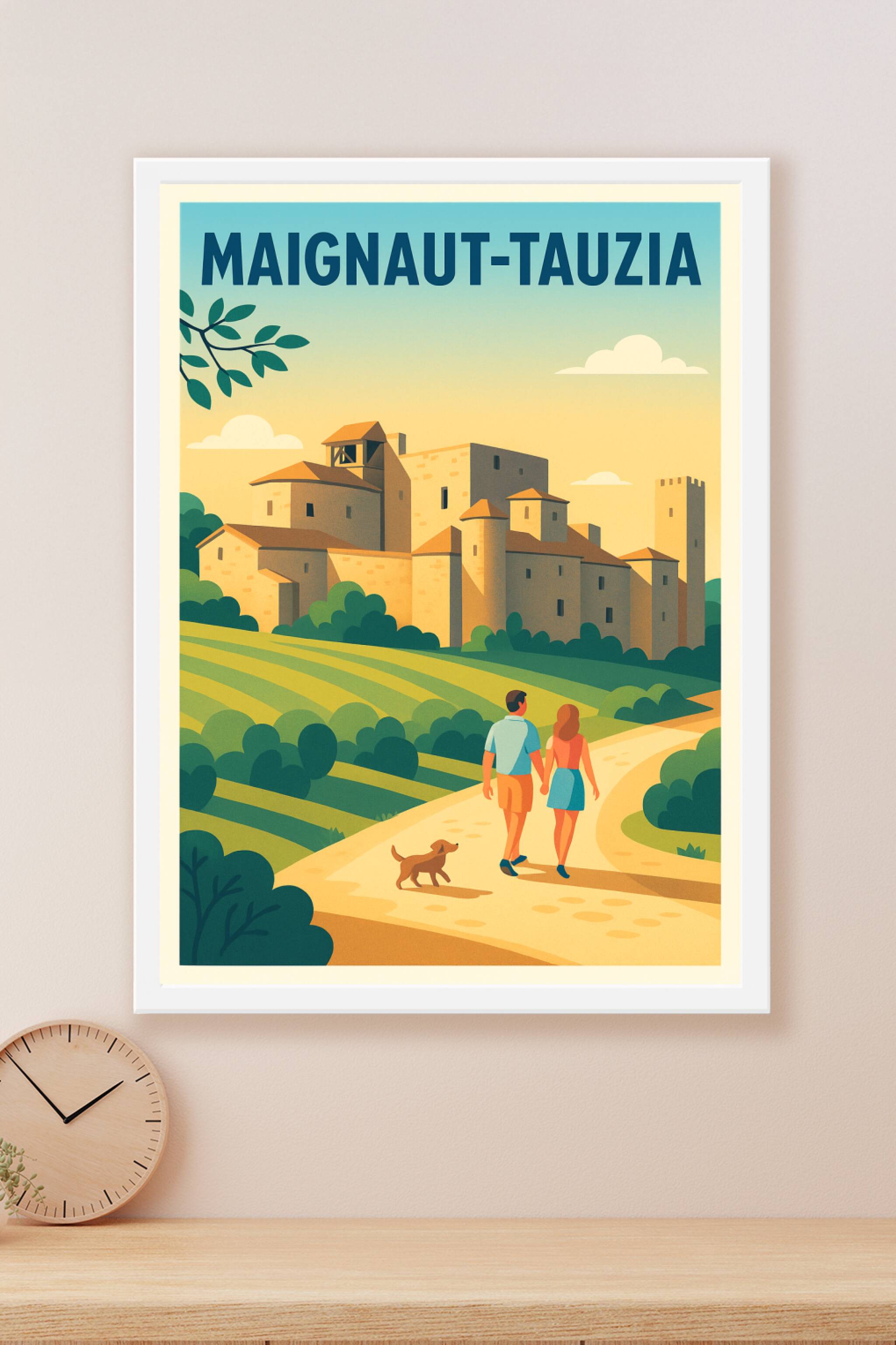 Découvrez l'affiche illustrée de Maignaut-Tauzia, une charmante destination où histoire et nature se mêlent harmonieusement. Ce poster met en scène...