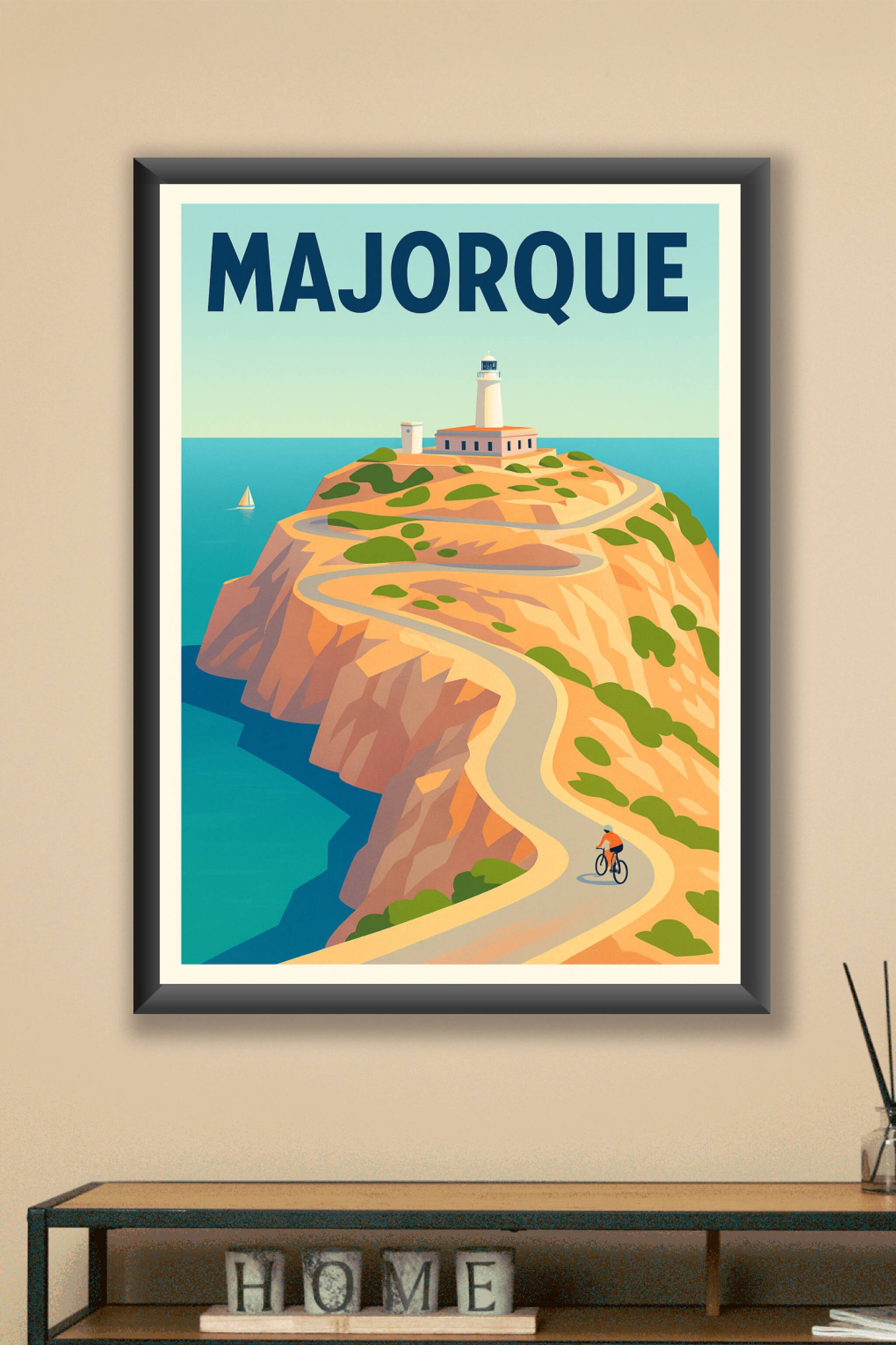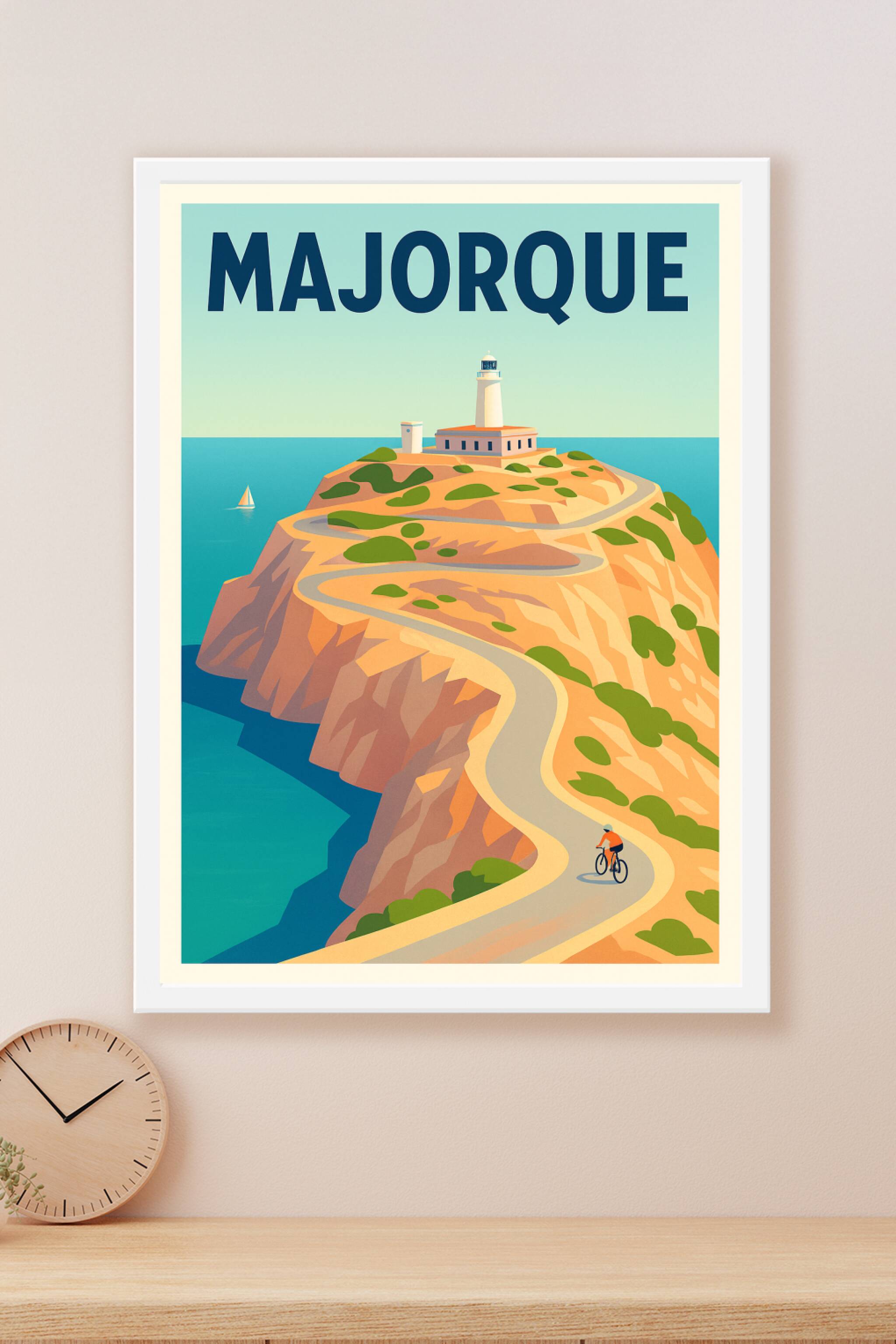 Apportez une touche méditerranéenne et dépaysante à votre décoration avec cette affiche illustrée représentant les falaises dorées de Majorque et s...