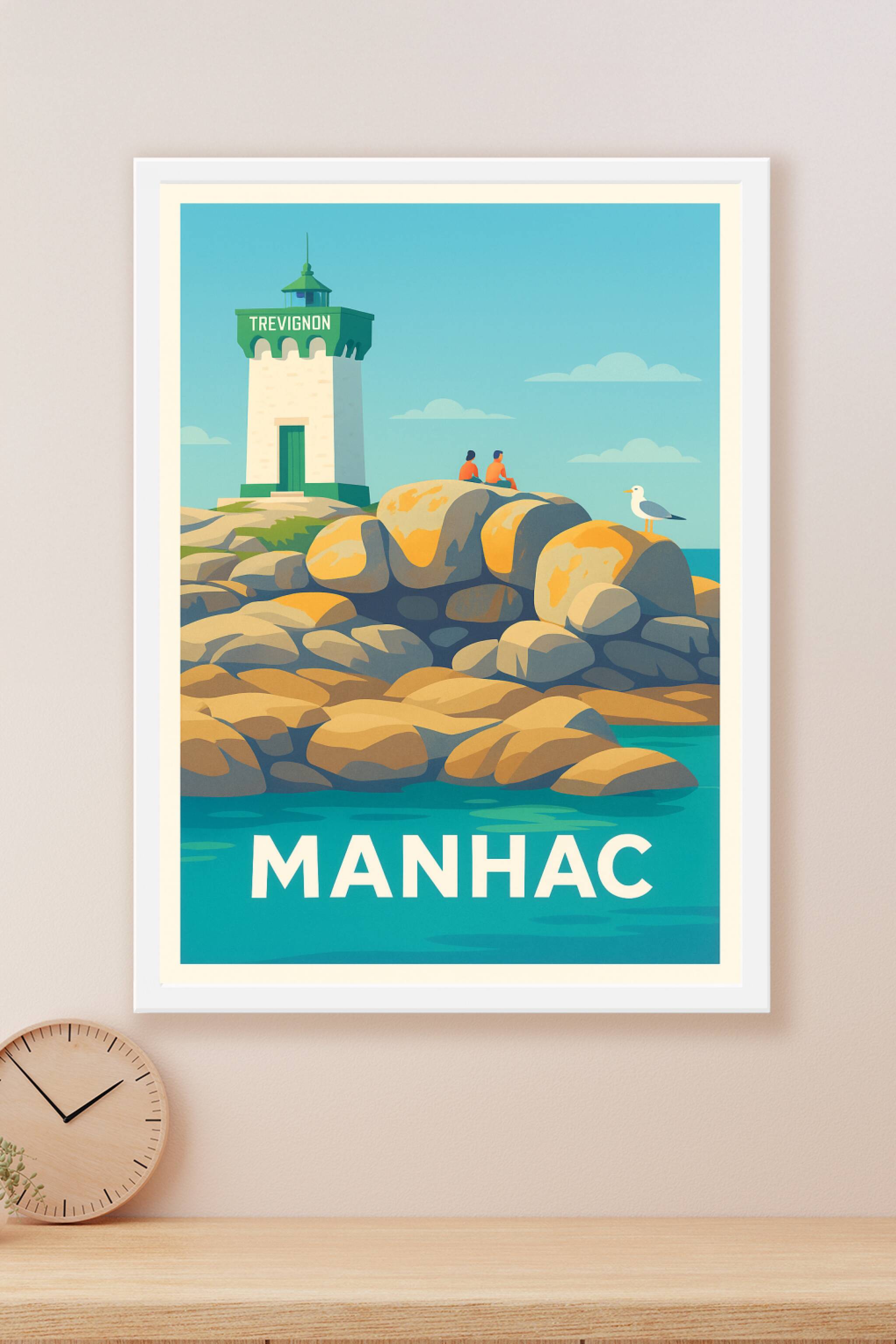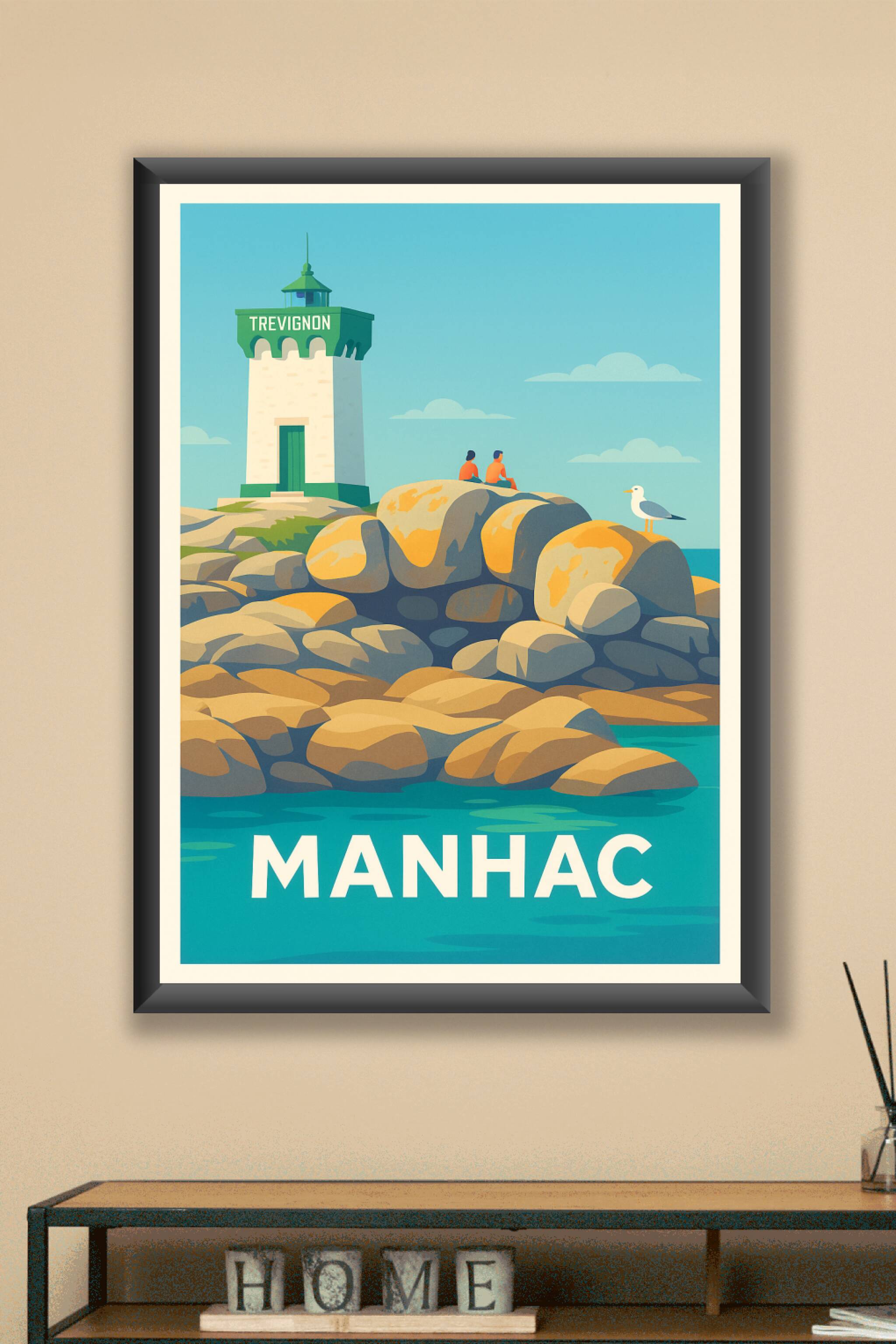 Découvrez la quiétude et la beauté sauvage de Manhac à travers cette affiche représentant le phare emblématique de Trévignon et ses rochers baignés...