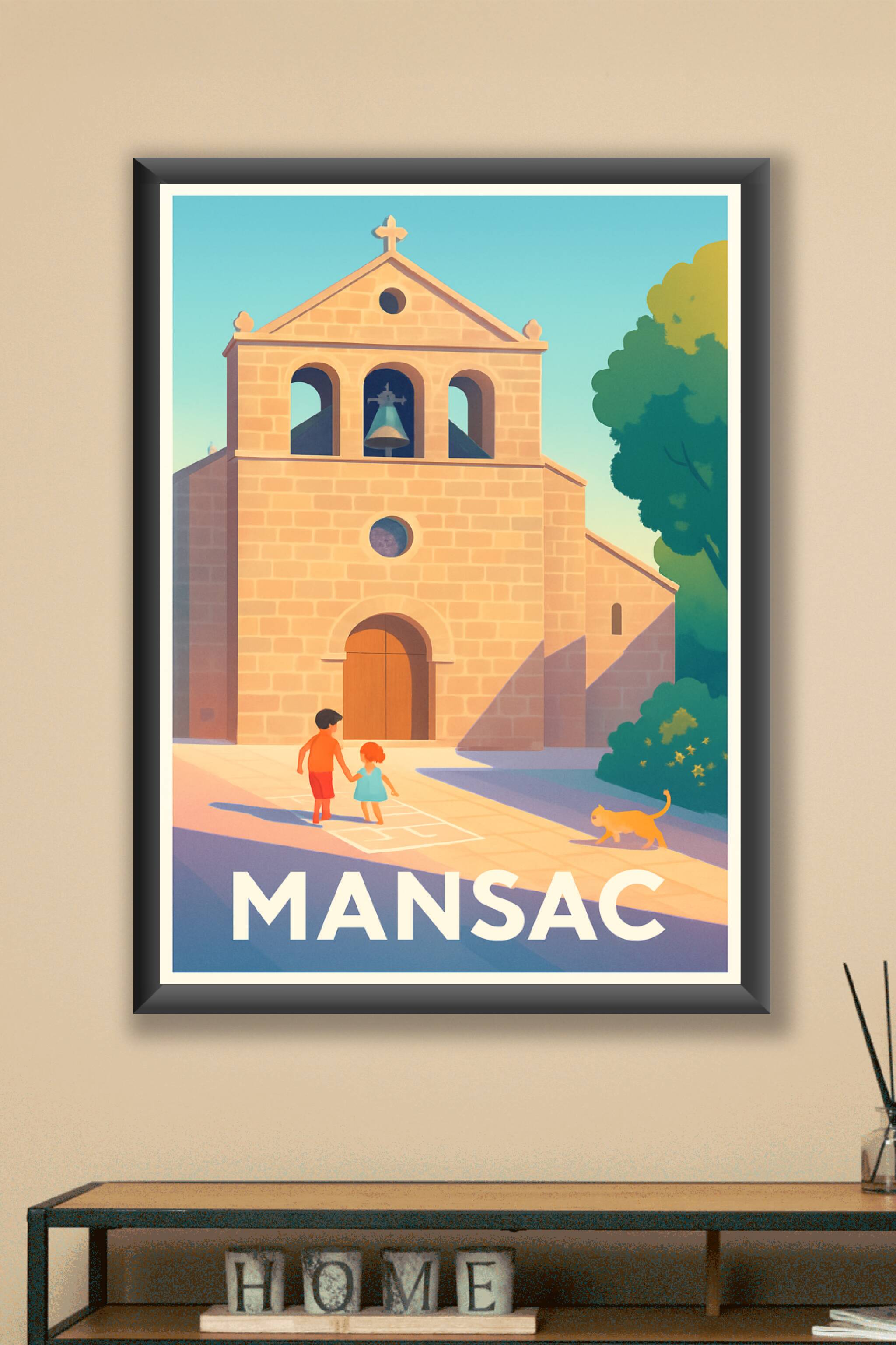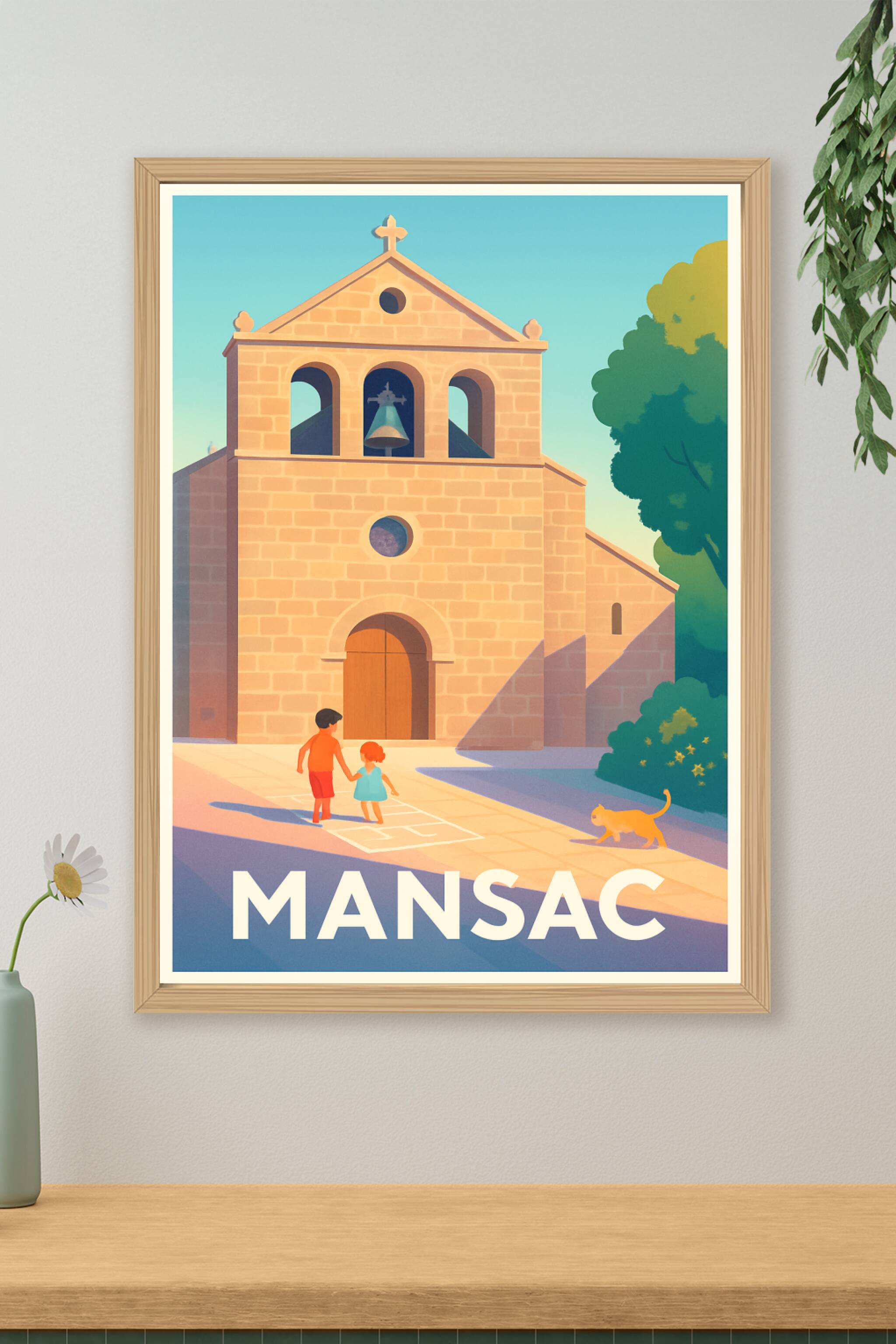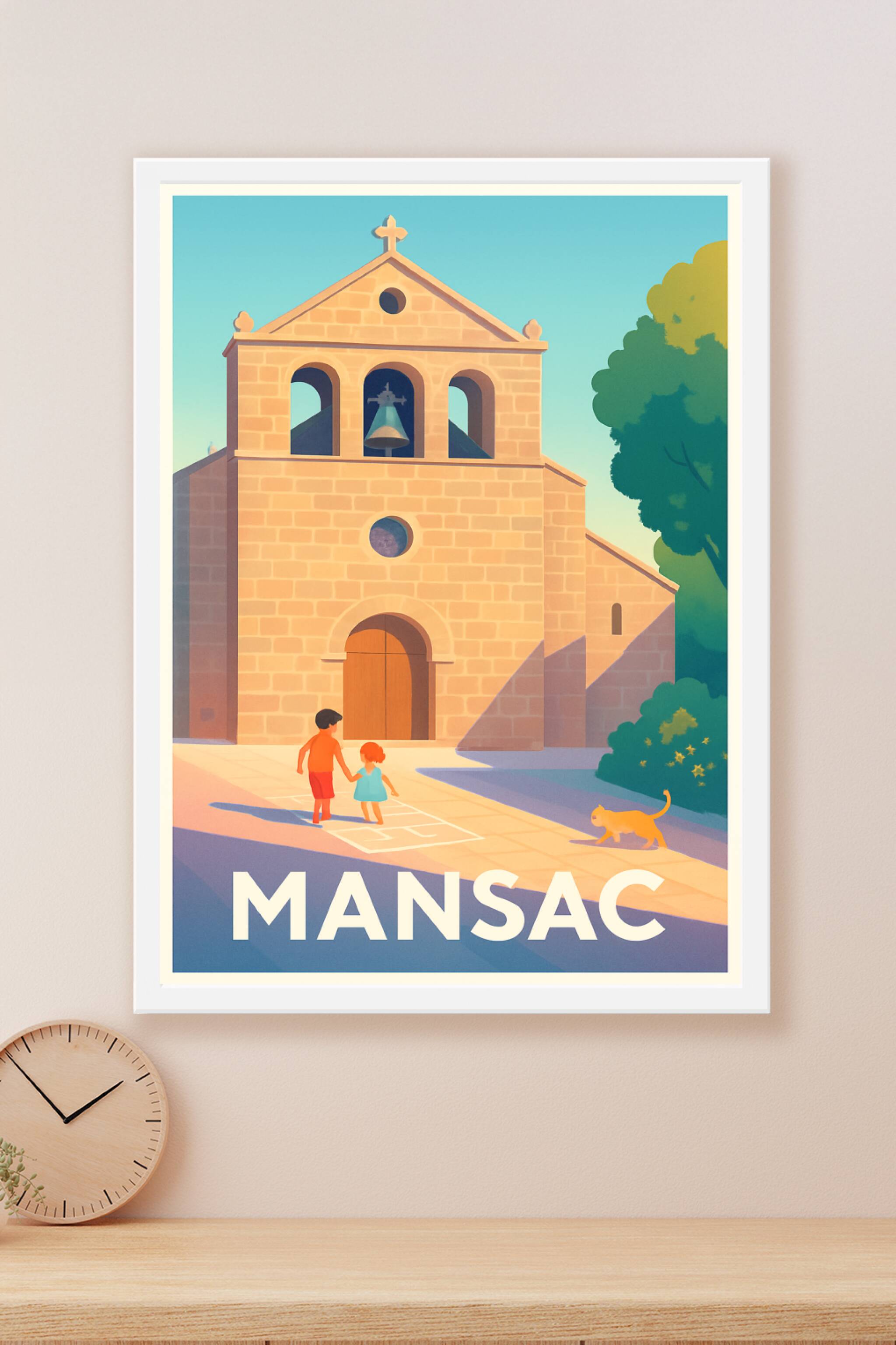 Découvrez la douceur de vivre de Mansac avec cette affiche illustrée qui capture l’authenticité de son patrimoine architectural et l’innocence des ...