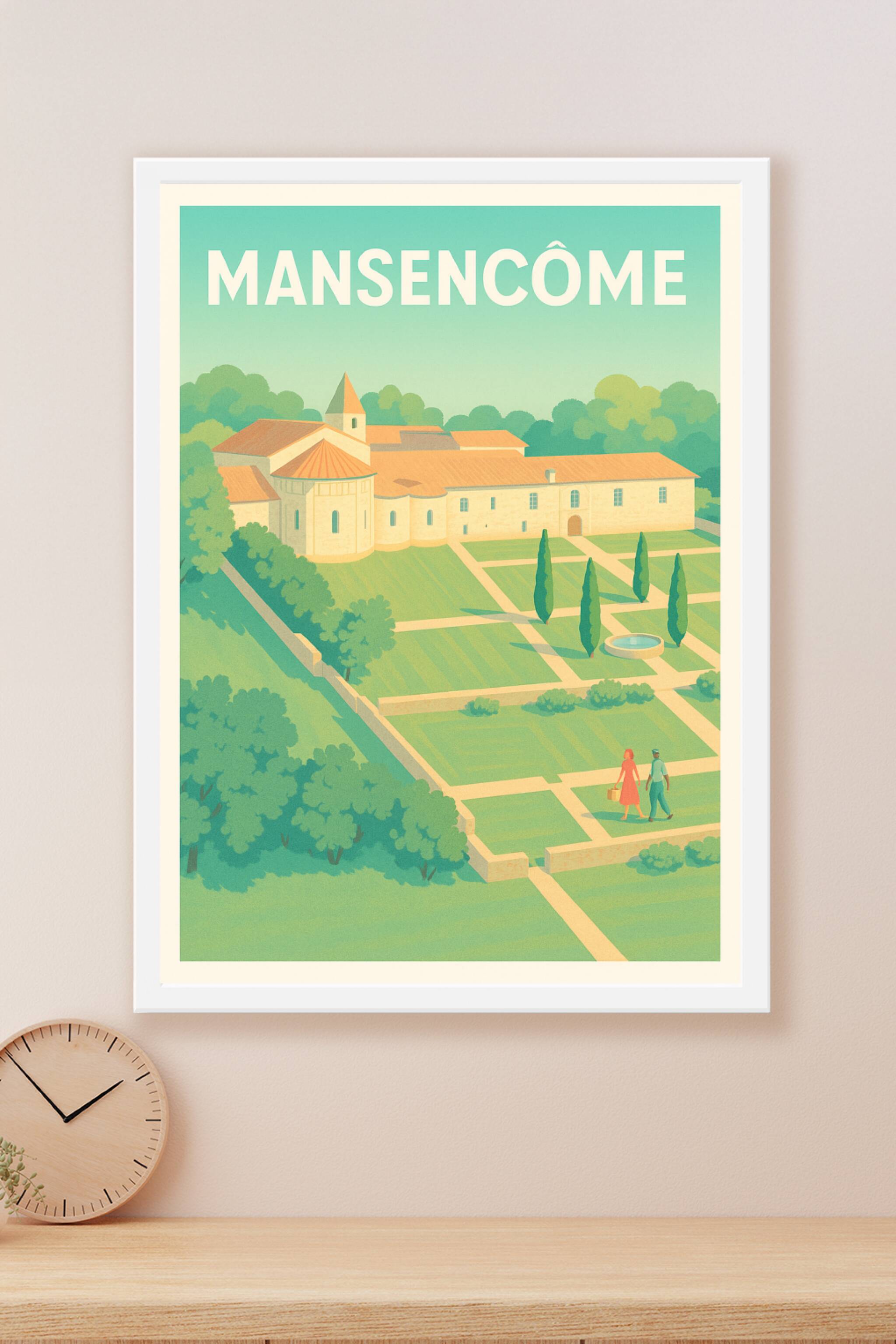 Découvrez la sérénité et le charme bucolique de Mansencôme avec cette affiche illustrée. Ce poster met en lumière un paysage apaisant où la nature et l'architecture se rencontrent harmonieusement, évoquant une promenade paisible au sein d'un jardin à la française. Imprimée en tirage "Fine Art" sur un papier 305g coton, cette affiche garantit une qualité d'impression remarquable et une longévité exceptionnelle. Disponible en formats A1 à A4, avec ou sans cadre, cette pièce décorative s'adapte parfaitement à tous les intérieurs, apportant une touche élégante et authentique. Sublimez votre décoration ou offrez un souvenir unique des charmes de Mansencôme grâce à ce poster d'exception, 100% fabriqué en France.