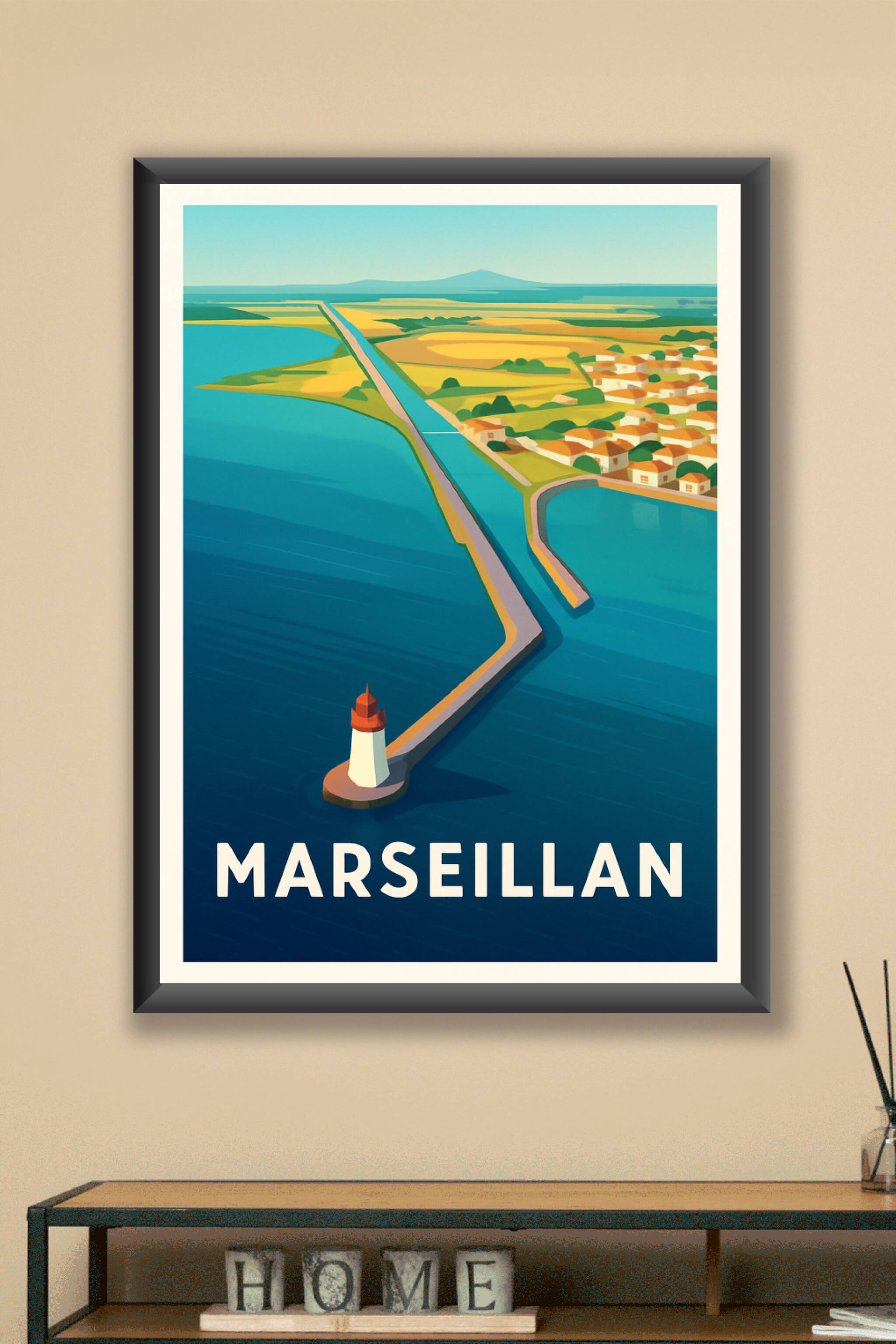 Découvrez la beauté apaisante de Marseillan à travers cette affiche illustrée mettant en avant son célèbre phare et le paysage côtier vibrant. Ce poster capture l'essence d'un village méditerranéen avec ses eaux turquoises et ses toits rouges typiques.Ce tirage 'Fine Art' est réalisé sur un papier coton 305g, garantissant une qualité d'impression exceptionnelle et des couleurs éclatantes qui sublimeront votre décoration intérieure. Disponible en formats A1 à A4, avec ou sans cadre, cette affiche apportera une touche élégante et authentique à votre espace. Profitez d'un produit 100% fabriqué en France, parfait pour offrir ou embellir votre maison avec une vue unique sur Marseillan.