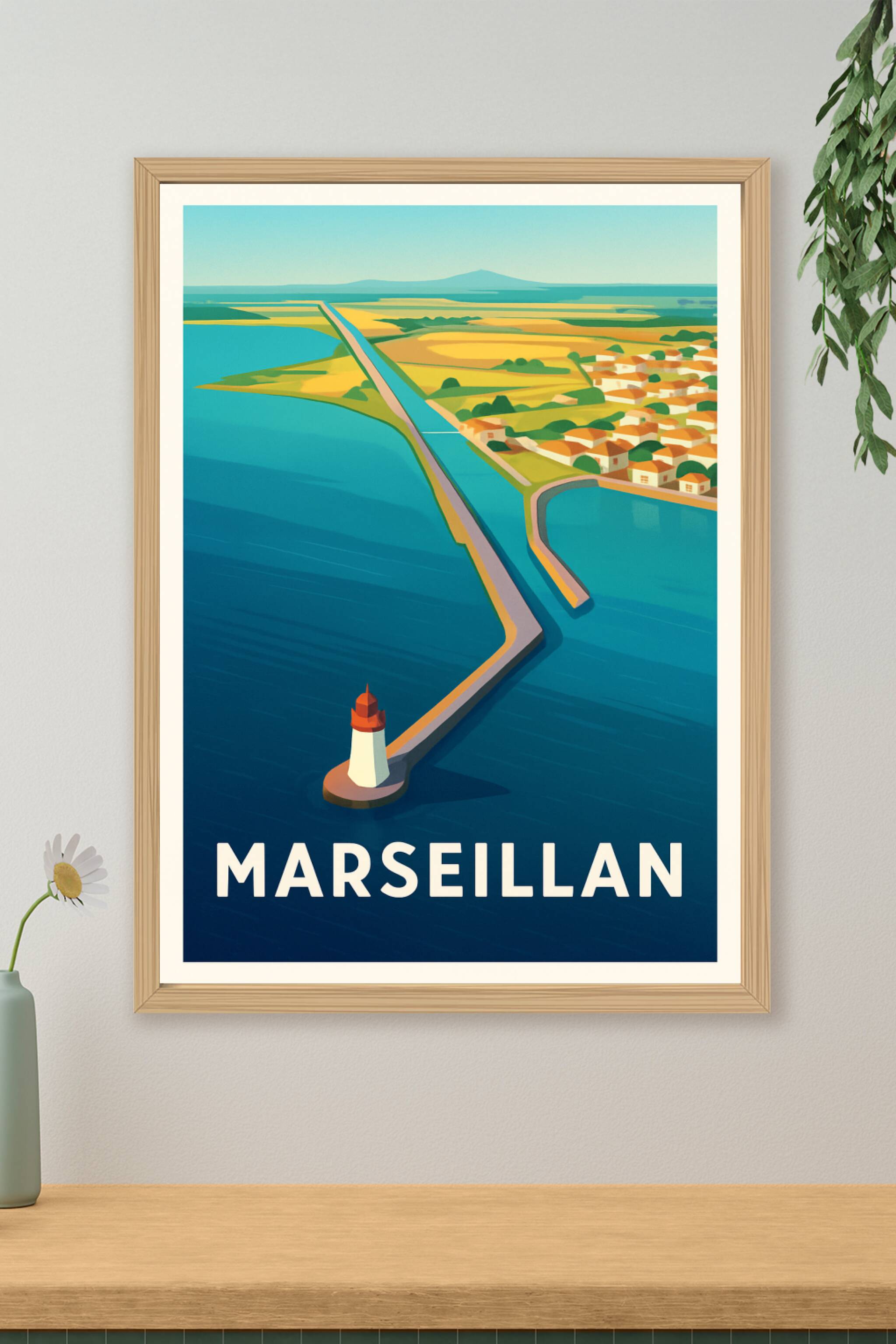 Découvrez la beauté apaisante de Marseillan à travers cette affiche illustrée mettant en avant son célèbre phare et le paysage côtier vibrant. Ce p...