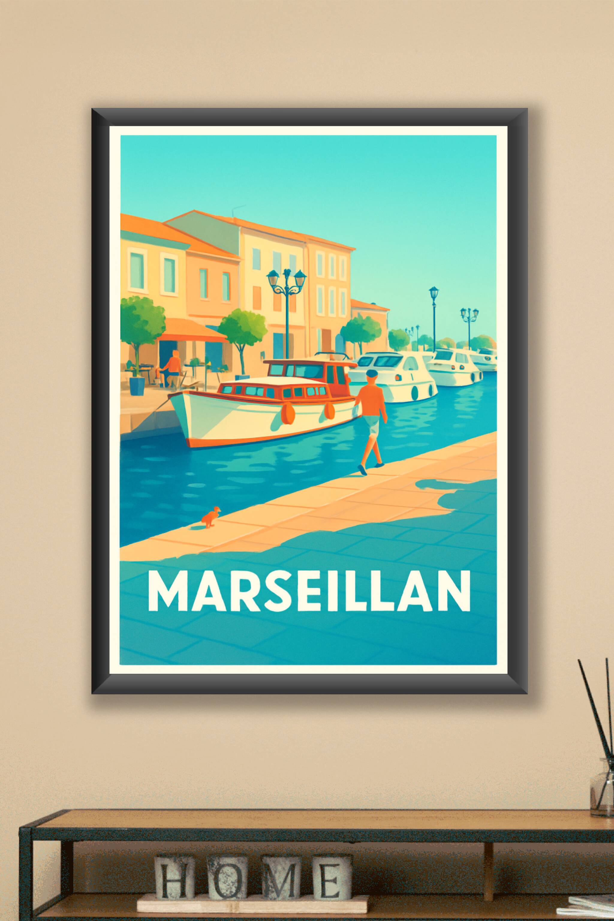 Découvrez la douceur de vivre à Marseillan avec cette affiche vintage qui capture l'élégance tranquille de ses quais et de ses bateaux amarrés. Le ...