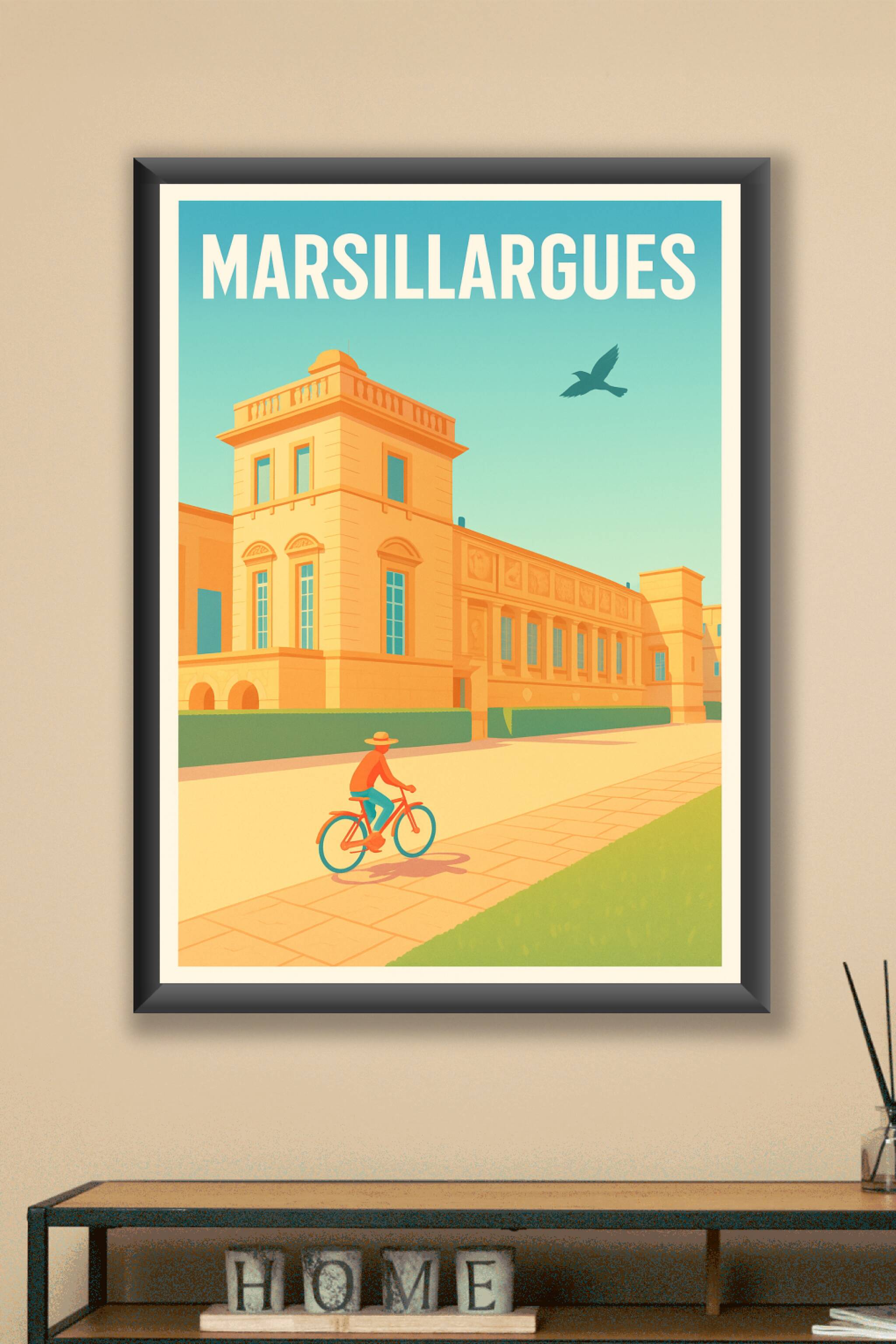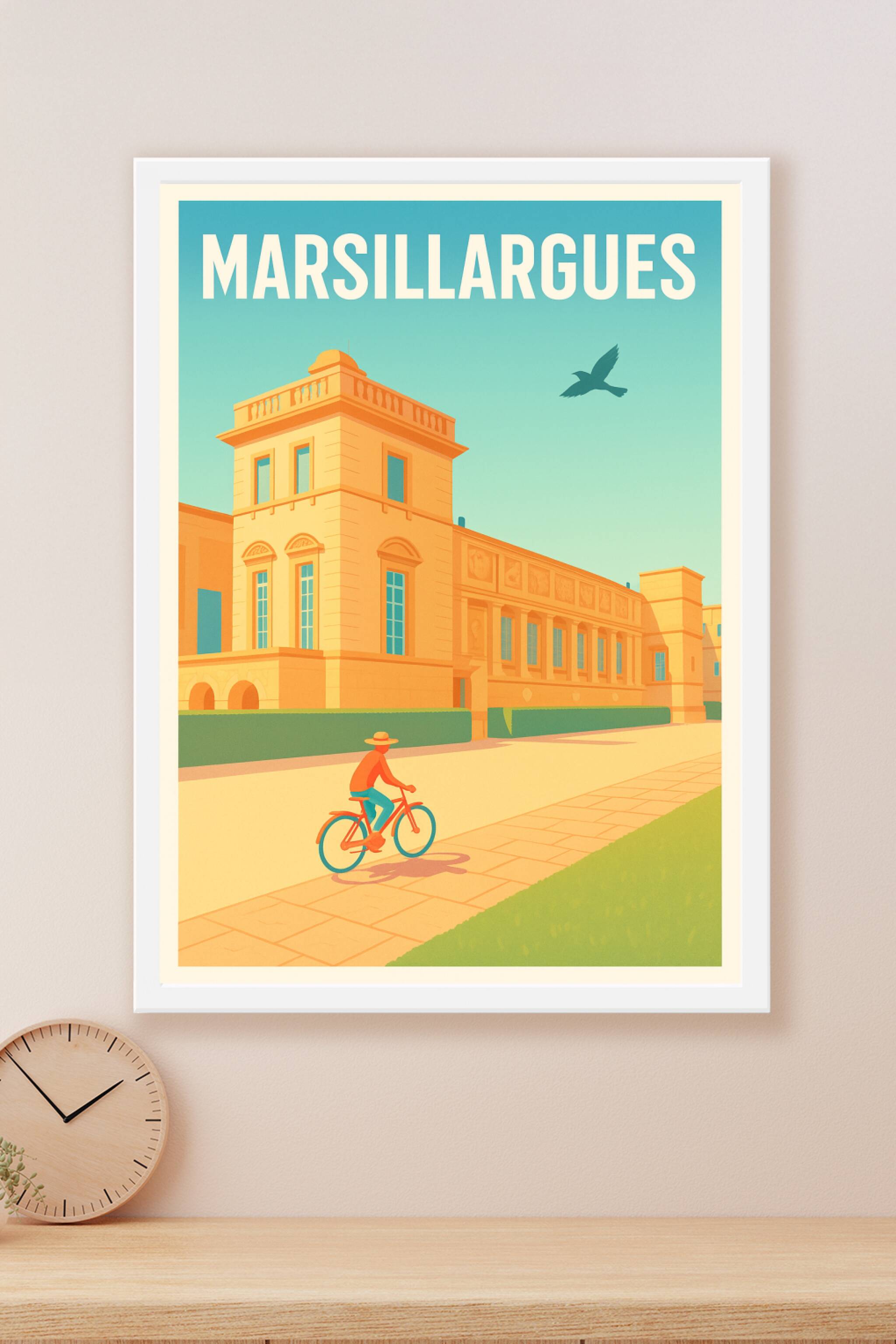 Découvrez l'élégance intemporelle de Marsillargues avec cette affiche illustrée au style vintage et lumineux. Ce poster met en scène une balade en ...