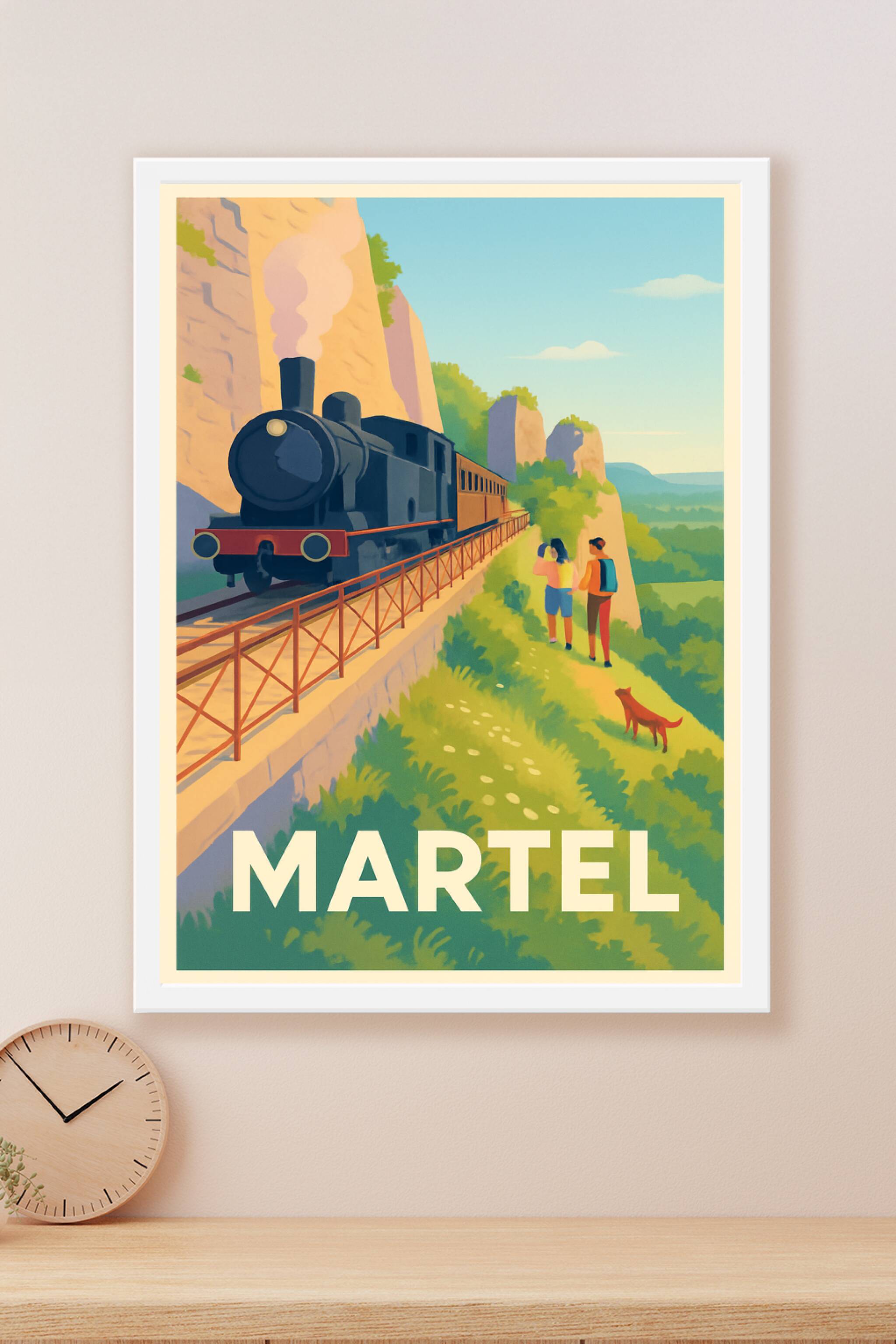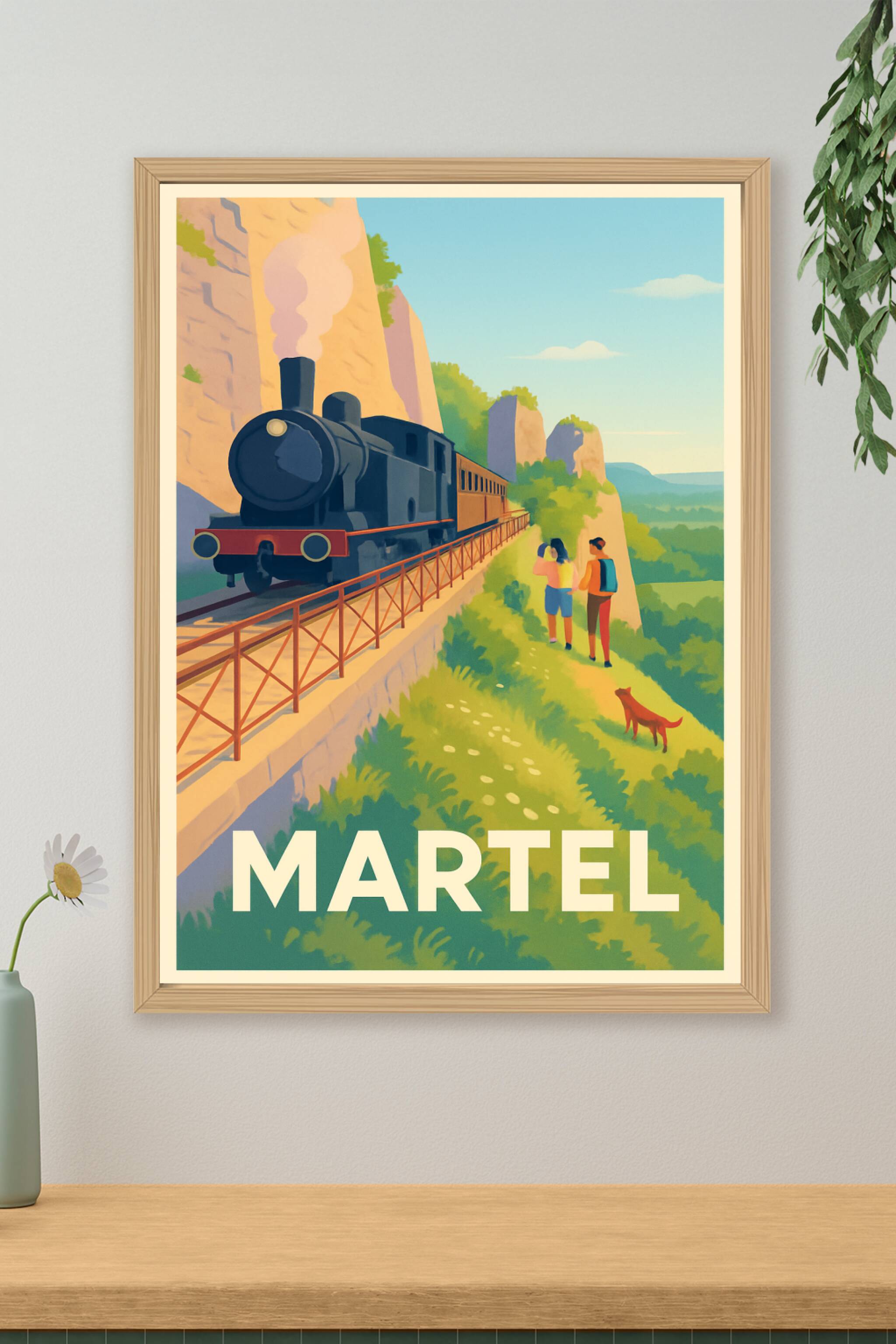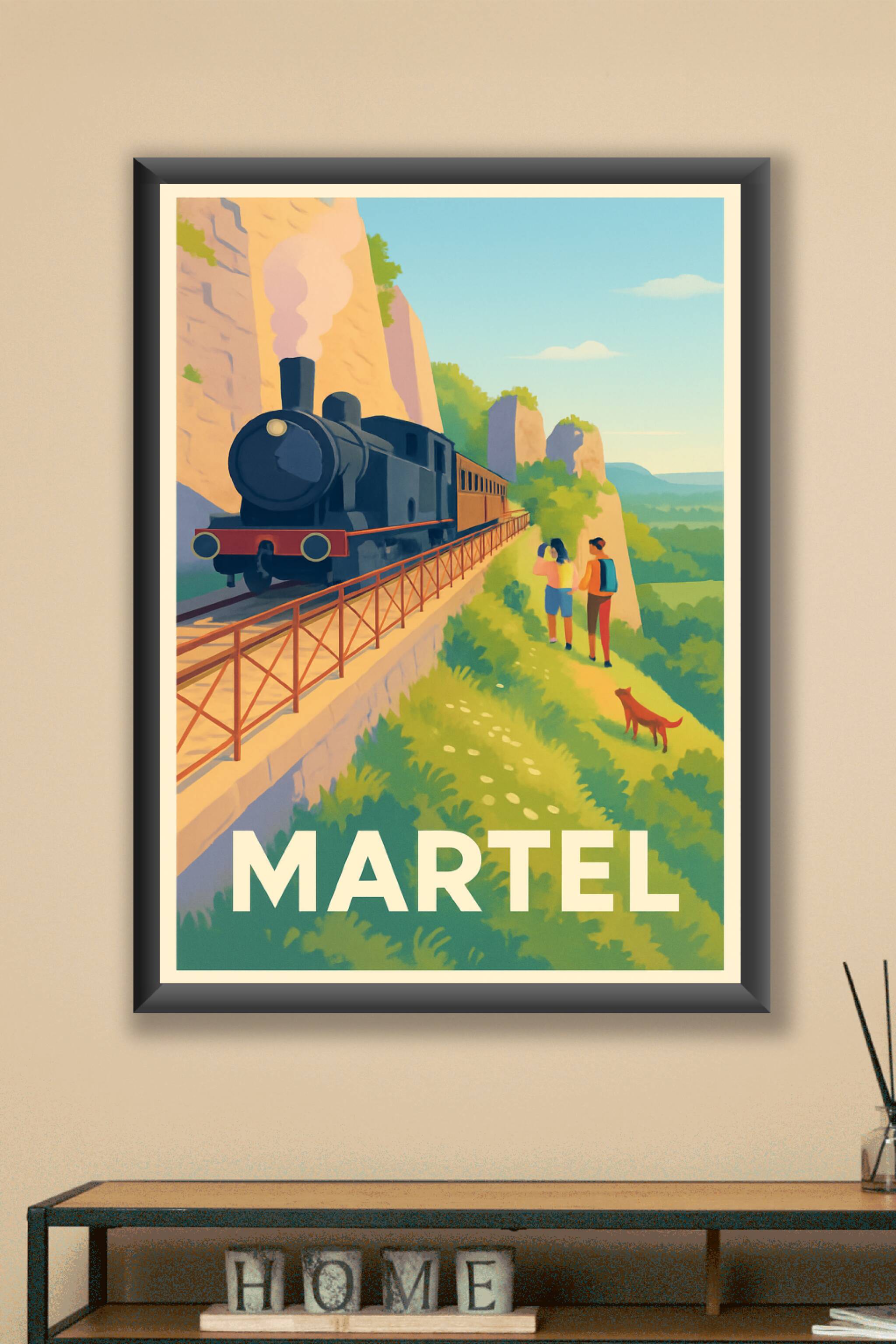 Découvrez la beauté authentique de Martel avec cette affiche vintage illustrant un train à vapeur traversant un paysage naturel impressionnant. Cet...