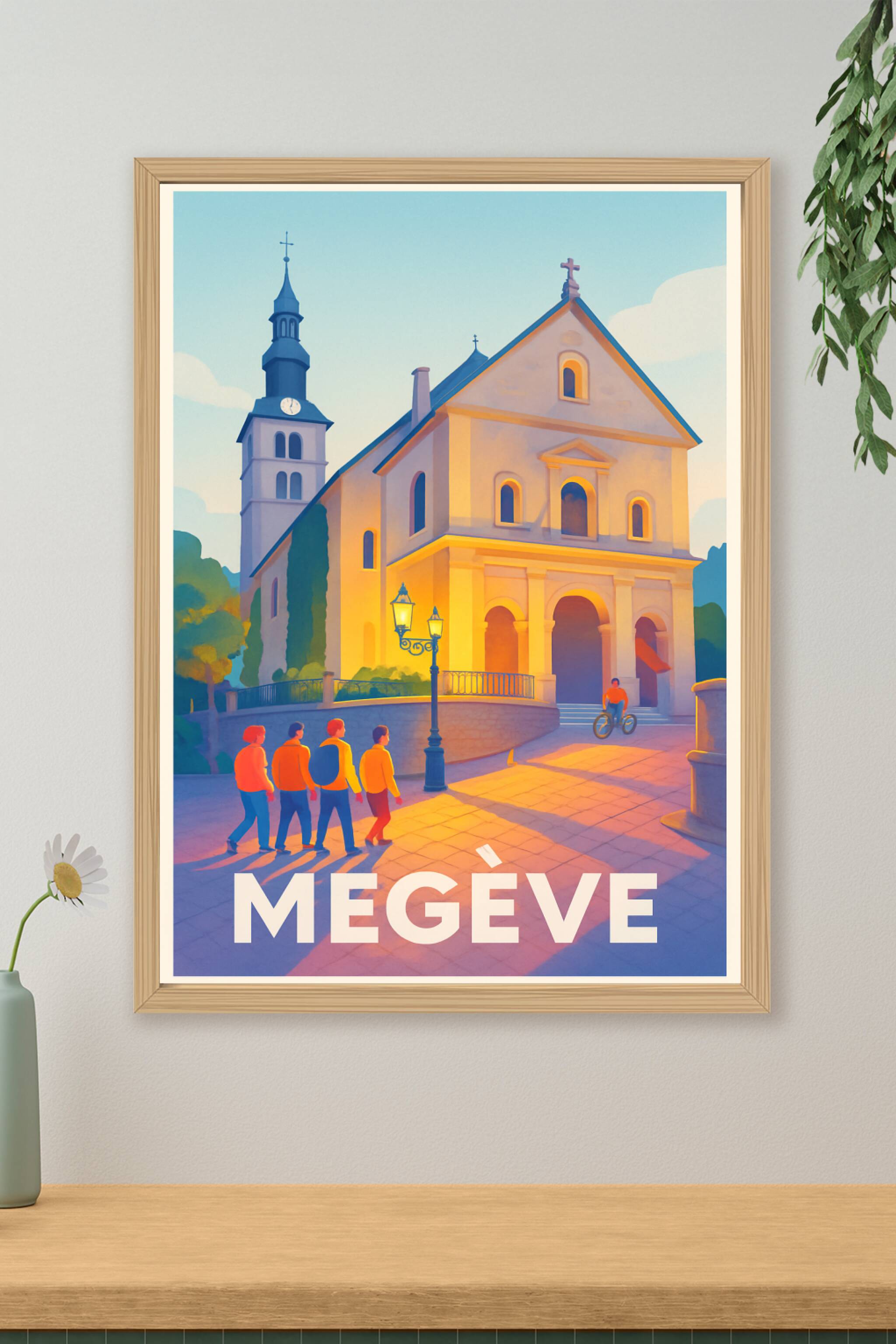 Découvrez l'élégance intemporelle de Megève à travers cette affiche illustrée mettant en avant une scène chaleureuse au coucher du soleil. Le charme pittoresque de cette station alpine se révèle dans les détails lumineux et les personnages animés, créant une ambiance accueillante et authentique. Ce poster est imprimé en tirage "Fine Art" sur un papier 305g coton de haute qualité, garantissant des couleurs vives et une longévité exceptionnelle. Disponible en formats A1 à A4, avec ou sans cadre, cette affiche apportera une touche d'élégance et de douceur à votre intérieur. Profitez d'une impression premium 100% fabriquée en France, parfaite pour sublimer votre décoration ou offrir un souvenir unique aux amoureux de Megève.