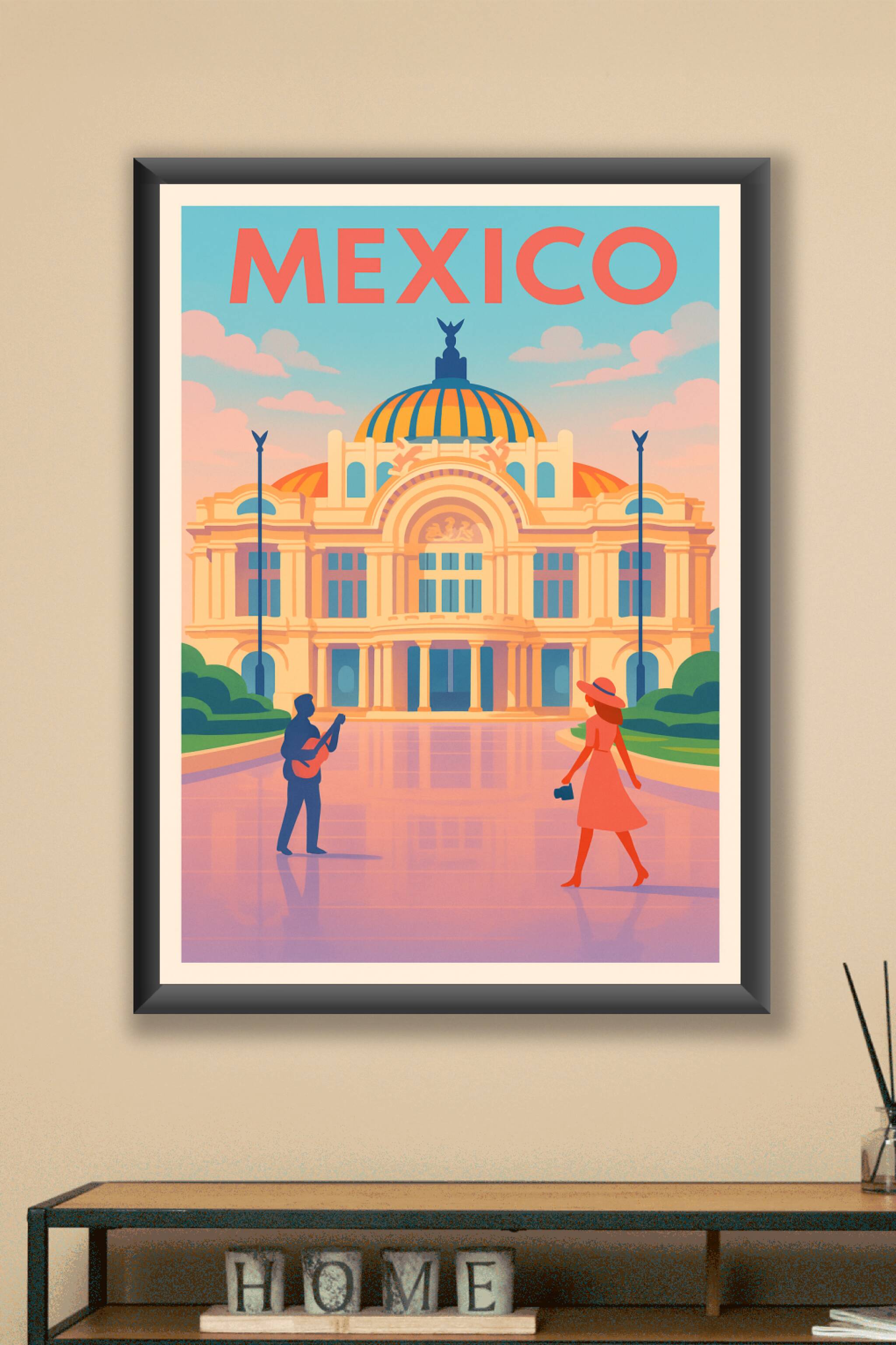 Découvrez l'élégance architecturale du Palacio de Bellas Artes illustrée sur cette superbe affiche aux couleurs chaudes et apaisantes. Ce poster ca...