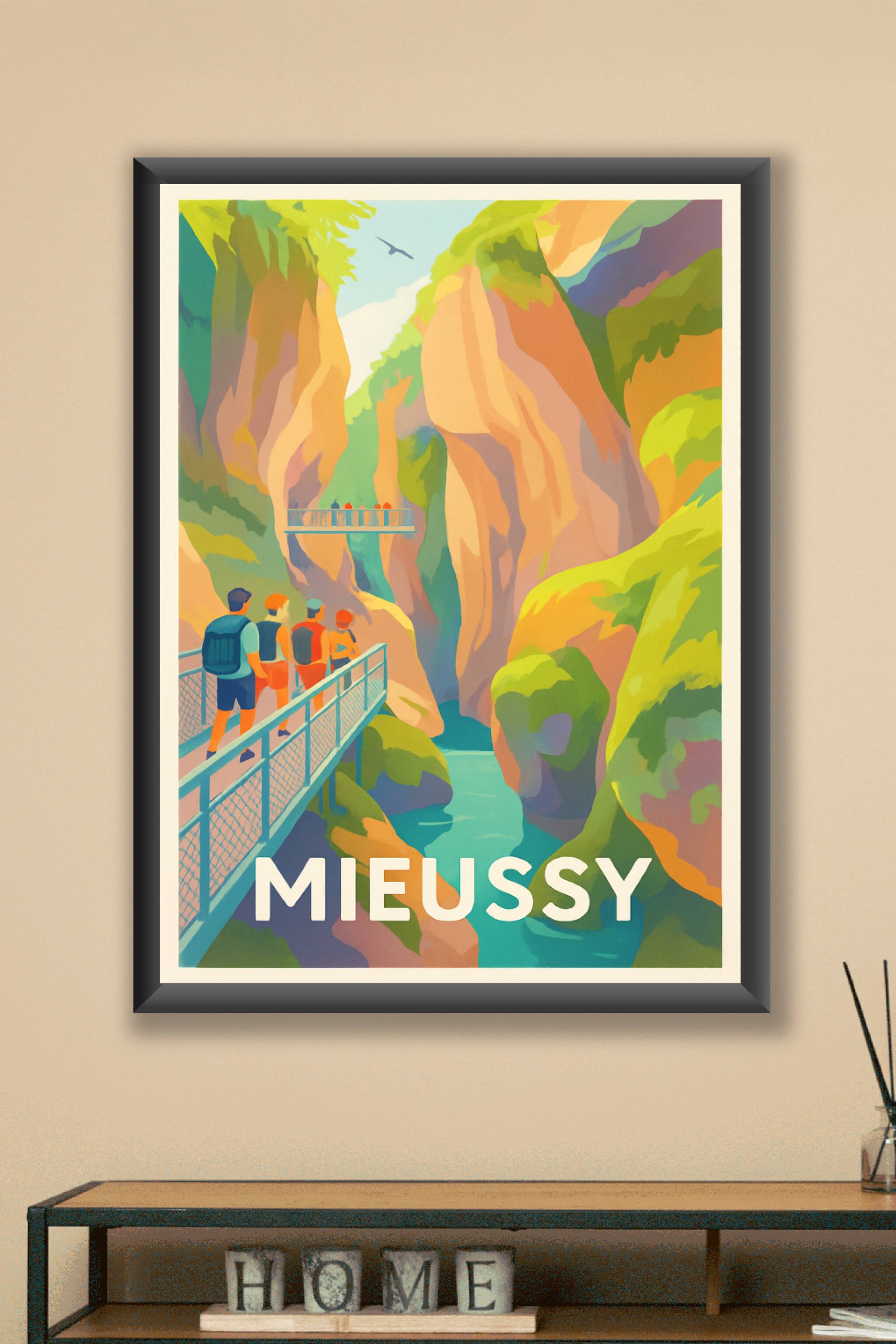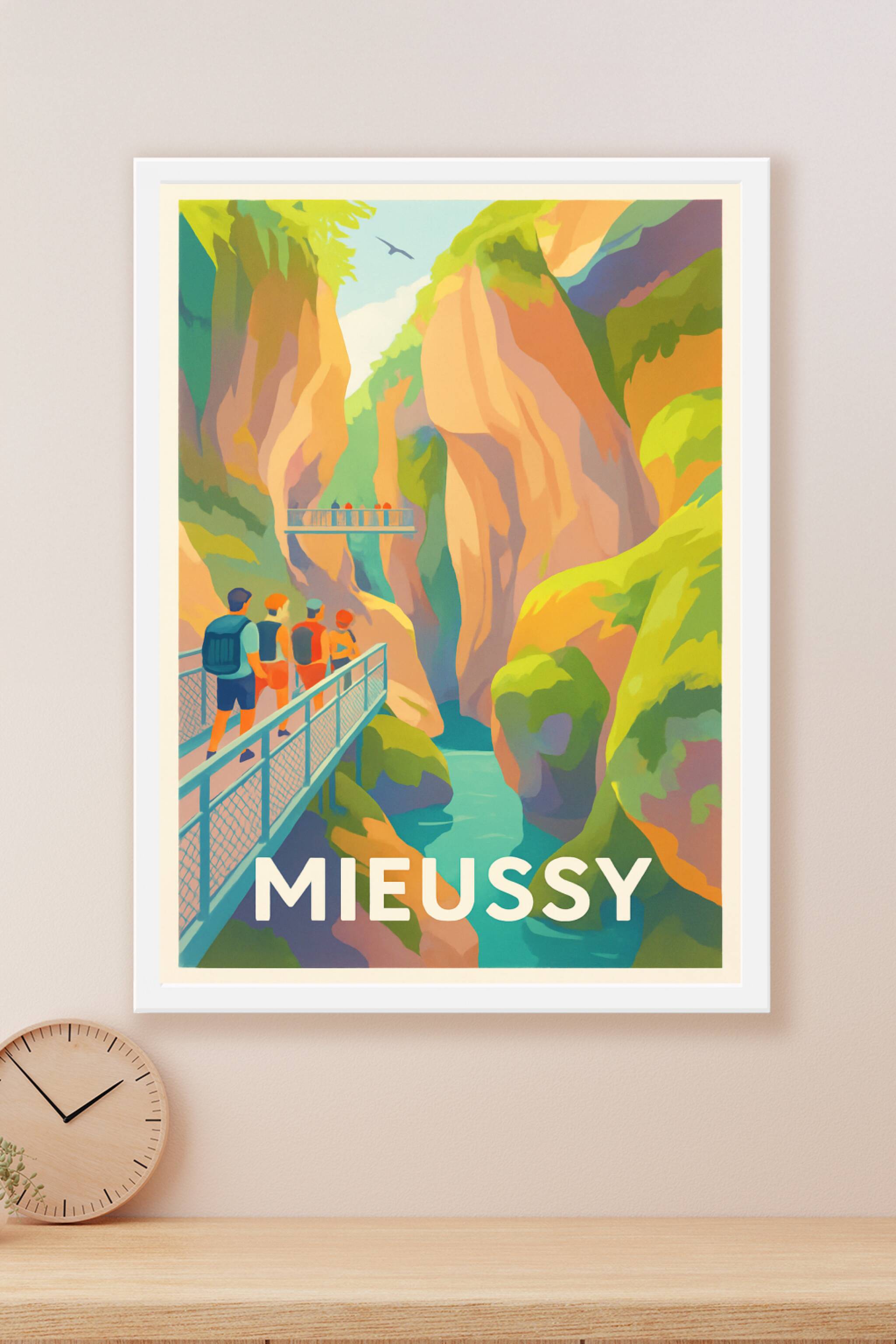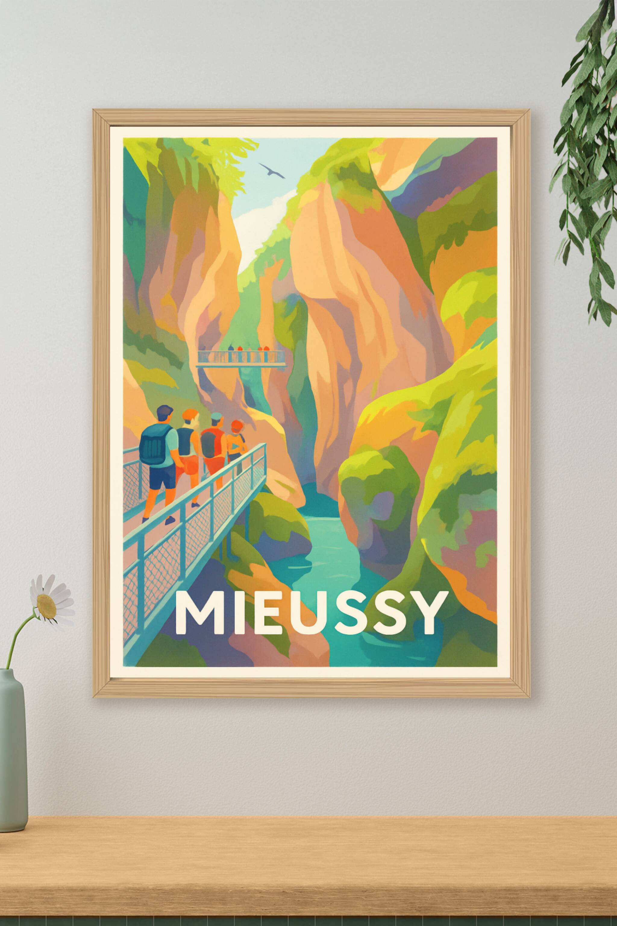 Découvrez la beauté impressionnante des gorges de Mieussy à travers cette affiche au style graphique vibrant et contemporain. Ce poster capture une...