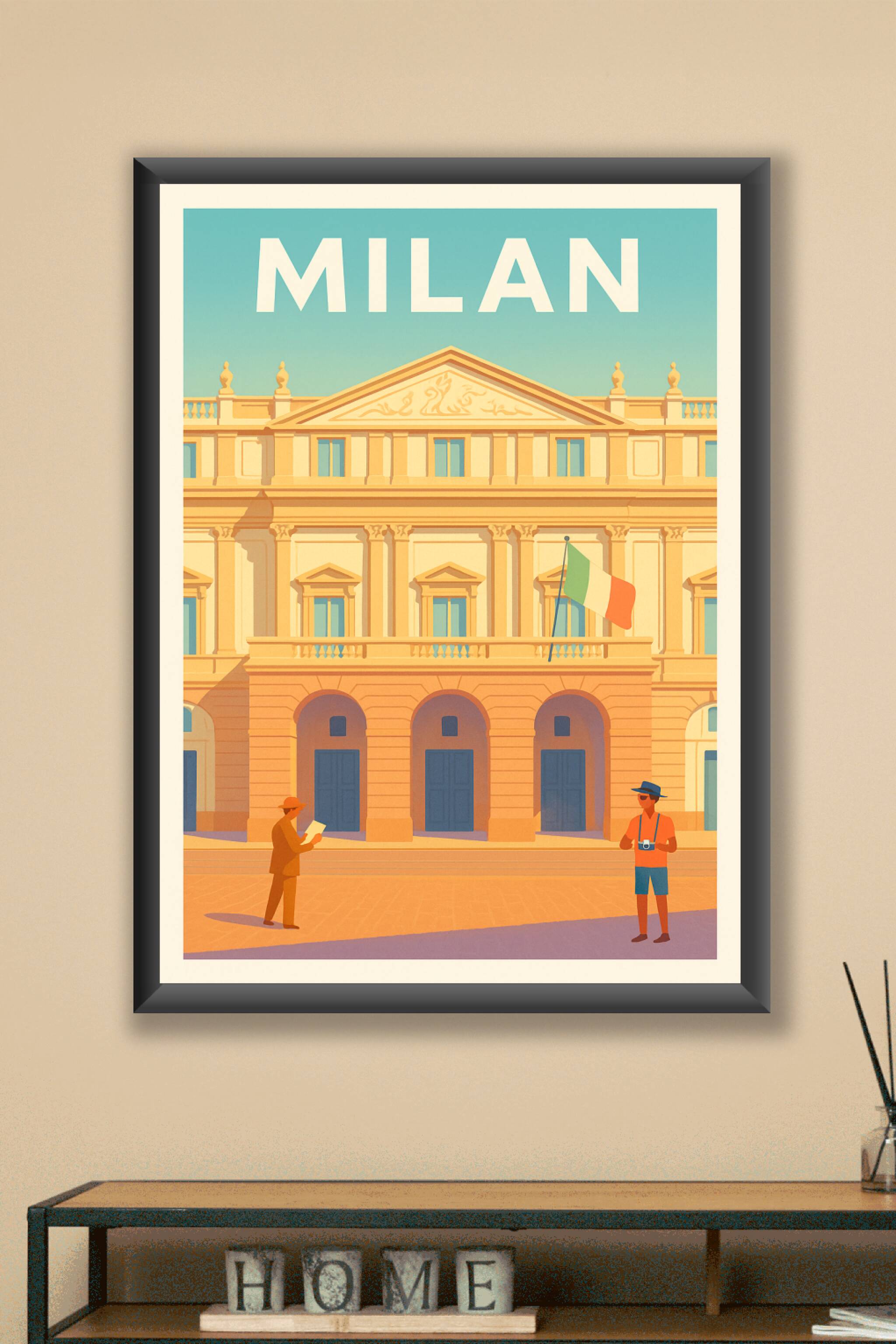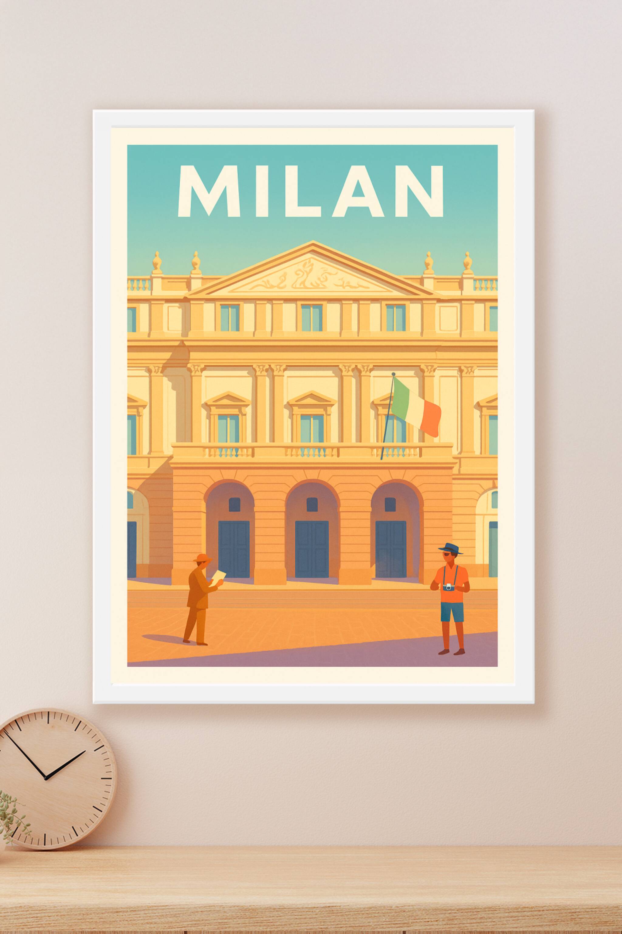Découvrez la grandeur architecturale de Milan avec cette affiche illustrée mettant en avant un monument emblématique de la ville, baigné dans une lumière chaude et apaisante. Ce poster élégant capture l'essence du charme italien et le vivant quotidien de ses visiteurs. Imprimé en tirage "Fine Art" sur papier 305g coton, il offre une qualité d'impression exceptionnelle qui sublimera votre intérieur. Disponible en formats A1 à A4, avec ou sans cadre, cette affiche est parfaite pour décorer votre maison ou offrir un cadeau raffiné aux amateurs d'art et de voyages. Optez pour une décoration mêlant tradition et modernité avec une fabrication 100% française.