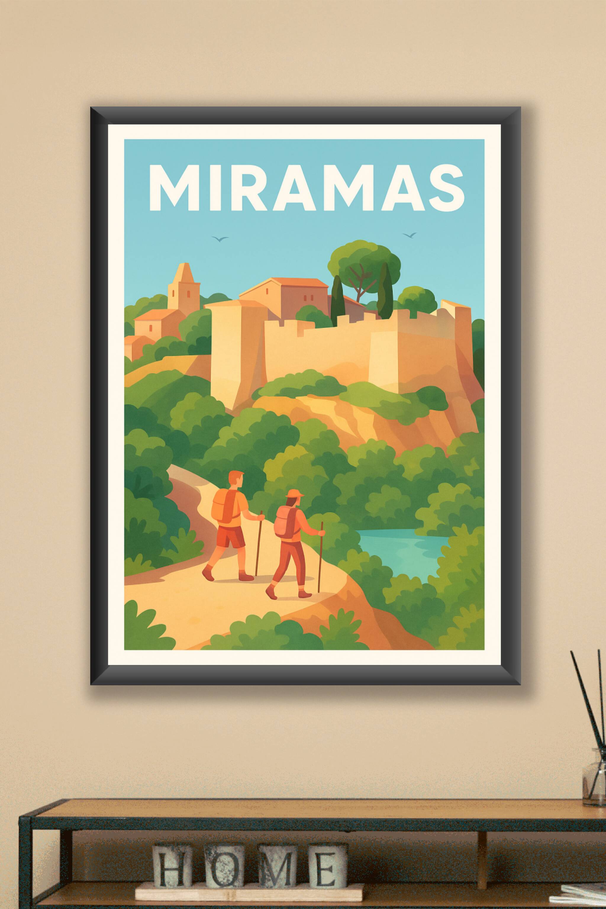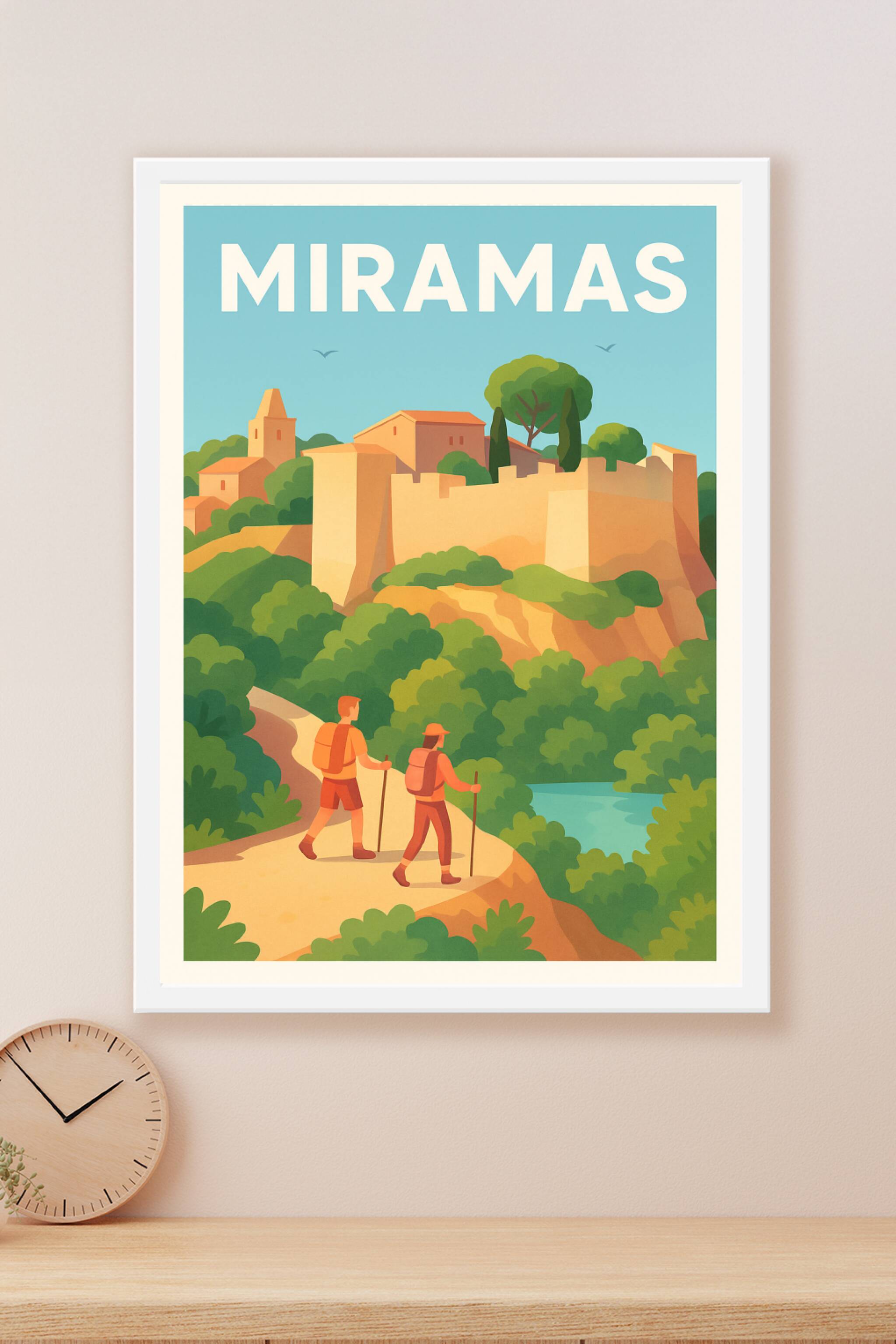 Découvrez la beauté authentique de Miramas à travers cette affiche illustrée qui capture l'essence de ses paysages naturels et de son patrimoine historique. Ce poster met en scène deux randonneurs explorant un sentier bordé de végétation luxuriante et surplombé par les fortifications emblématiques de la ville.Cet article est imprimé en tirage "Fine Art" sur un papier coton 305g, garantissant une excellente qualité d'impression et une durabilité optimale. Disponible en formats A1 à A4, avec ou sans cadre, cette affiche est parfaite pour apporter une touche d'aventure et d'histoire à votre décoration intérieure.Profitez d'un poster premium, 100% fabriqué en France, idéal pour les amateurs de randonnée, de nature et de patrimoine à la recherche d'un souvenir raffiné de Miramas.