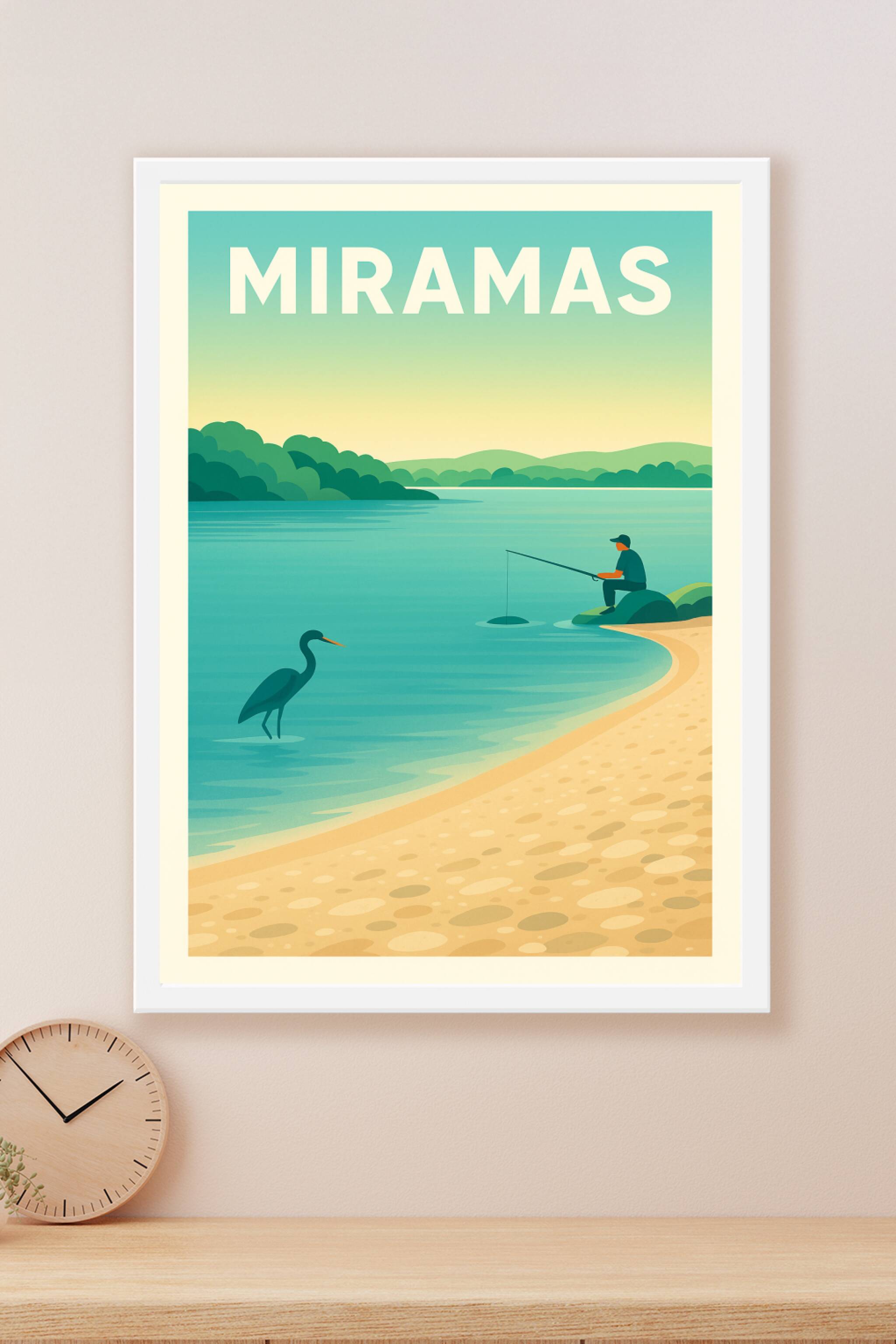 Apportez une touche de sérénité à votre intérieur avec cette affiche illustrée de Miramas, représentant une scène paisible entre nature et détente ...