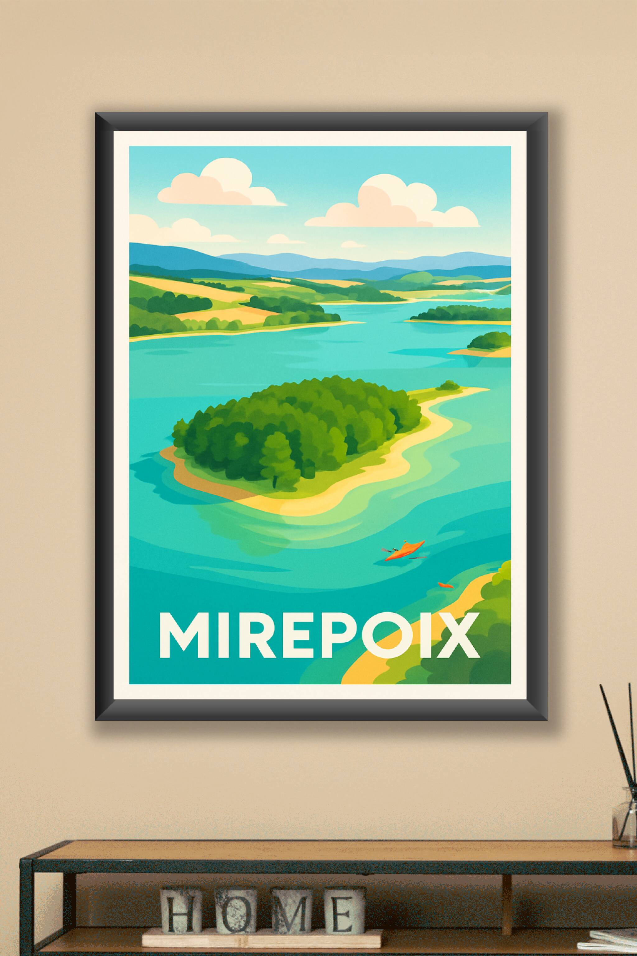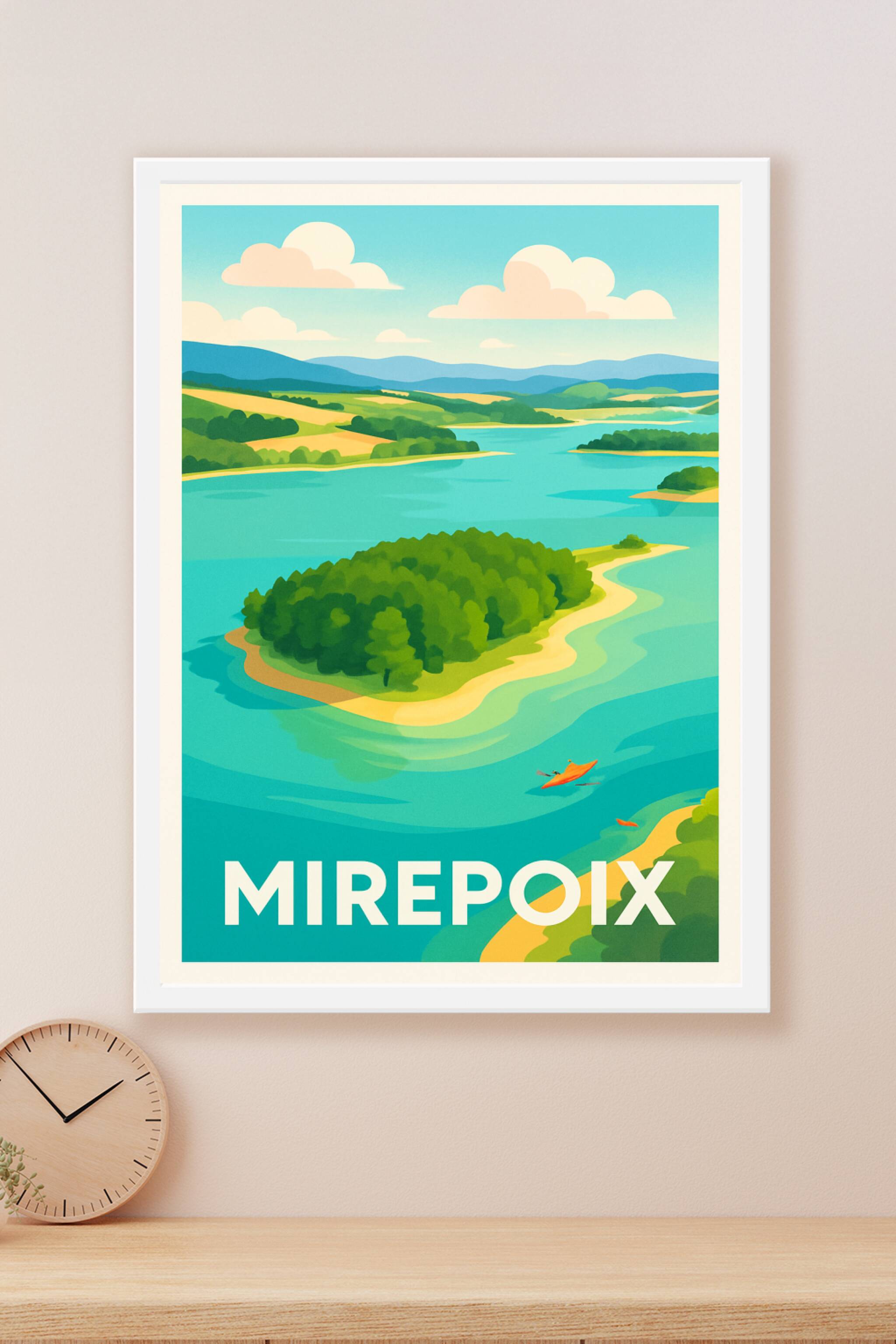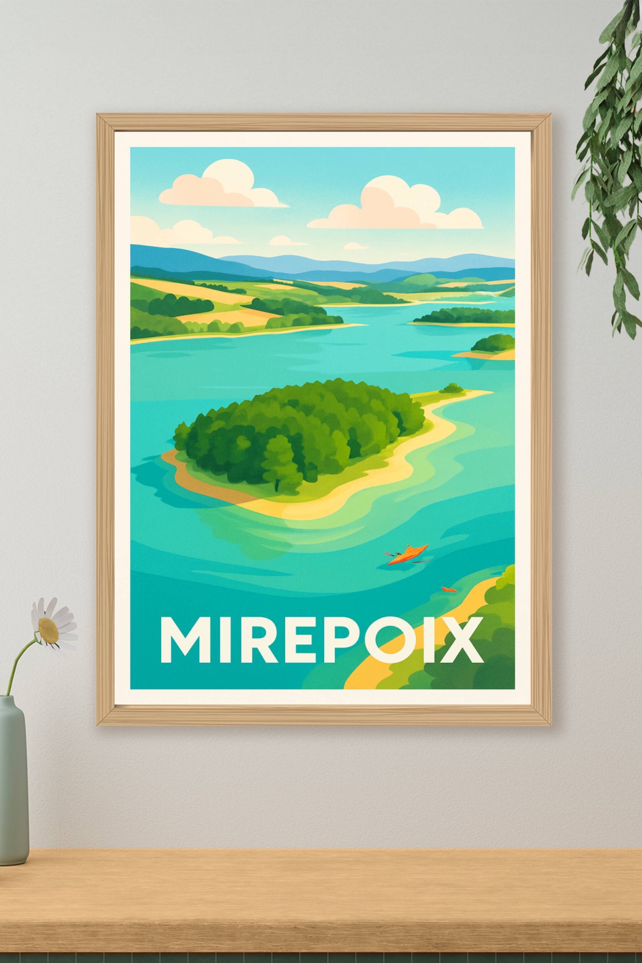 Découvrez le charme paisible de Mirepoix avec ce poster illustré qui met en lumière ses paysages verdoyants et ses étendues d'eau apaisantes. Cette...