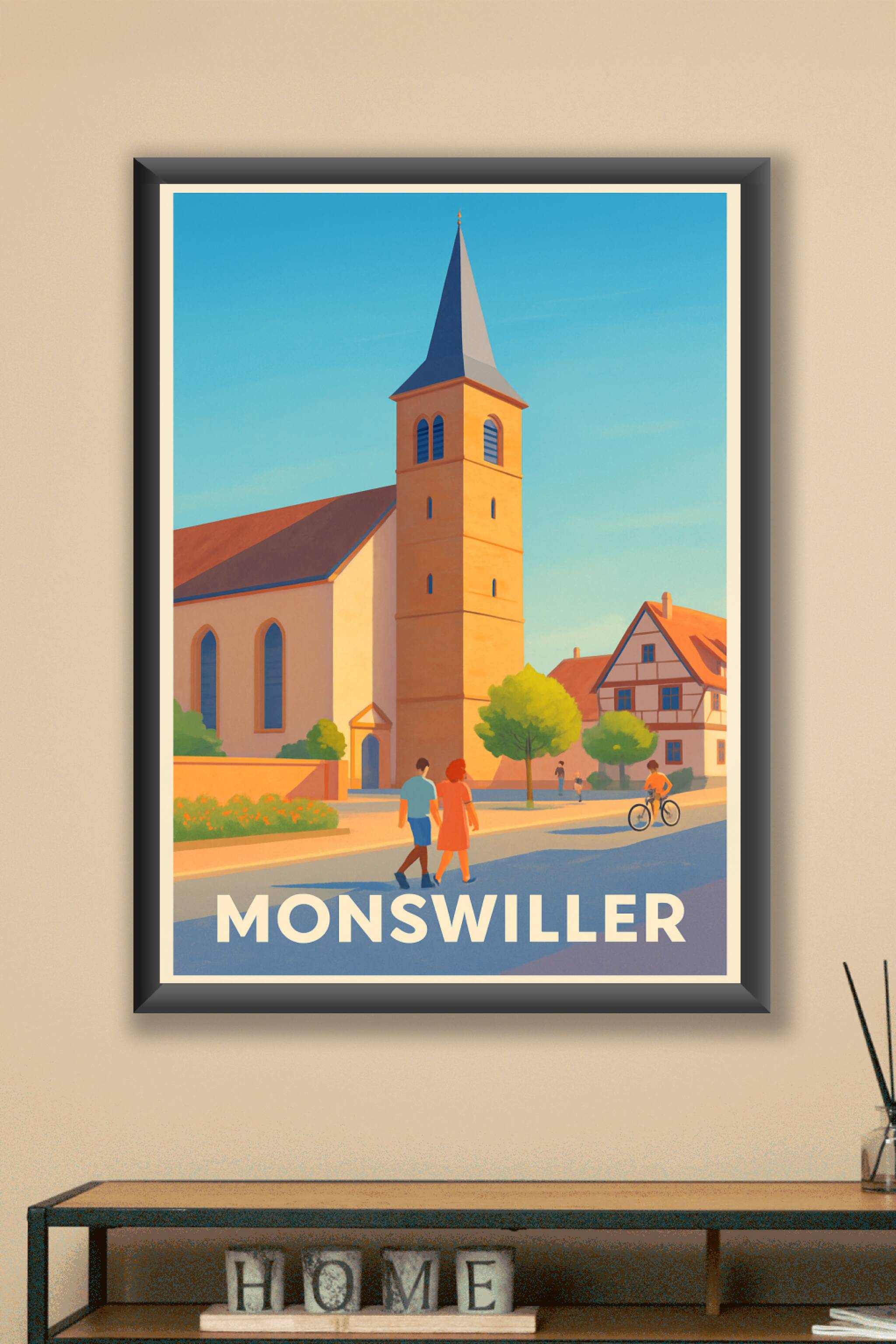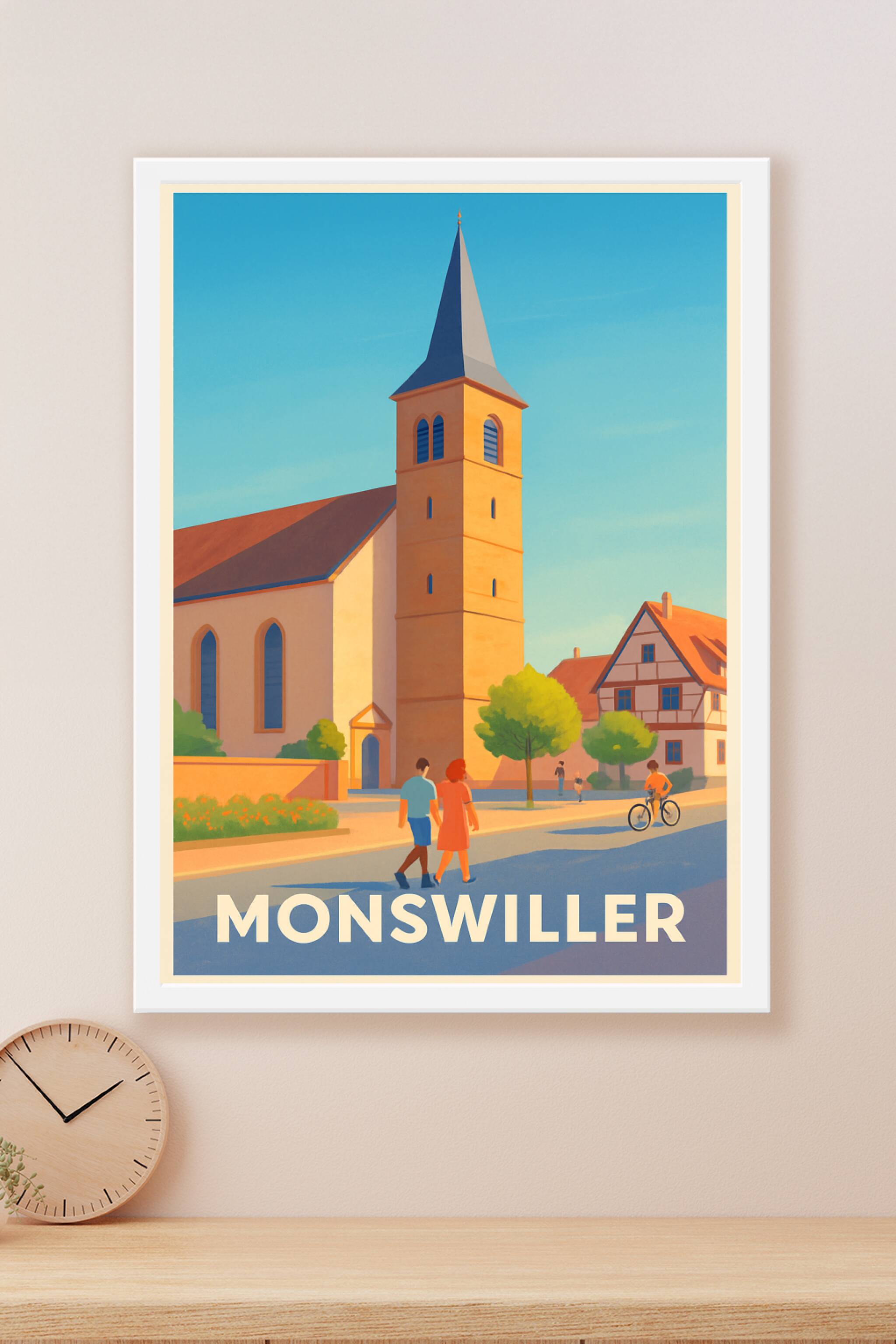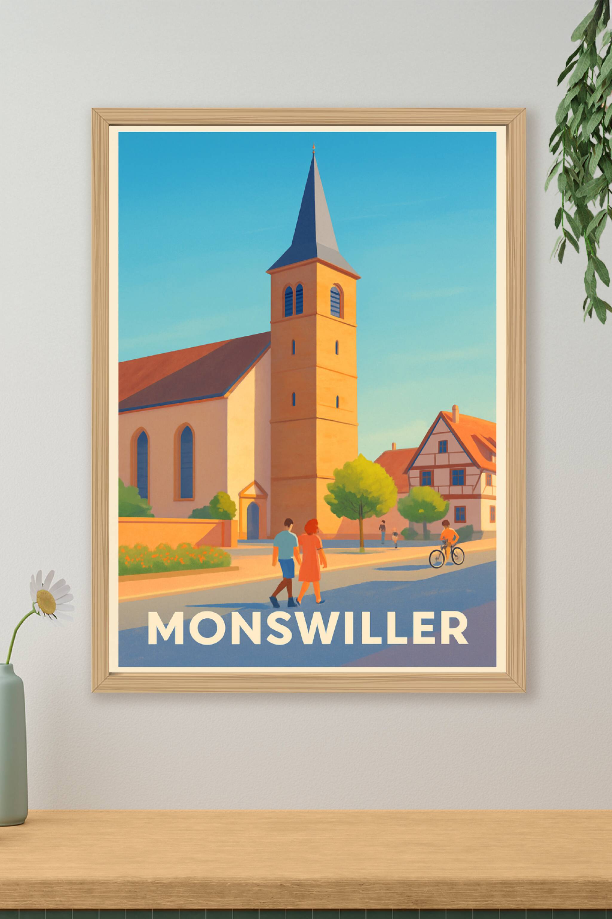 Découvrez l'élégance intemporelle de Monswiller avec cette affiche illustrée, qui met en lumière l'architecture typique et l'atmosphère paisible de...