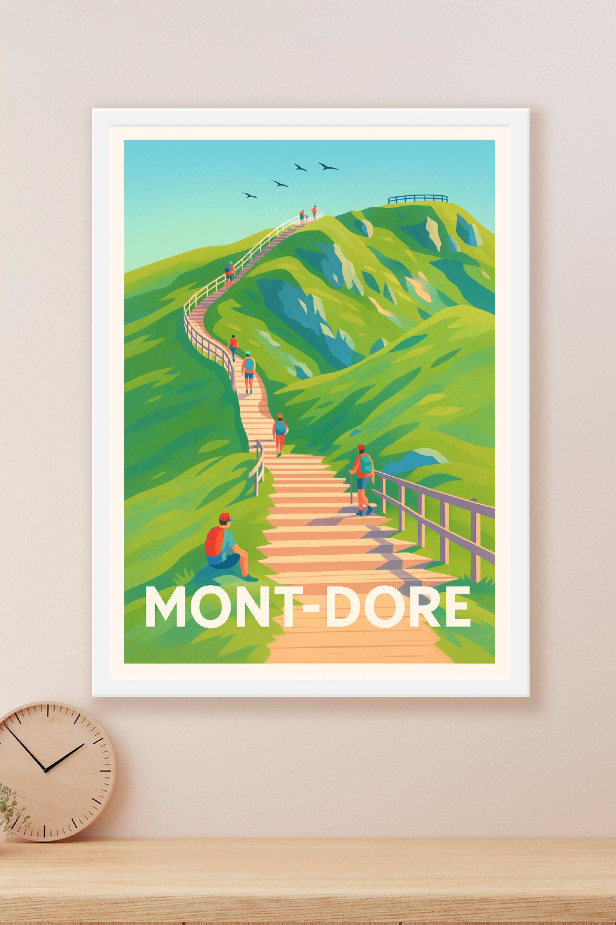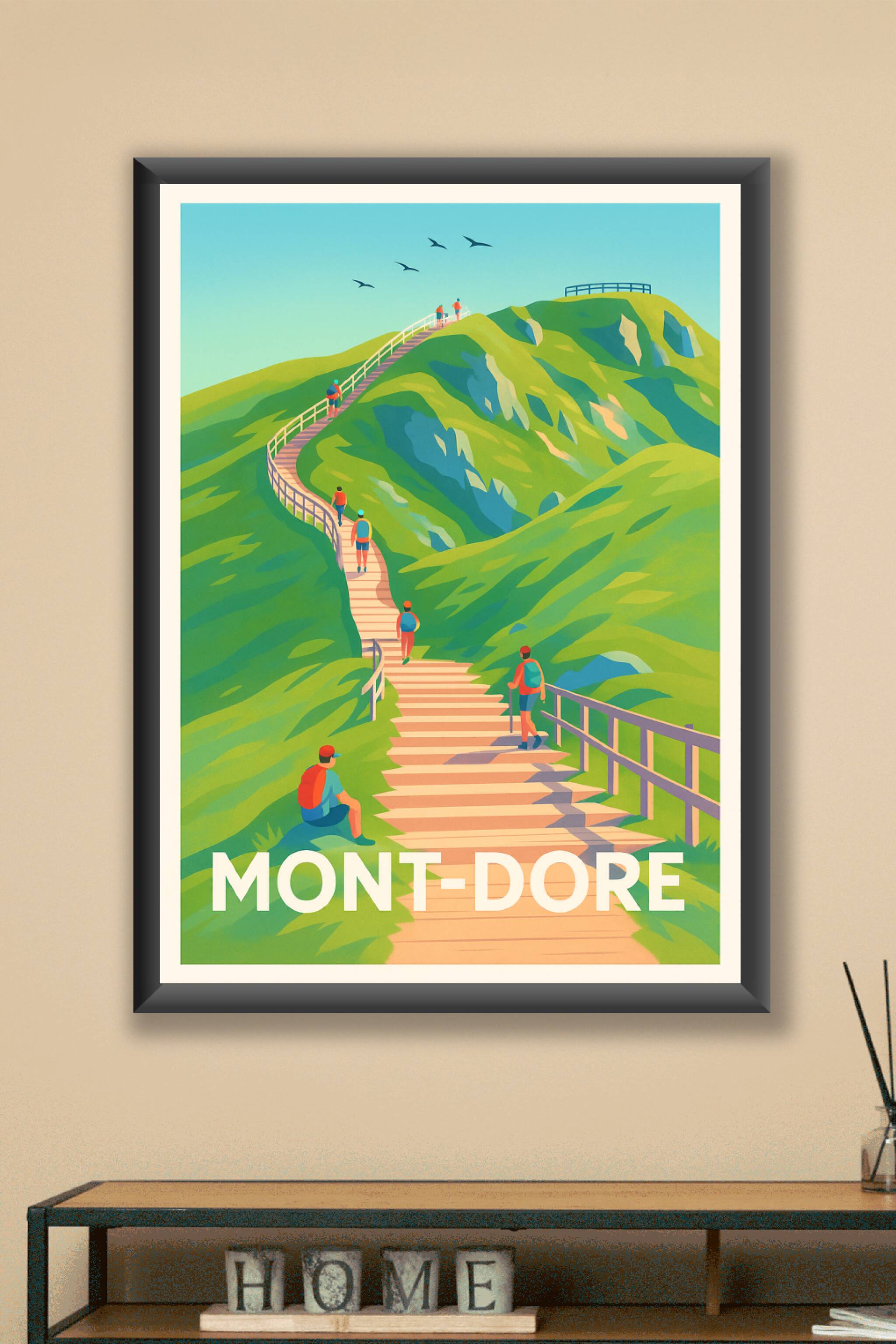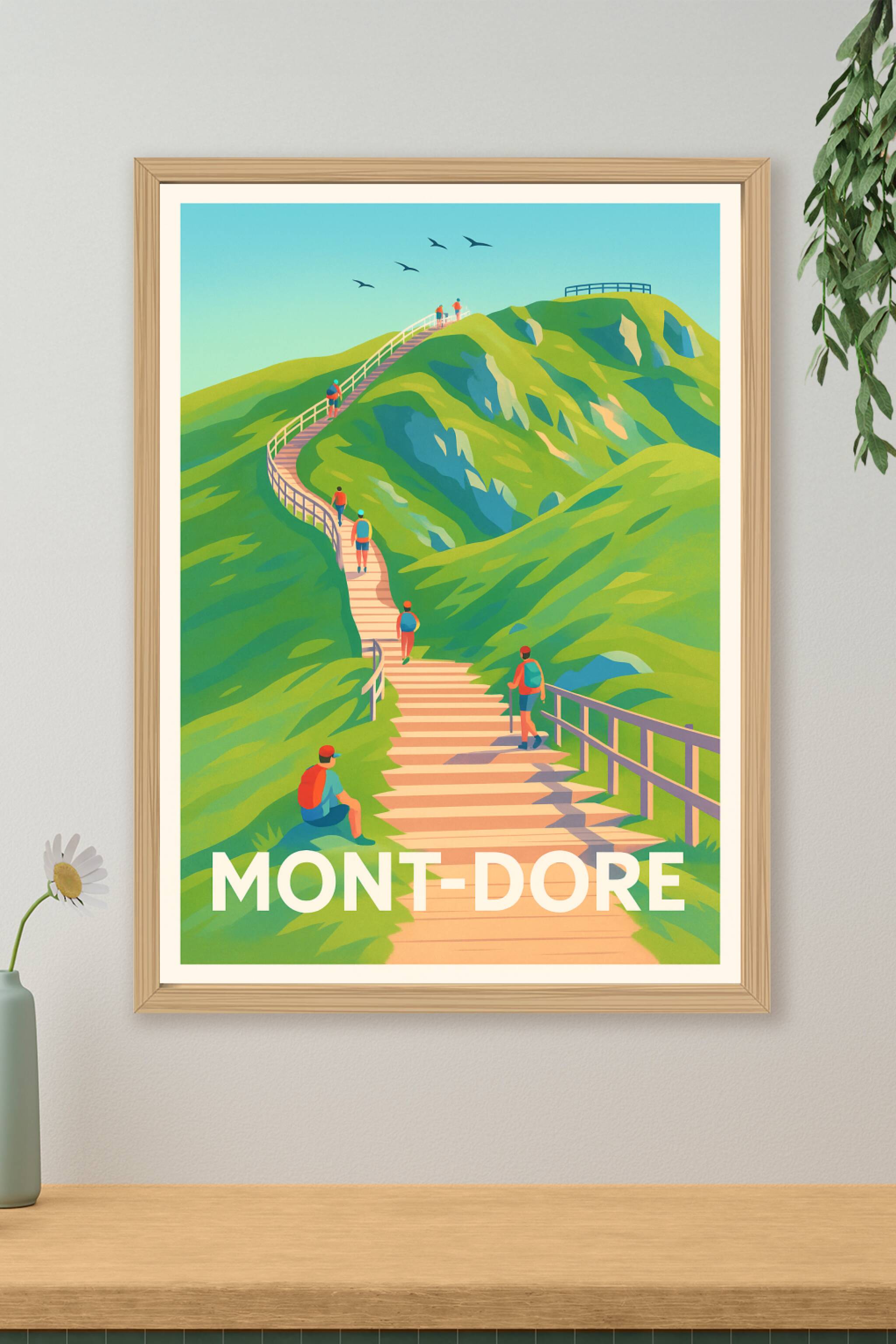 Découvrez la beauté des paysages verdoyants du Mont-Dore avec cette affiche illustrée, idéale pour les passionnés de nature et de randonnée. Ce pos...