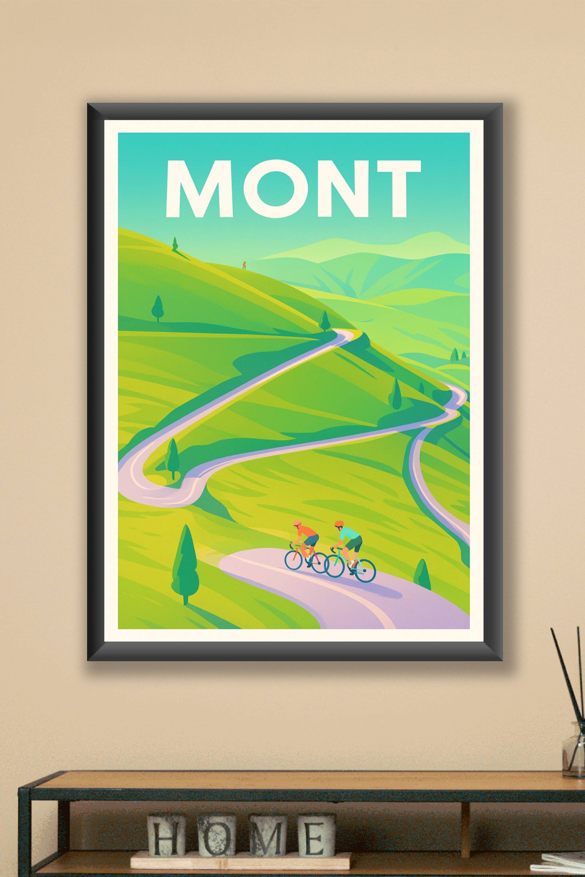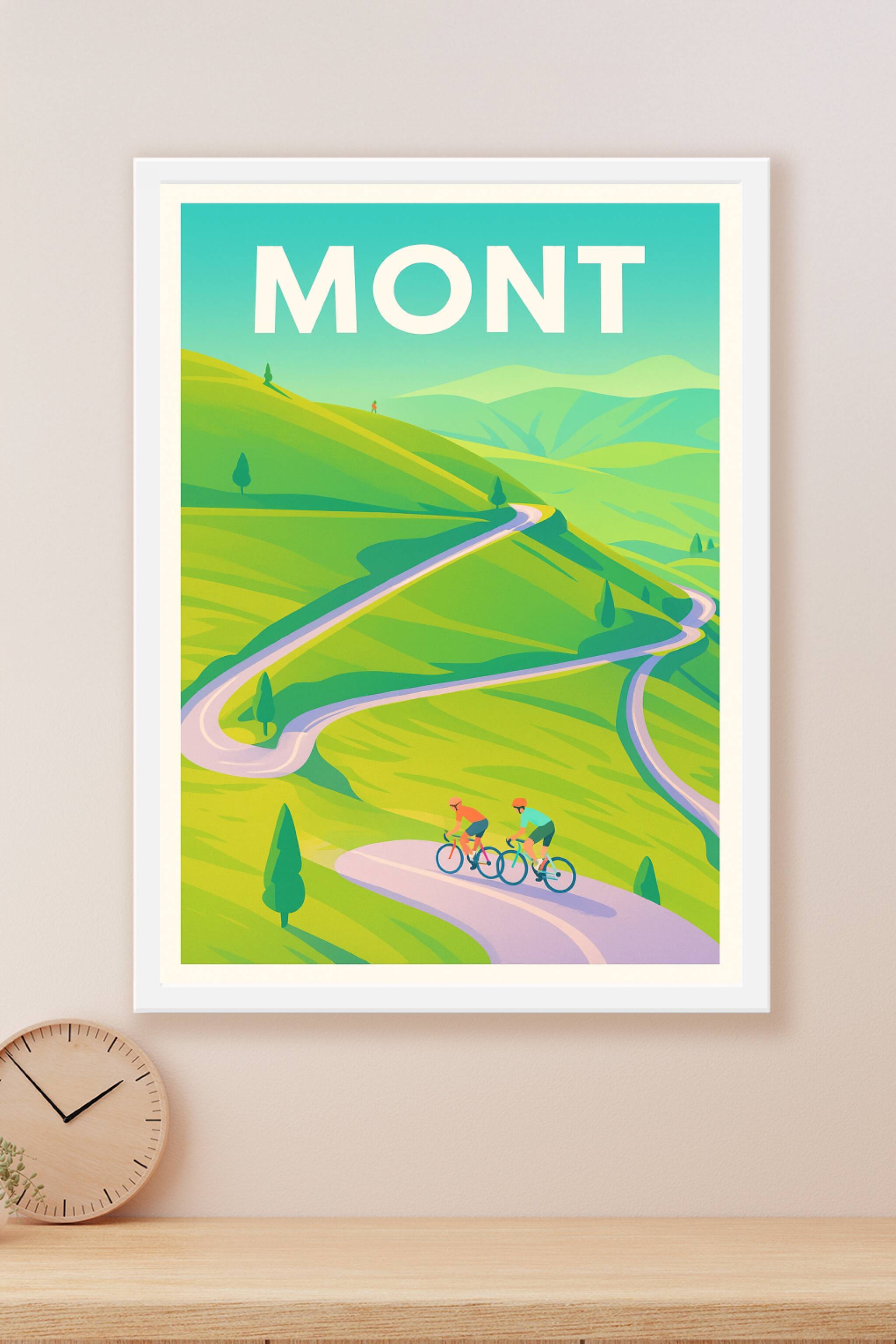 Découvrez l'énergie et la fraîcheur des paysages montagneux avec cette affiche illustrée mettant en scène deux cyclistes sur une route sinueuse. Ce poster au style moderne et épuré capture la beauté des sentiers escarpés et l'aventure sportive en pleine nature.Cet article est imprimé en tirage "Fine Art" sur un papier 305g coton, garantissant des couleurs intenses et une durabilité exceptionnelle. Disponible du format A1 à A4, avec ou sans cadre, cette affiche apportera une touche dynamique et inspirante à votre intérieur ou à votre bureau. Profitez d'une impression haut de gamme, 100% fabriquée en France, pour embellir votre décoration ou offrir un cadeau unique aux amateurs de montagne et de cyclisme.