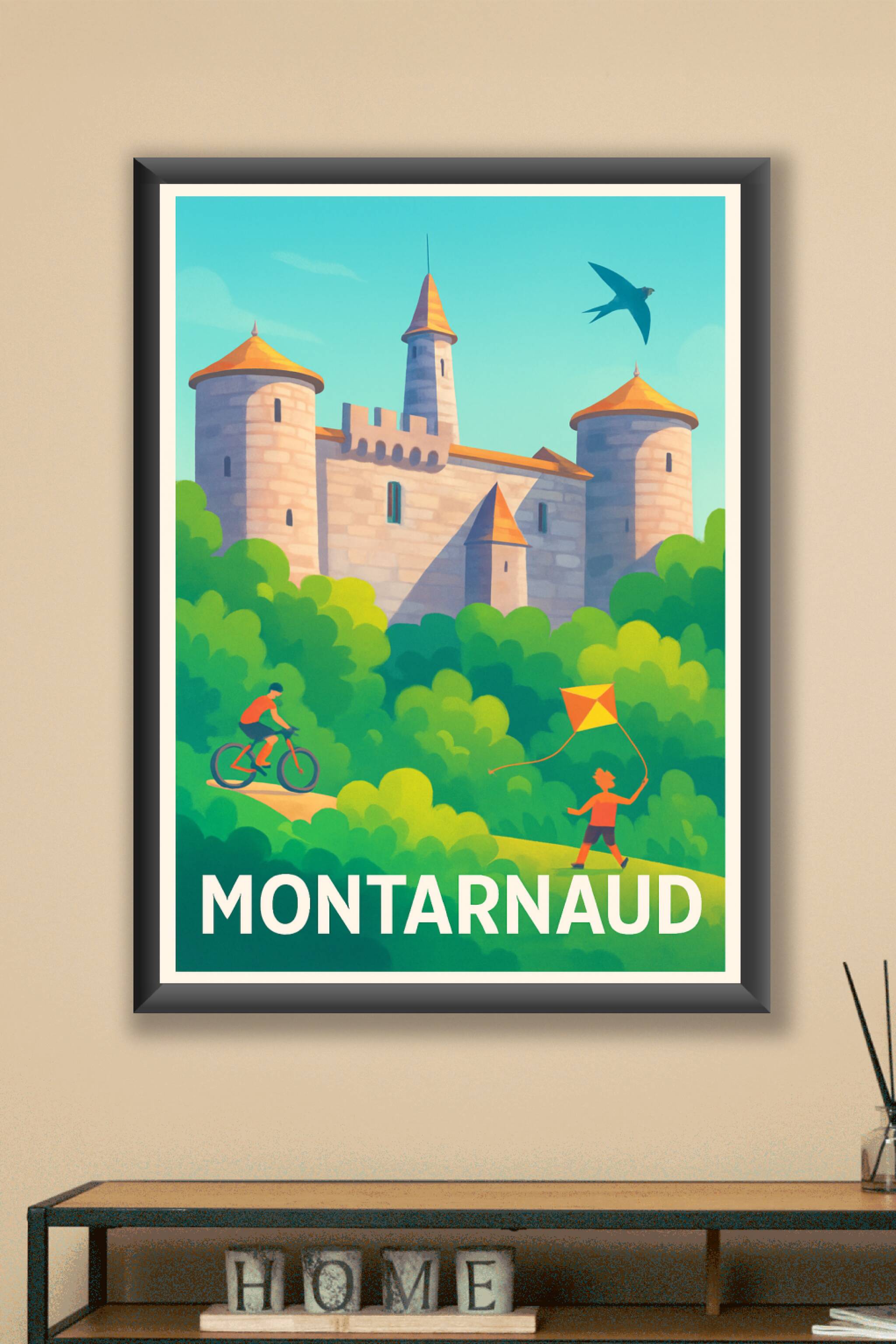 Découvrez l'affiche illustrée de Montarnaud qui capture avec finesse son château historique entouré d'une nature luxuriante et animée par des personnages en pleine activité de plein air. Cette poster au style lumineux et chaleureux évoque une atmosphère paisible et familiale, parfaite pour apporter une touche de fraîcheur et d'authenticité à votre intérieur.Cette affiche est imprimée en tirage "Fine Art" sur papier 305g coton, garantissant une qualité d'impression supérieure et des couleurs éclatantes qui dureront dans le temps. Disponible en formats allant de A1 à A4, avec ou sans cadre, ce poster s'adapte à tous les espaces et styles déco. Profitez d'un produit premium, 100% fabriqué en France, idéal pour les passionnés de patrimoine et de nature ou pour offrir un souvenir élégant de Montarnaud.