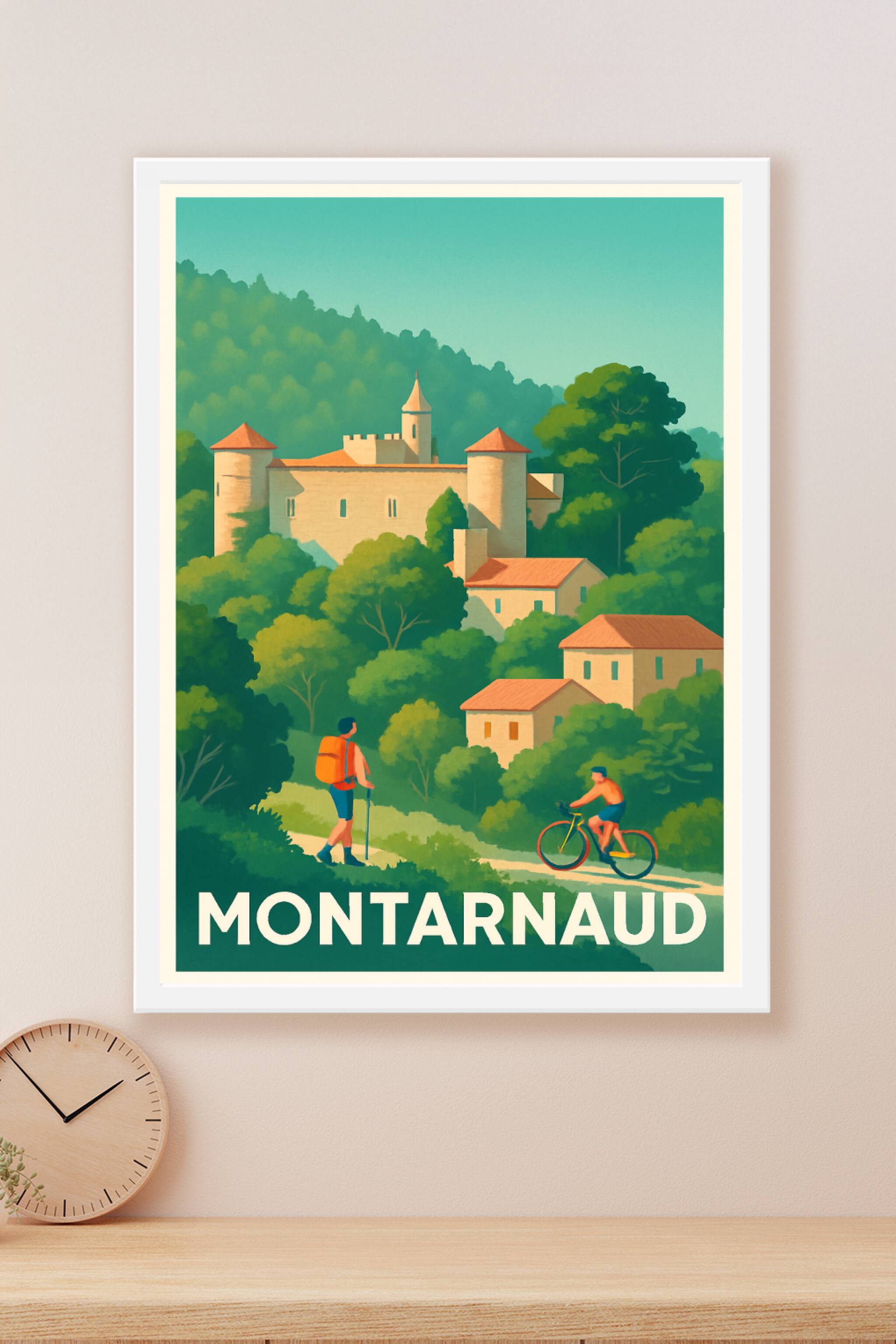 Découvrez la douceur de vivre à Montarnaud avec cette affiche illustrée qui met en lumière son château emblématique niché au milieu d'une nature ve...