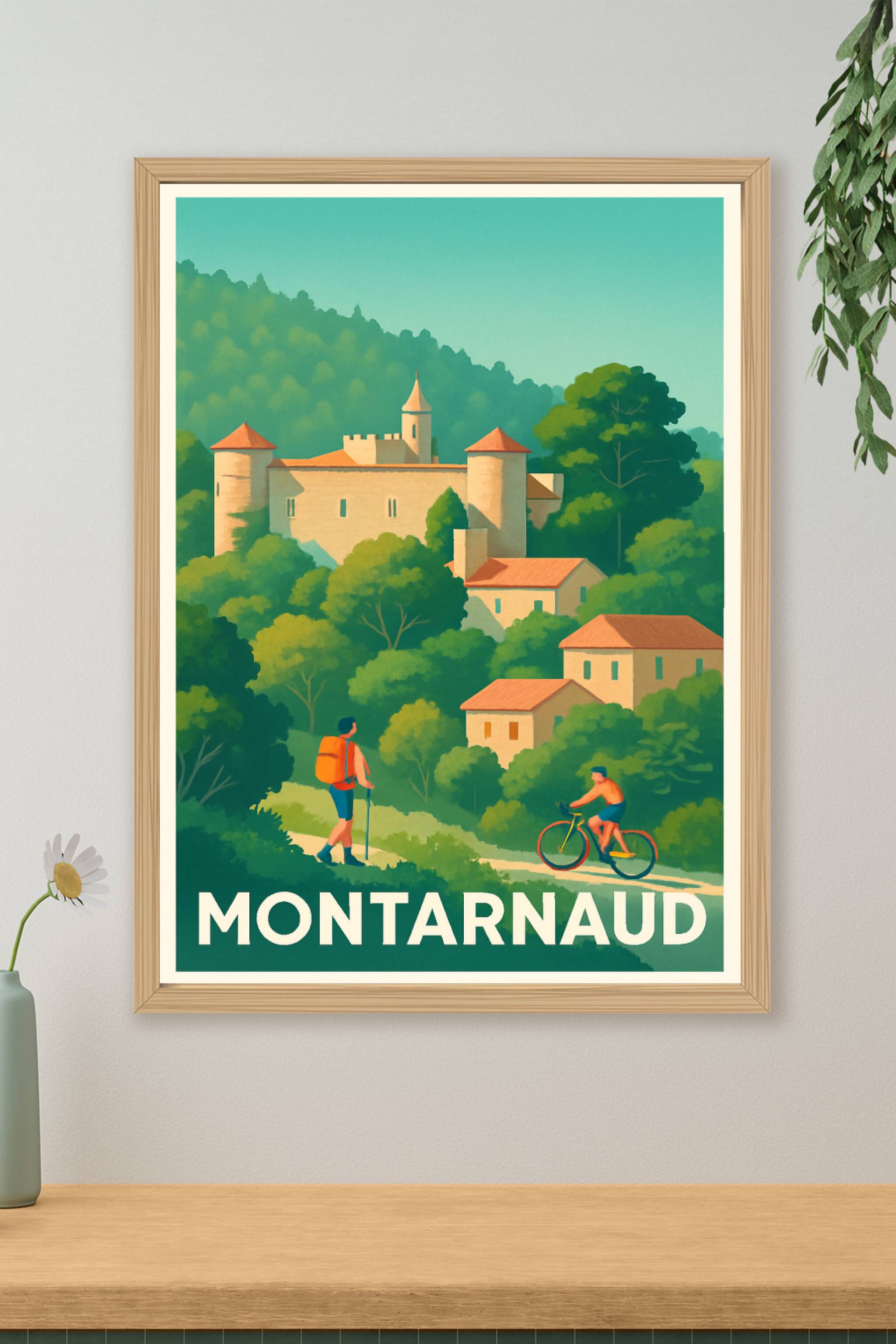 Découvrez la douceur de vivre à Montarnaud avec cette affiche illustrée qui met en lumière son château emblématique niché au milieu d'une nature verdoyante. Ce poster capture à merveille l'esprit d'aventure avec un randonneur et un cycliste explorant les chemins pittoresques de la région.Cette affiche est imprimée en tirage "Fine Art" sur un papier 305g coton haut de gamme, garantissant un rendu des couleurs éclatant et une durabilité exceptionnelle. Disponible en formats A1 à A4, avec ou sans cadre, elle est idéale pour sublimer votre intérieur ou offrir un cadeau raffiné aux amoureux des paysages authentiques. Profitez d'une impression de qualité premium, 100% fabriquée en France, pour apporter une touche de charme méridional à votre décoration.