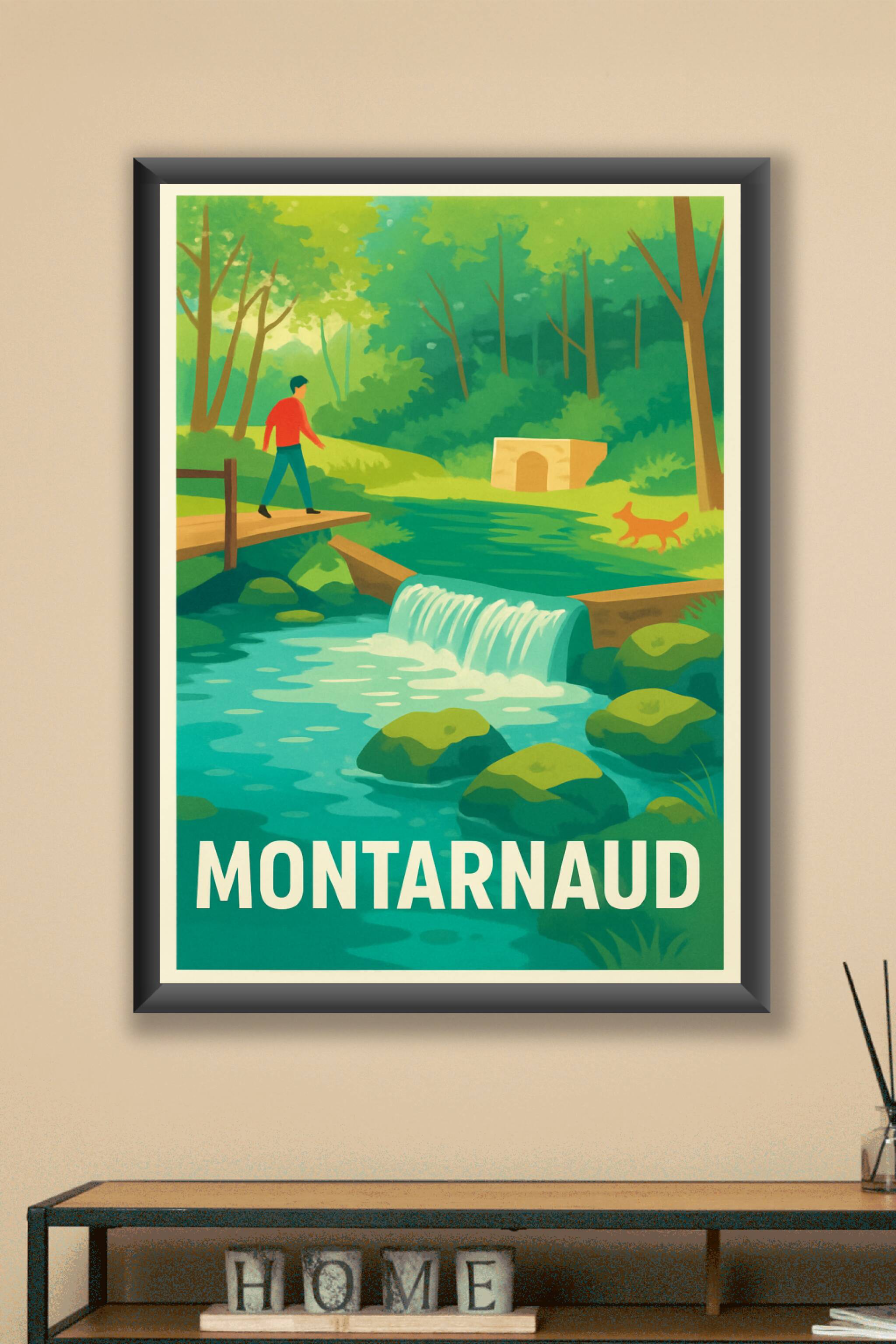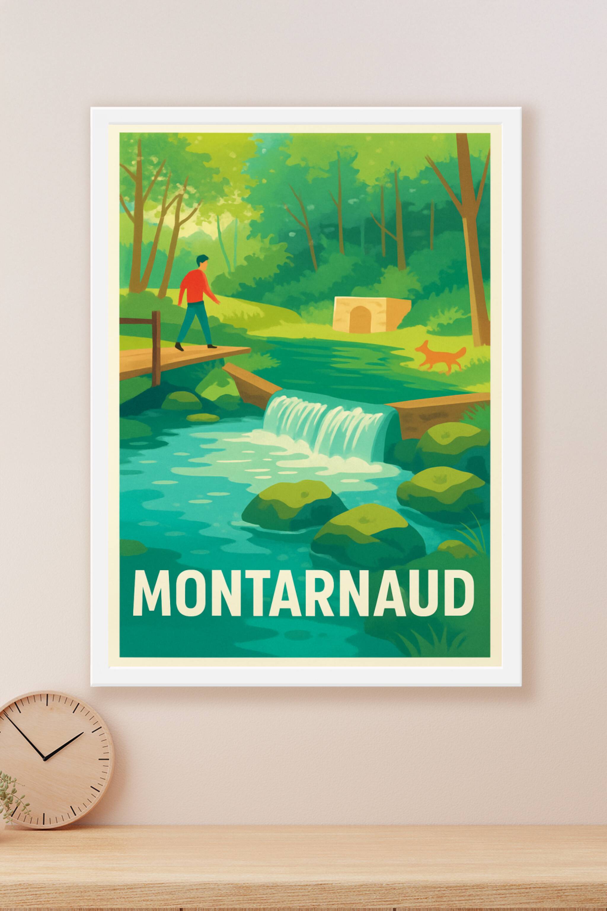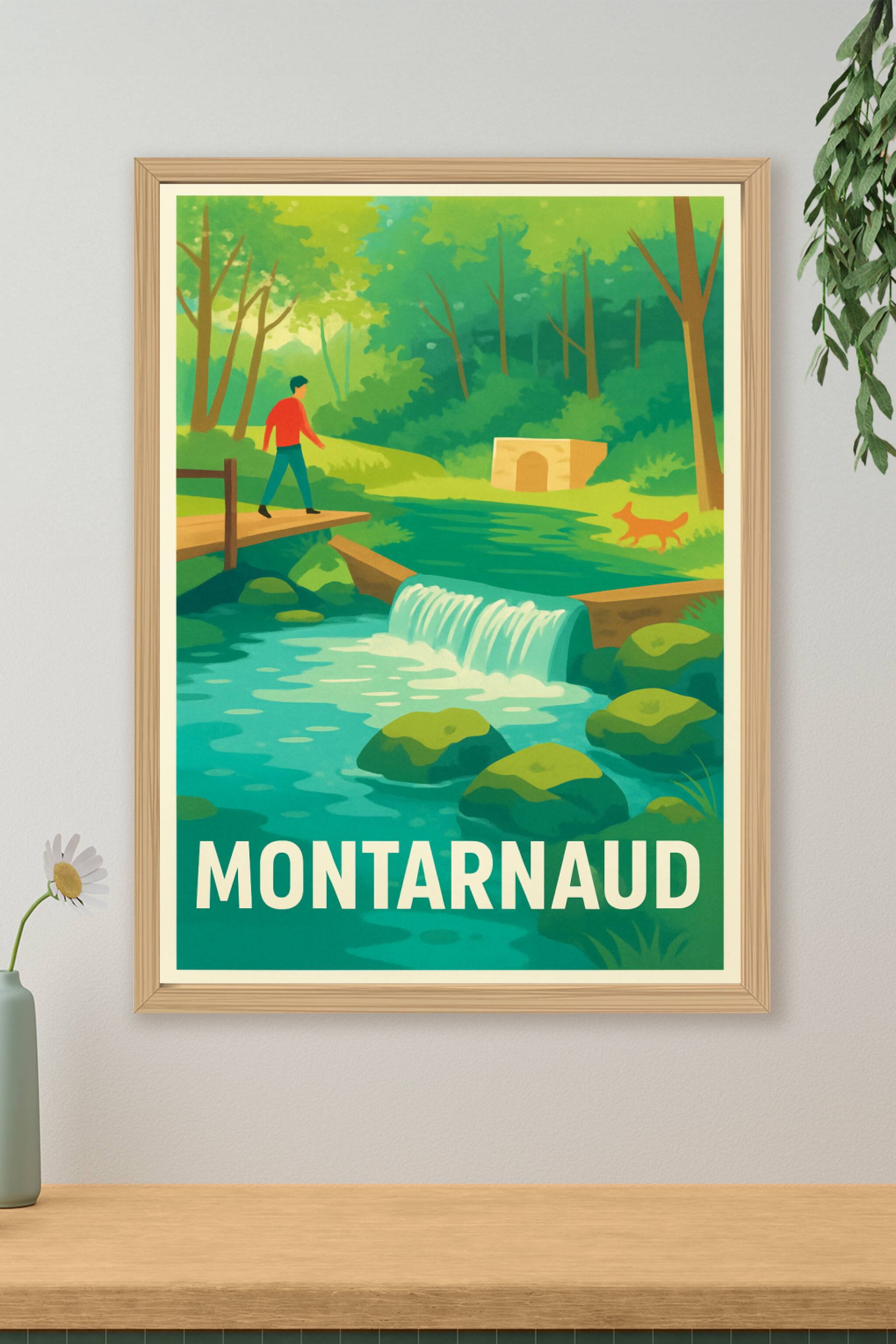 Découvrez l'affiche Montarnaud qui capture l'essence d'une promenade paisible au bord d'un ruisseau enchanteur. Ce poster aux couleurs vibrantes il...