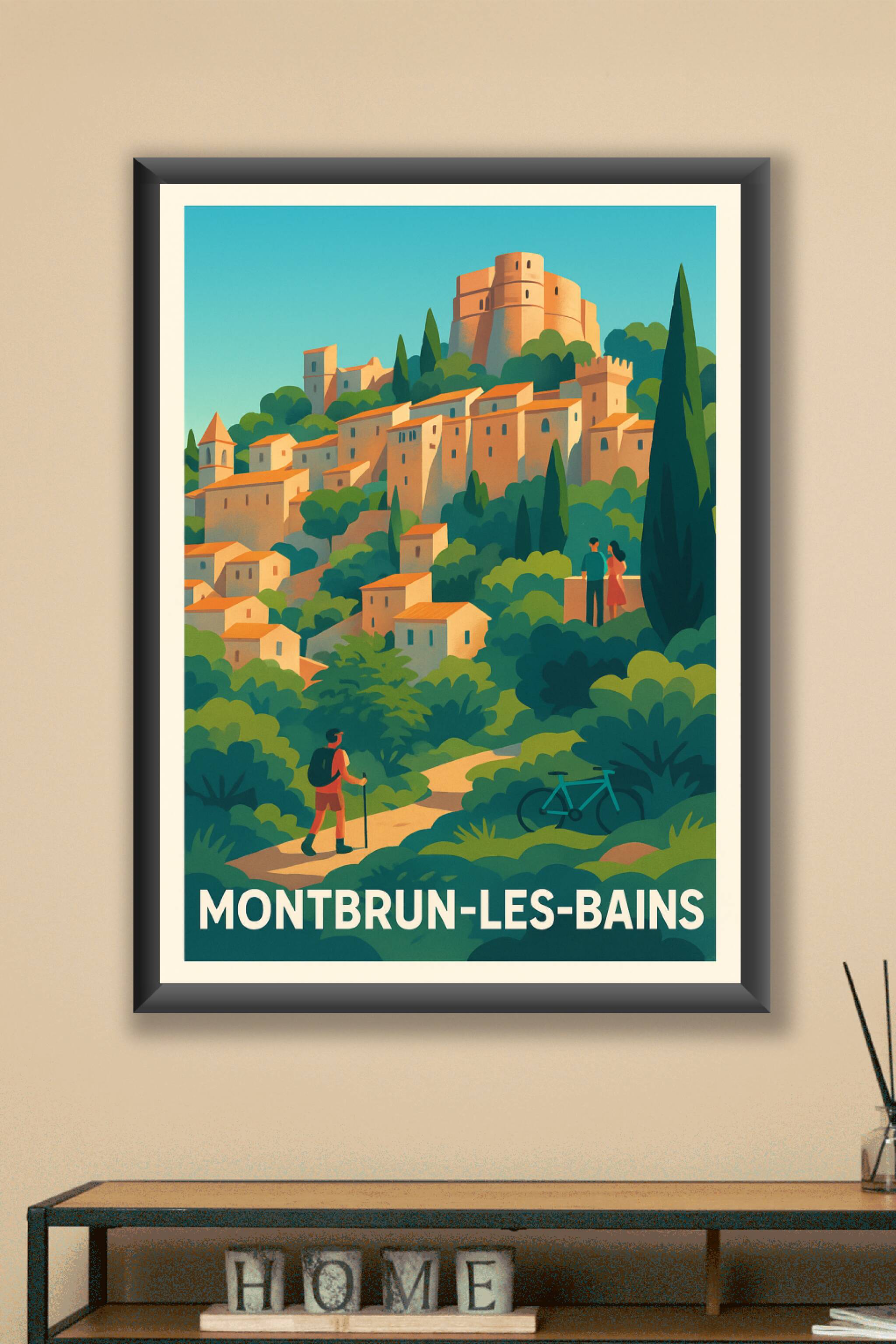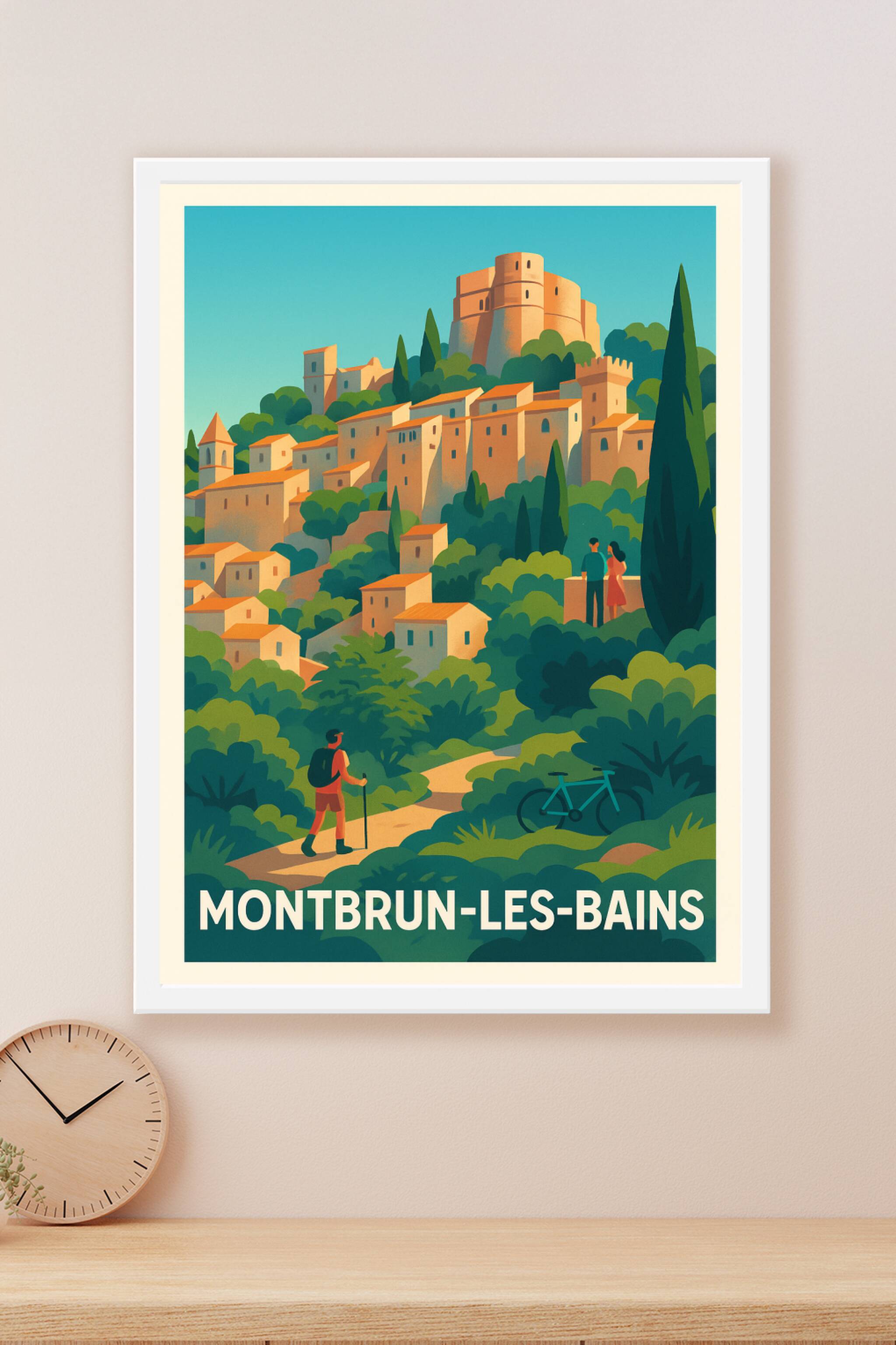 Découvrez le charme pittoresque et la douceur de vivre de Montbrun-les-Bains avec cette superbe affiche illustrée. Le village médiéval, niché au so...