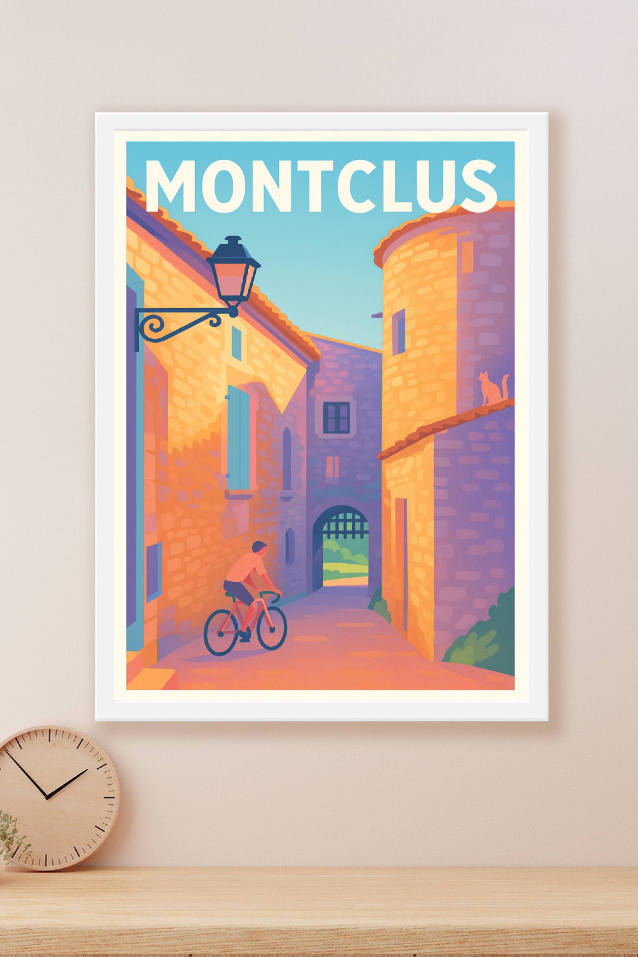 Découvrez le charme authentique de Montclus à travers cette affiche illustrée qui capture les ruelles baignées de lumière dorée et l'ambiance paisible du village médiéval. Un cycliste traverse la scène, ajoutant une touche de vie et de sérénité à cette perspective colorée. Disponible en tirage "Fine Art" sur papier 305g coton, cette affiche offre une impression de haute qualité, fidèle aux détails et aux couleurs vibrantes. Proposée en formats A1 à A4, avec ou sans cadre, elle s'adapte parfaitement à votre déco intérieure, pour une invitation au voyage et à la découverte de cette perle du Gard. Offrez-vous ou offrez un souvenir raffiné avec ce poster premium imprimé en France.