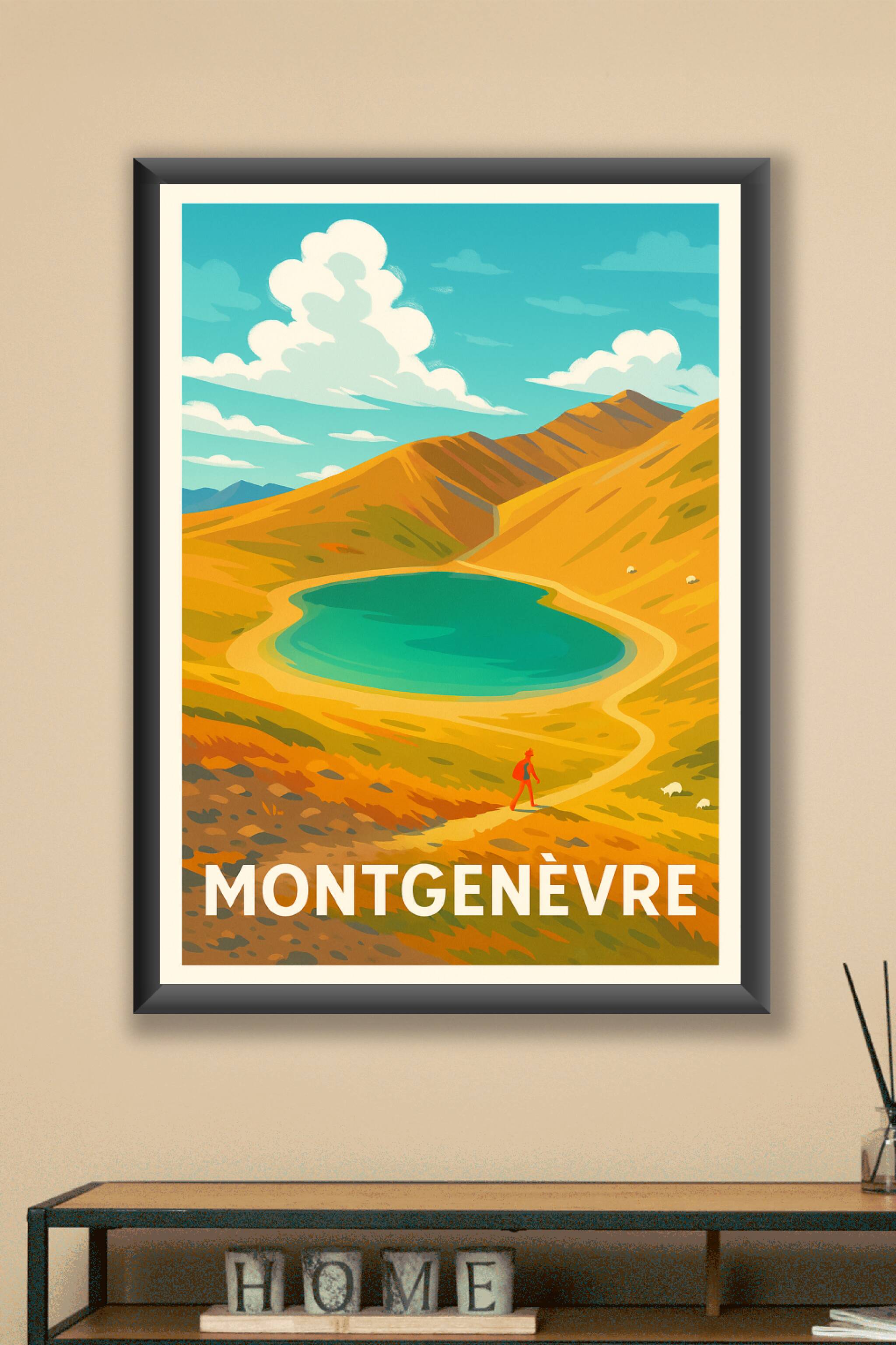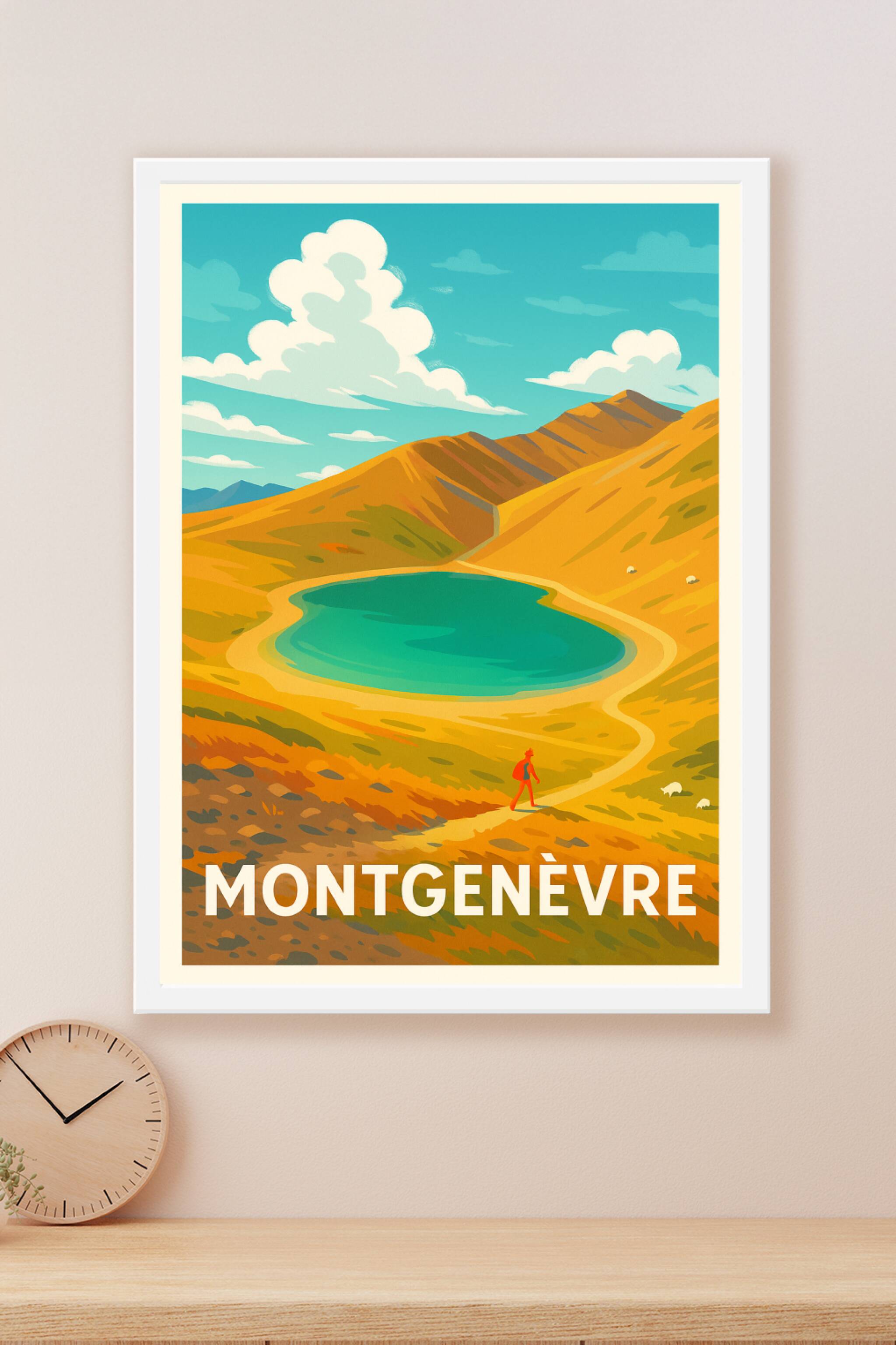 Découvrez la beauté sauvage et paisible de Montgenèvre avec cette affiche illustrée au style vintage rappelant les grandes escapades en montagne. Le poster met en valeur un lac bleu limpide niché au cœur de paysages dorés, invitant à la randonnée et à la contemplation. Imprimée en tirage "Fine Art" sur papier 305g coton, cette affiche bénéficie d'une qualité d'impression exceptionnelle pour sublimer chaque détail et chaque couleur. Disponible en formats A1 à A4, avec ou sans cadre, elle s'adapte à toutes les décorations d'intérieur. Apportez une touche de nature et d'évasion à votre maison ou offrez ce poster aux amoureux des grands espaces et des paysages alpins.