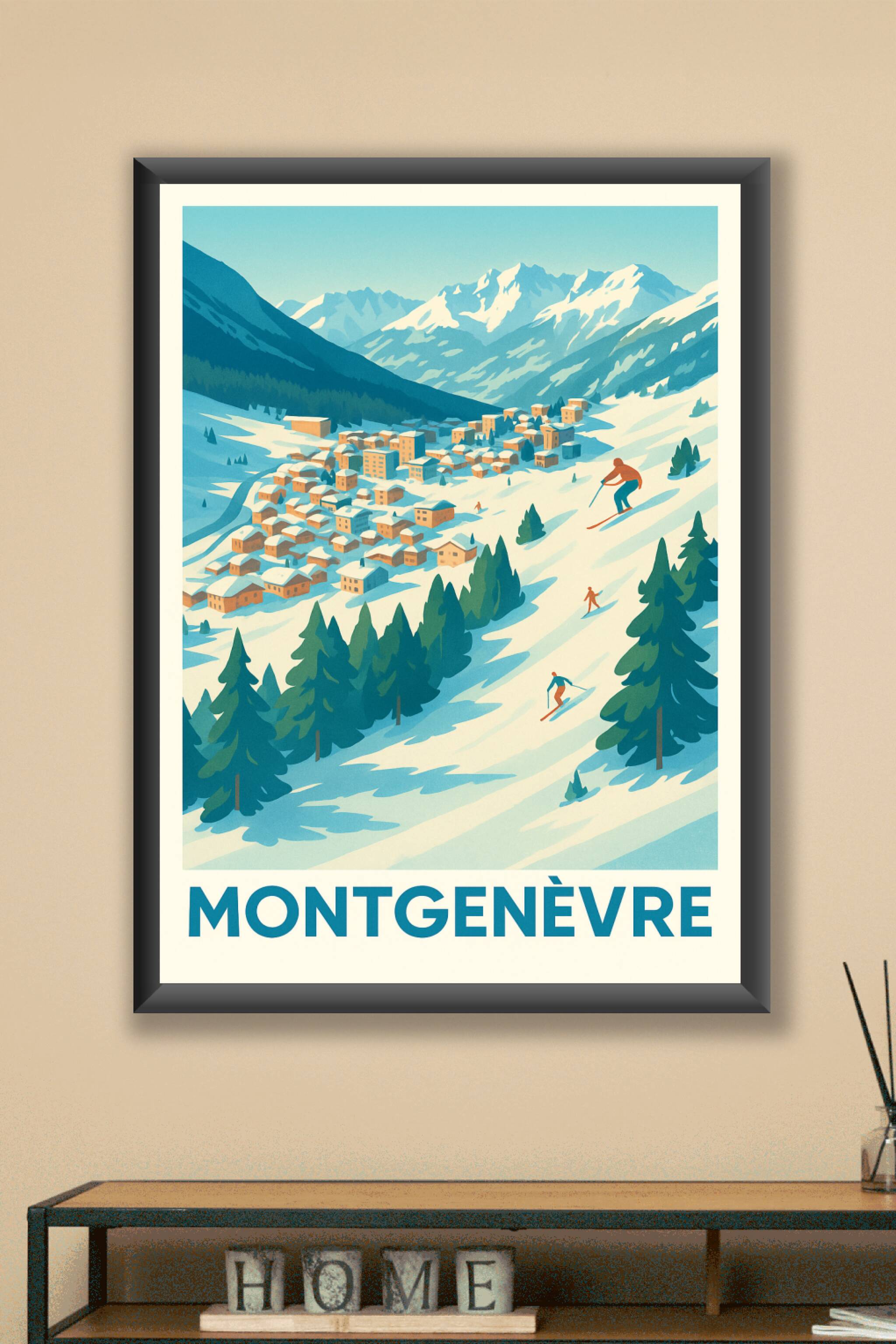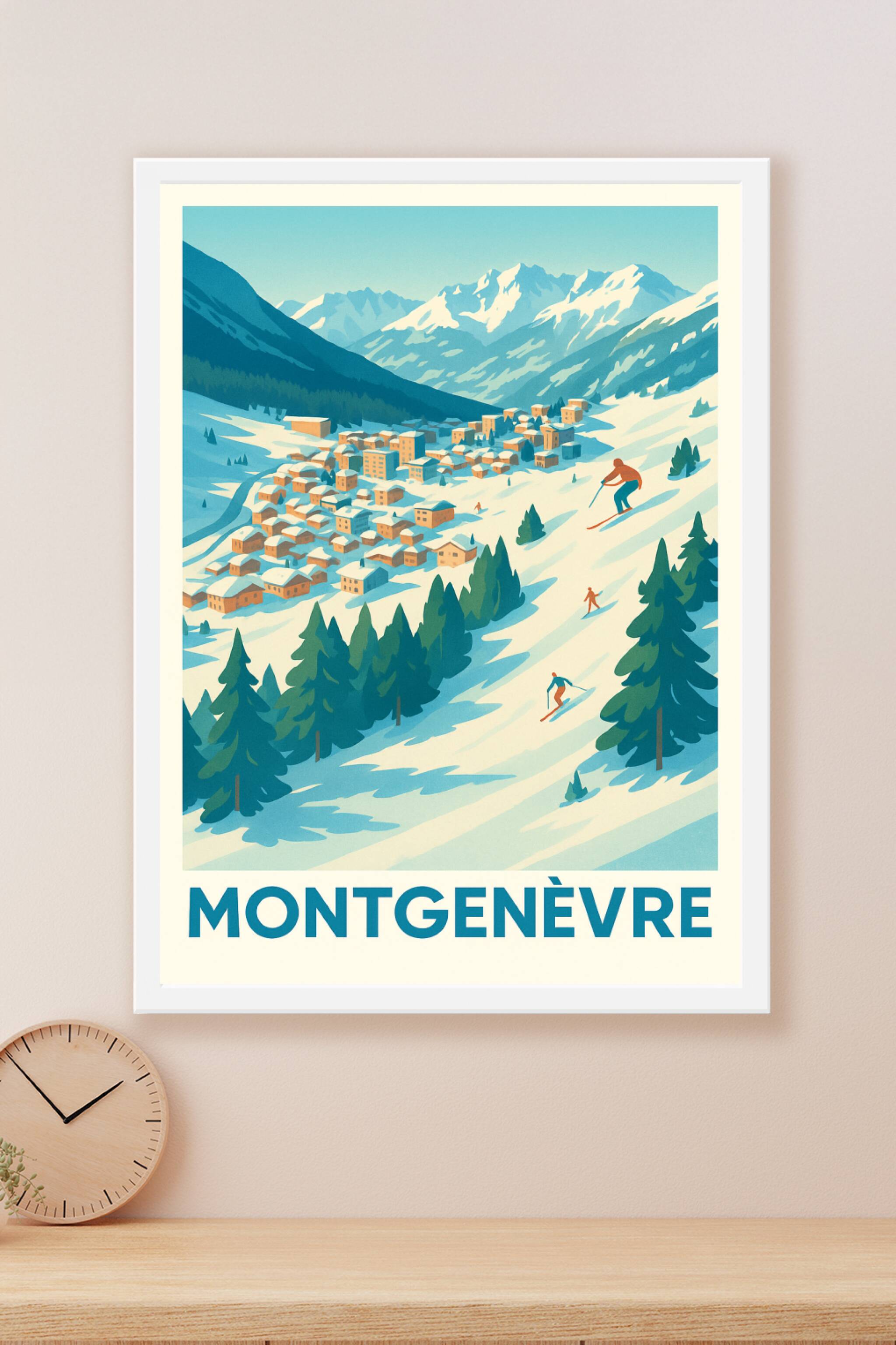 Découvrez l'ambiance paisible et dynamique de Montgenèvre, station emblématique des Alpes françaises, magnifiquement illustrée sur cette affiche vintage. Ce poster met en scène les sommets enneigés et les skieurs glissant au cœur d’un village pittoresque, parfait pour les amoureux de la montagne et des sports d’hiver. Disponible en tirage "Fine Art" sur papier 305g coton, cette affiche vous garantit une qualité d’impression exceptionnelle et durable. Choisissez parmi les formats A1, A2, A3 et A4, avec ou sans cadre, pour personnaliser votre décoration intérieure. Ce poster est le cadeau idéal ou le souvenir parfait à offrir à tous les passionnés de Montgenèvre et des paysages alpins.