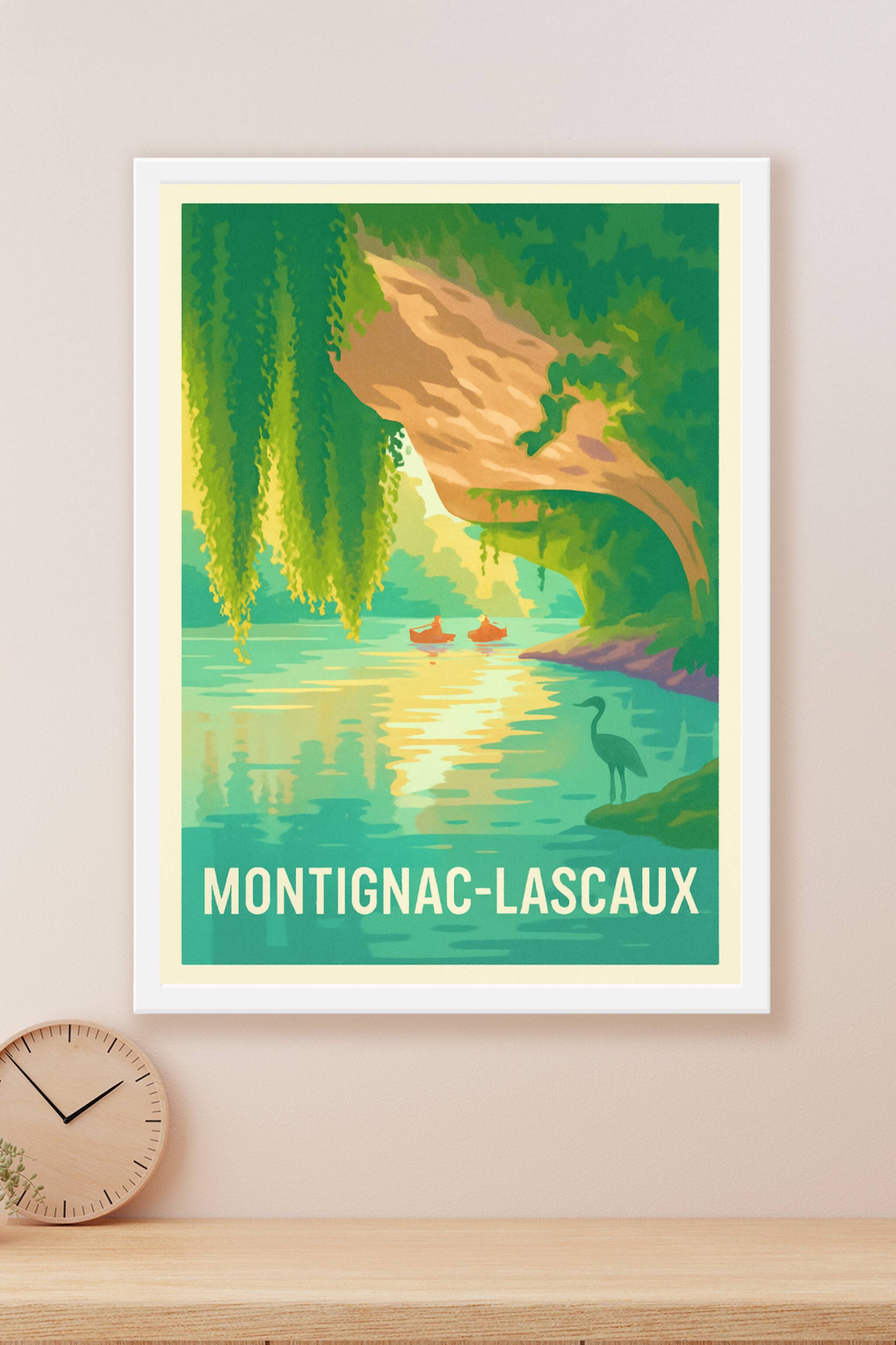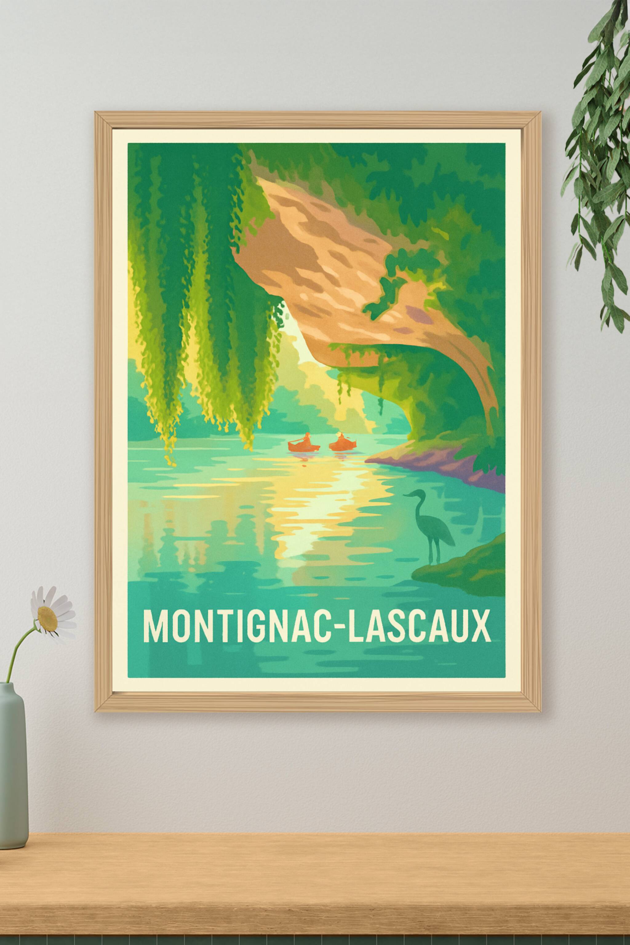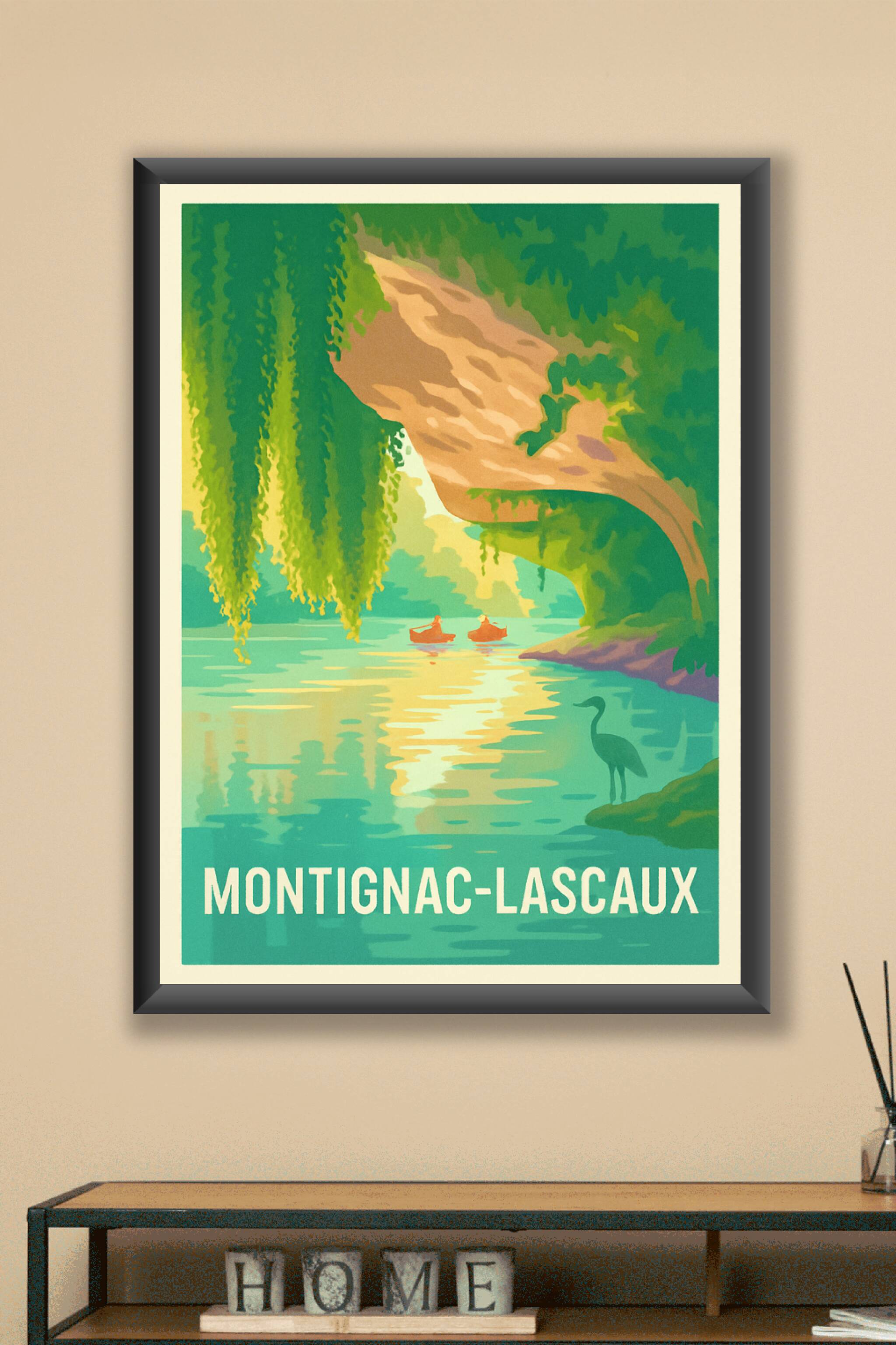 Découvrez l'atmosphère paisible et naturelle de Montignac-Lascaux avec ce poster artistique présentant une scène au bord de l'eau, illuminée par des nuances de vert et de bleu. Cette affiche met en valeur la beauté tranquille de la région, parfaite pour apporter une touche de calme à votre intérieur. Imprimée en tirage "Fine Art" sur un papier coton 305g, elle garantit une qualité d'impression exceptionnelle, durable et élégante. Notre poster est disponible en formats A1 à A4, avec ou sans cadre, pour s'adapter à tous vos espaces et styles de décoration. Offrez-vous ou offrez à vos proches une œuvre imprimée en France, alliant art et authenticité autour d'un lieu chargé d'histoire.