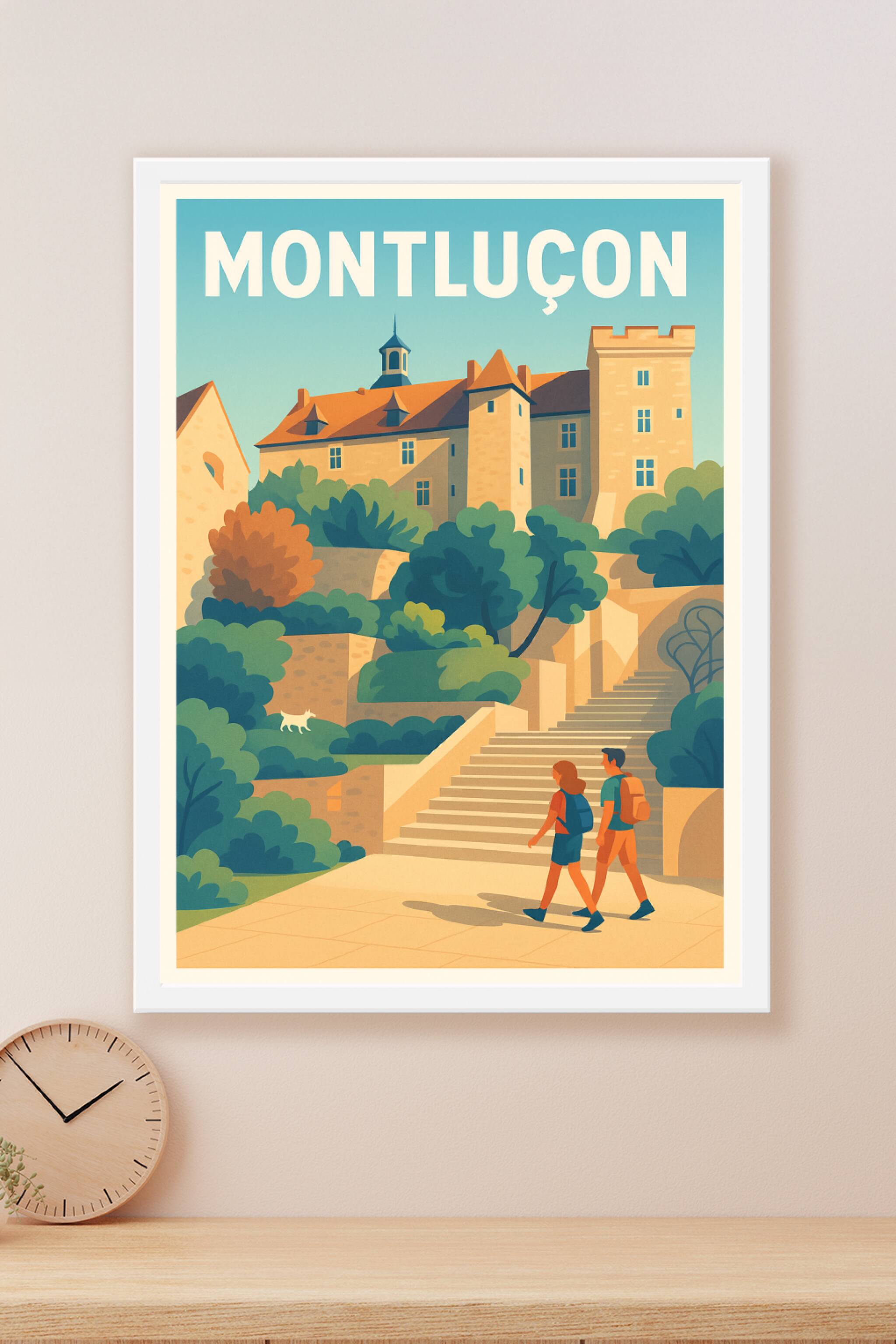 Découvrez Montluçon sous un nouveau jour avec cette affiche illustrée mettant en scène l'architecture emblématique et les escaliers pittoresques en...