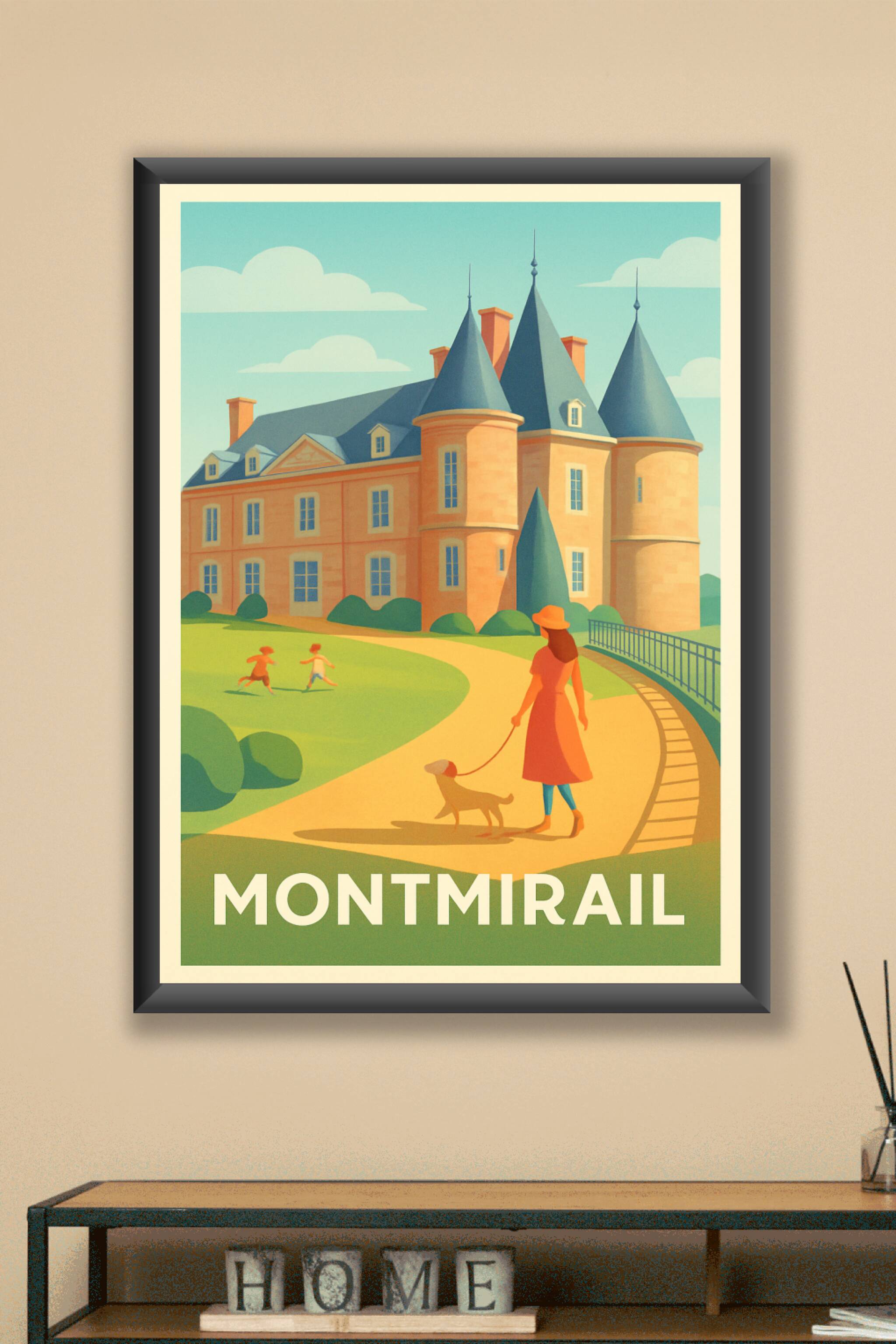 Découvrez cette superbe affiche illustrée mettant en scène le château emblématique de Montmirail, baigné d'une lumière douce et chaleureuse. Un poster qui invite à la promenade paisible, entre patrimoine et nature, avec une touche de poésie et de douceur de vivre. Ce poster est imprimé en tirage "Fine Art" sur papier 305g coton offrant une qualité d'impression exceptionnelle, idéale pour sublimer votre intérieur. Disponible en plusieurs formats de A1 à A4, avec ou sans cadre, cette affiche Montmirail est parfaite pour embellir votre décoration ou offrir un cadeau élégant aux amateurs de beaux paysages et de patrimoine français.
