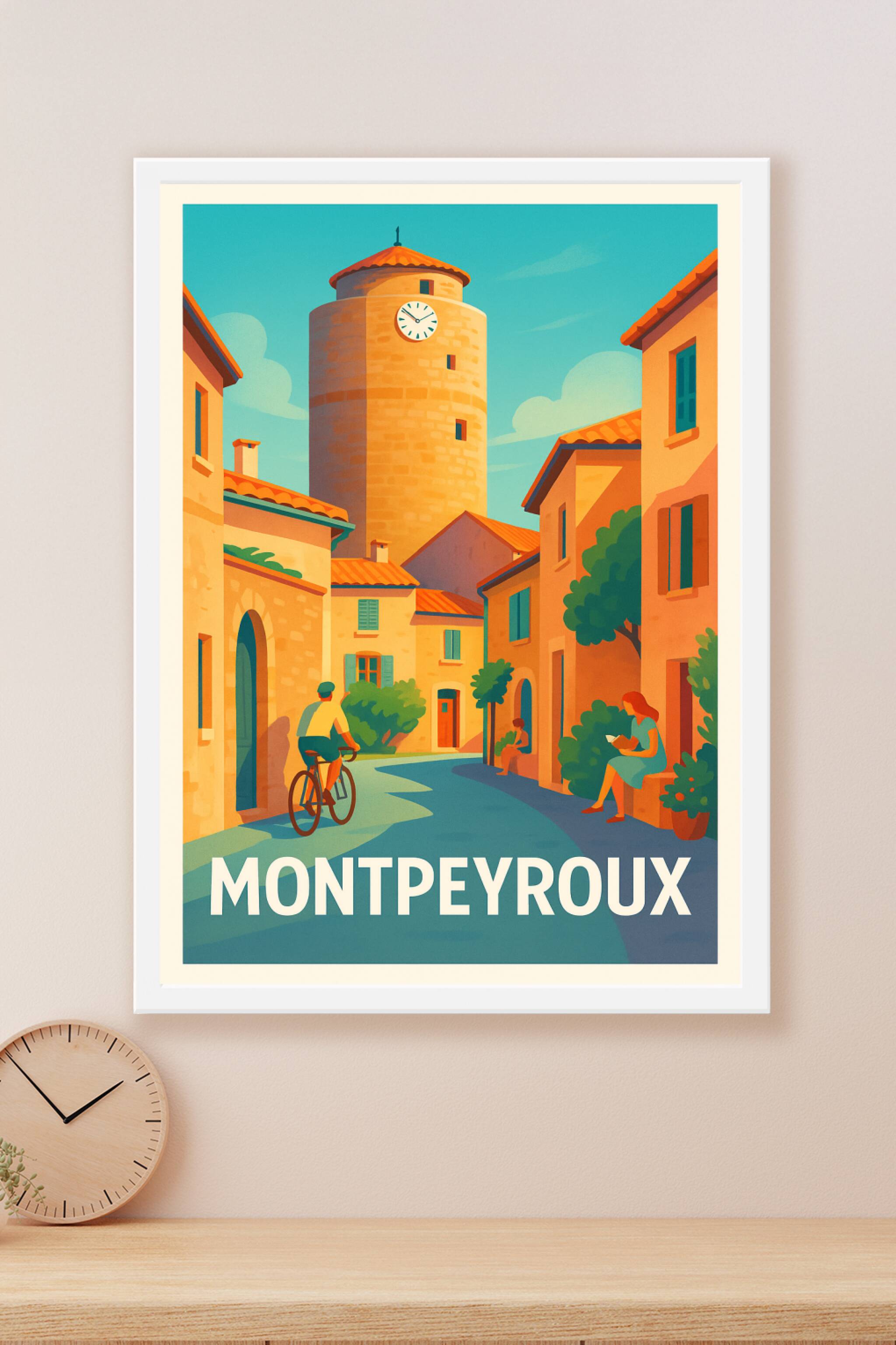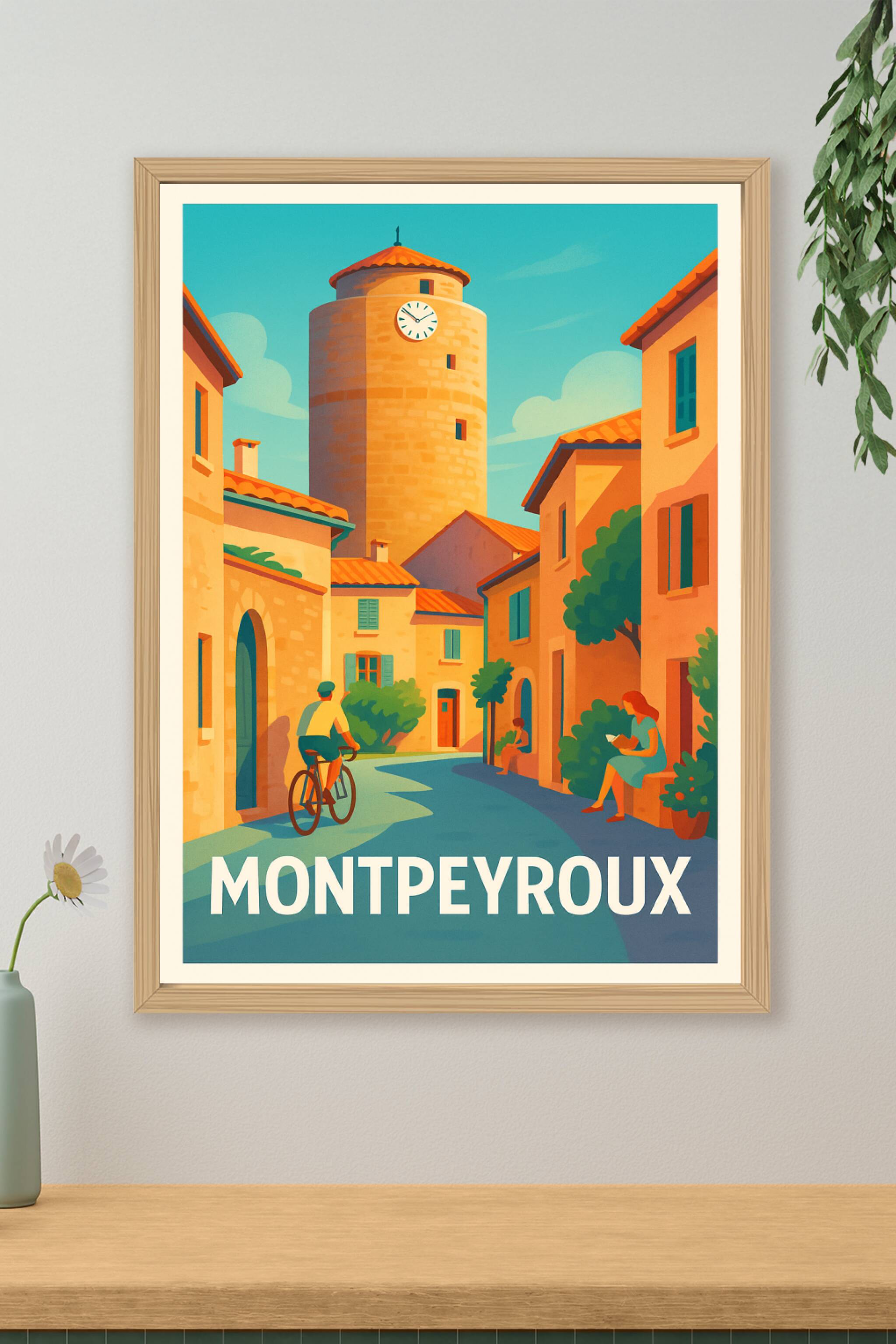 Découvrez l'atmosphère chaleureuse et authentique de Montpeyroux avec cette affiche illustrée aux couleurs douces et lumineuses. Le poster met en s...