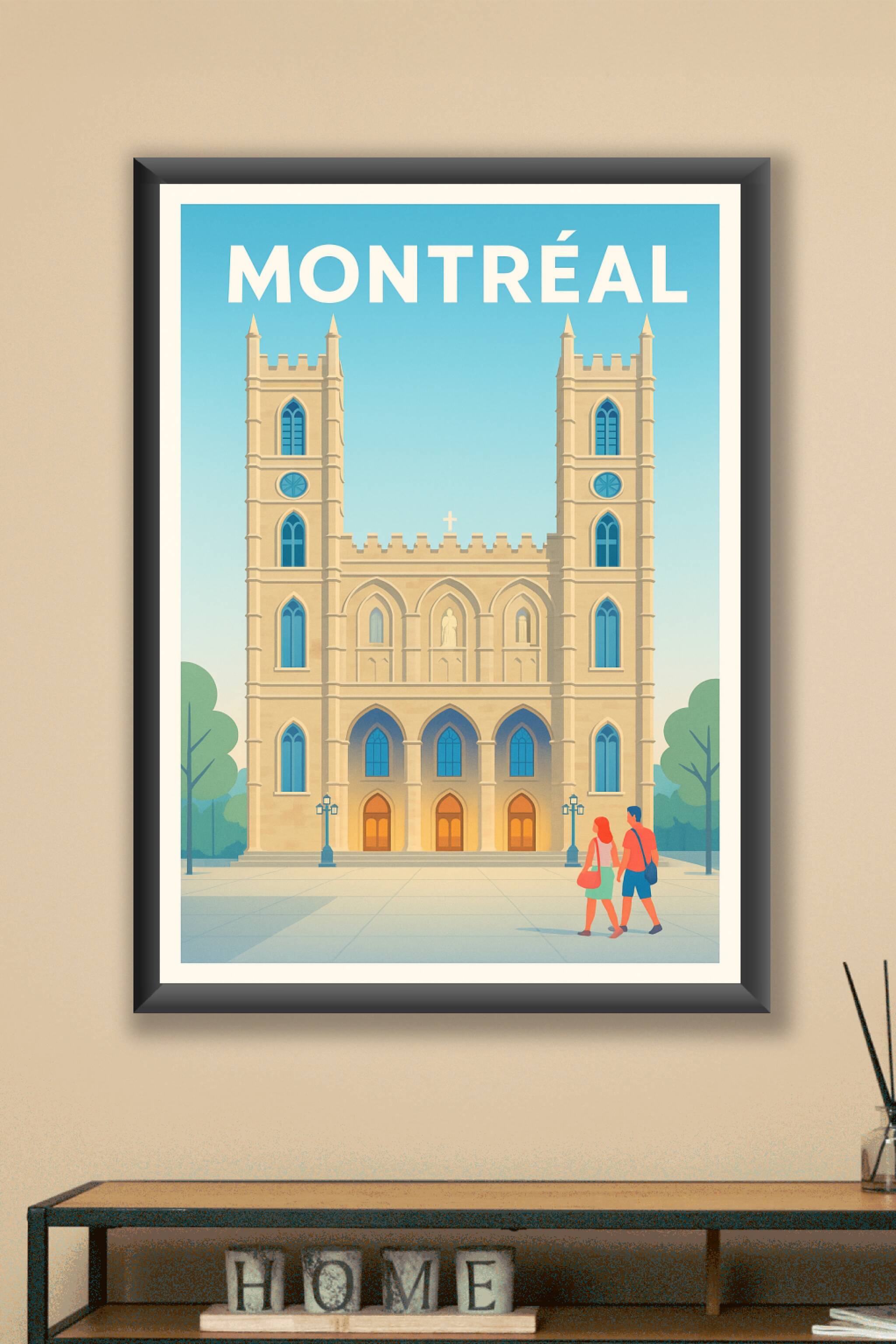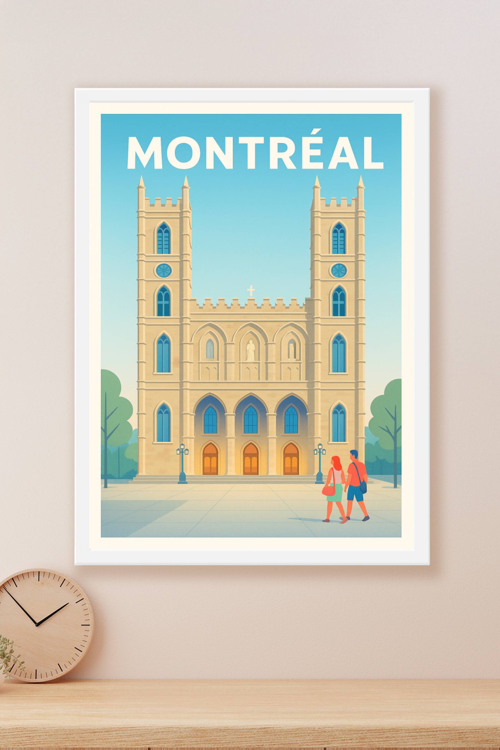 Découvrez Montréal à travers cette affiche illustrée mettant en scène la majestueuse Basilique Notre-Dame, un symbole emblématique de la ville. Ce ...