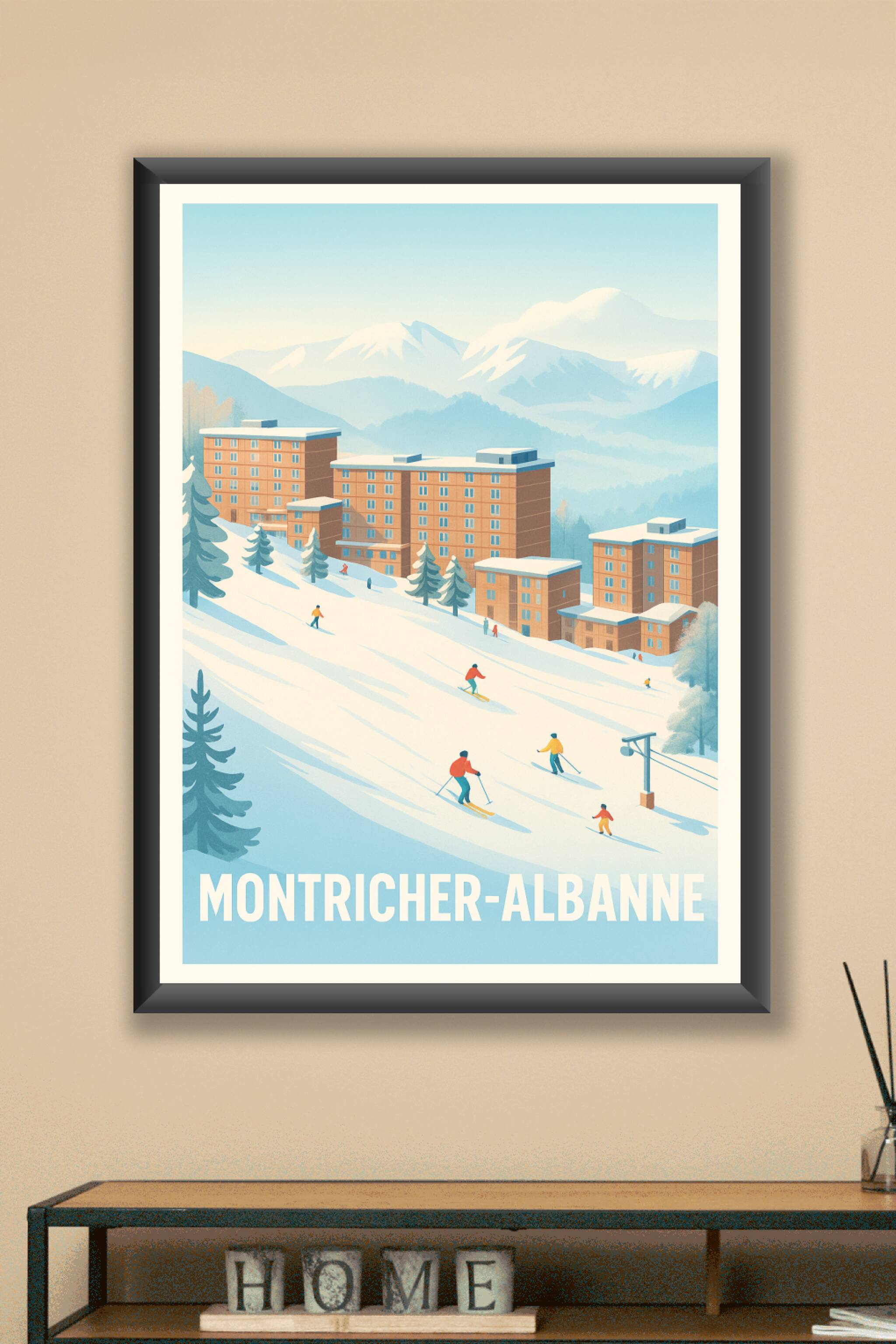 Découvrez la sérénité des Alpes avec cette affiche illustrée représentant la station de ski de Montricher-Albanne, où les paysages enneigés et les skieurs s’animent au pied des sommets majestueux. Ce poster apporte une touche douce et apaisante à votre intérieur, idéal pour les amoureux de la montagne et des sports d’hiver. Imprimée en tirage "Fine Art" sur un papier 305g coton de qualité supérieure, cette affiche garantit une fidélité des couleurs et une durabilité exceptionnelles. Disponible en formats A1 à A4, avec ou sans cadre, elle s’adapte parfaitement à toutes les décorations. Offrez-vous un morceau d’air pur montagnard, sublimé par une impression 100% française et premium.