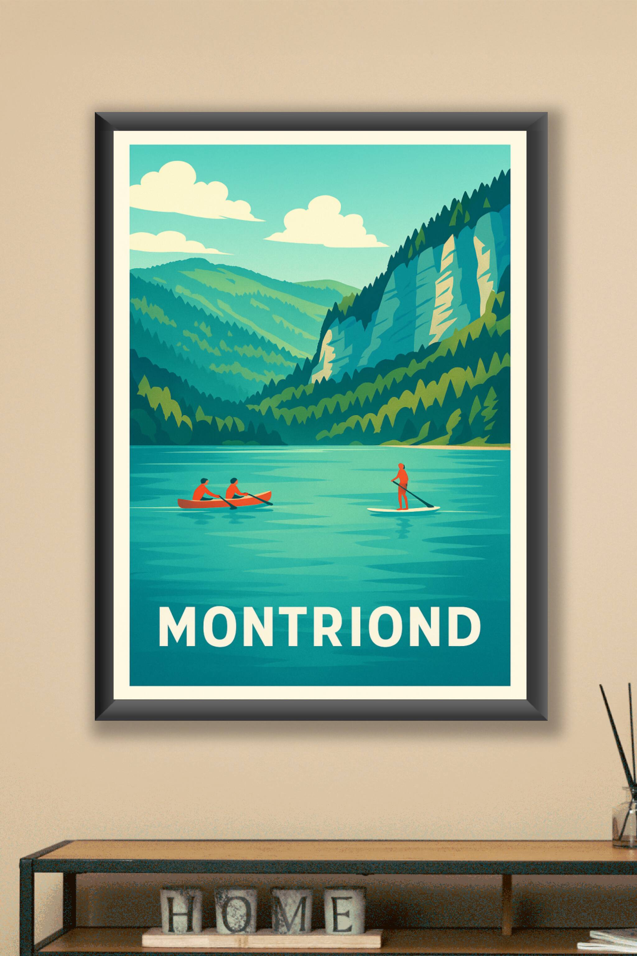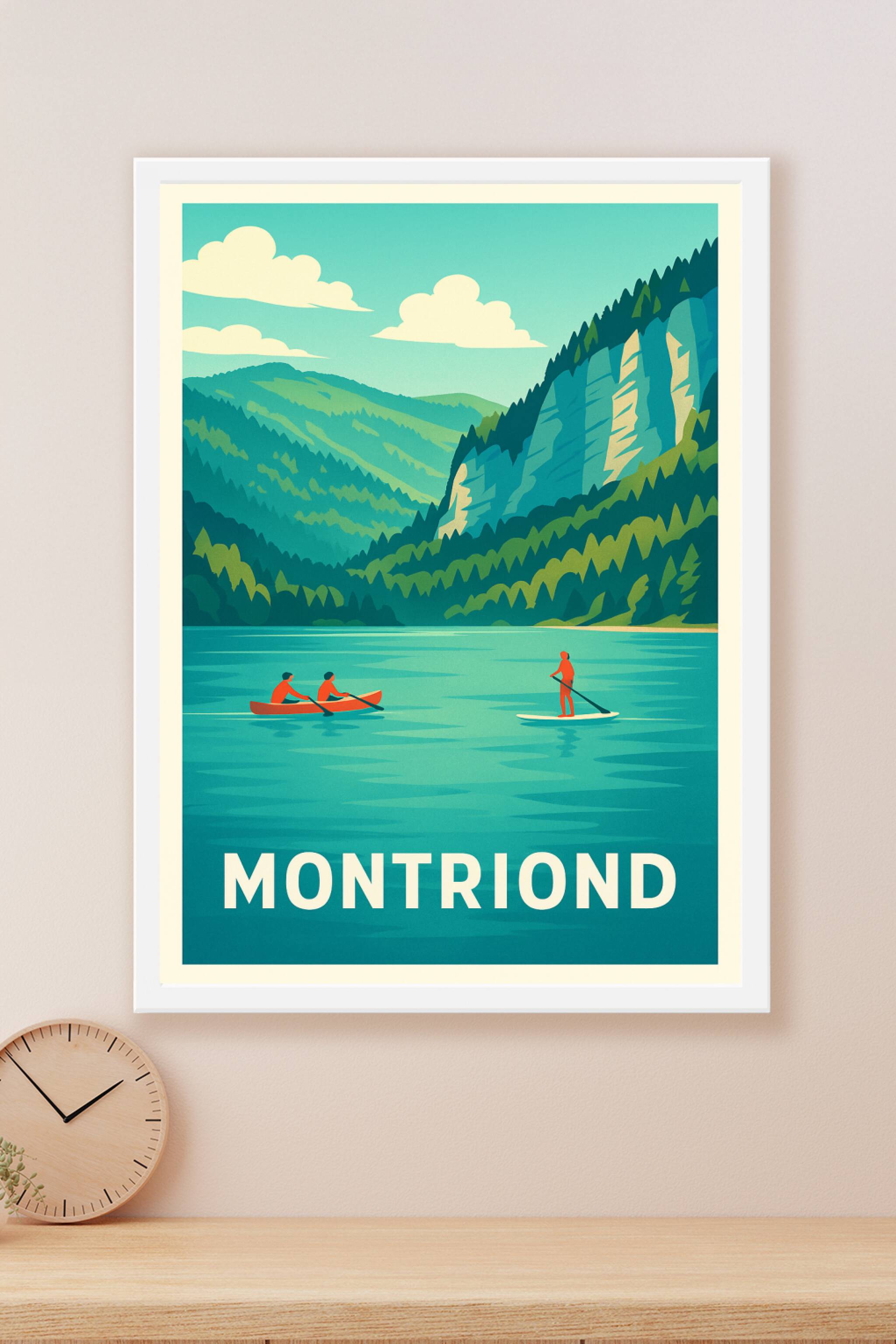 Découvrez la sérénité du lac de Montriond à travers cette affiche vintage qui capture les plaisirs simples de la nature : canoës glissant sur l'eau...