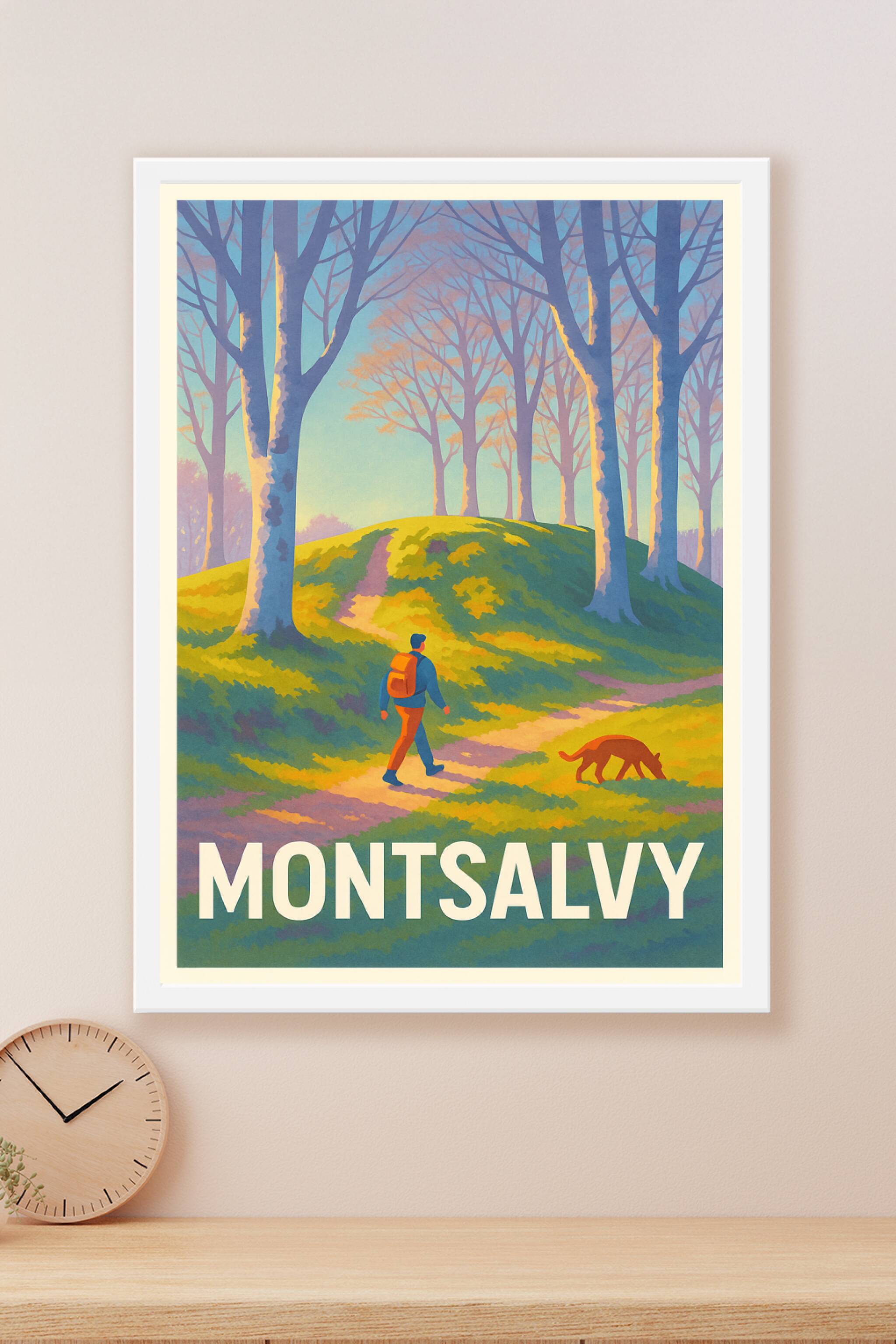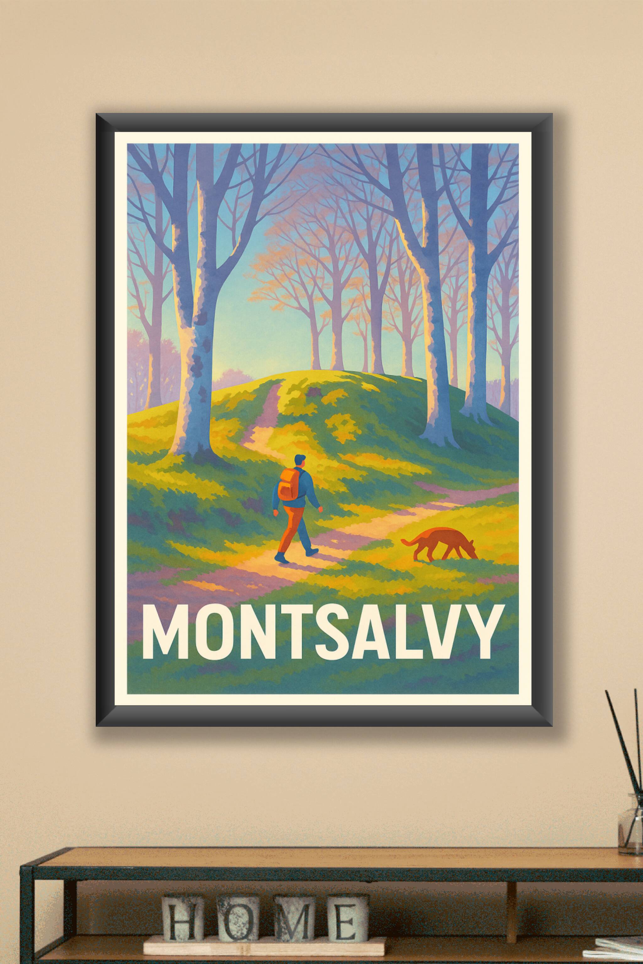 Découvrez la sérénité et la beauté des paysages naturels de Montsalvy avec cette affiche captivante représentant une promenade en forêt. Ce poster ...