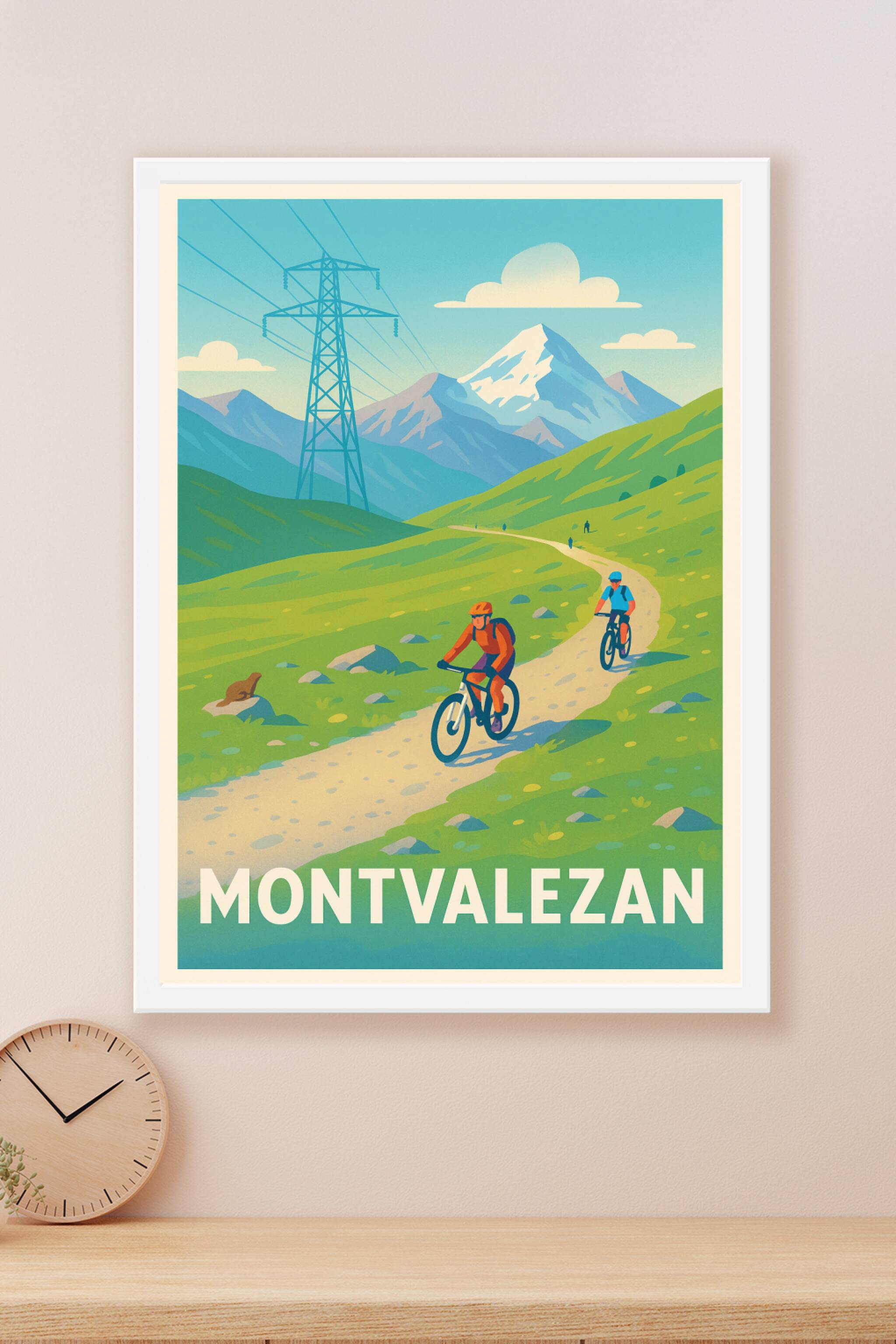 Découvrez l'esprit sportif et la beauté naturelle de Montvalezan avec cette affiche illustrée pleine de fraîcheur et de dynamisme. Le poster met en...