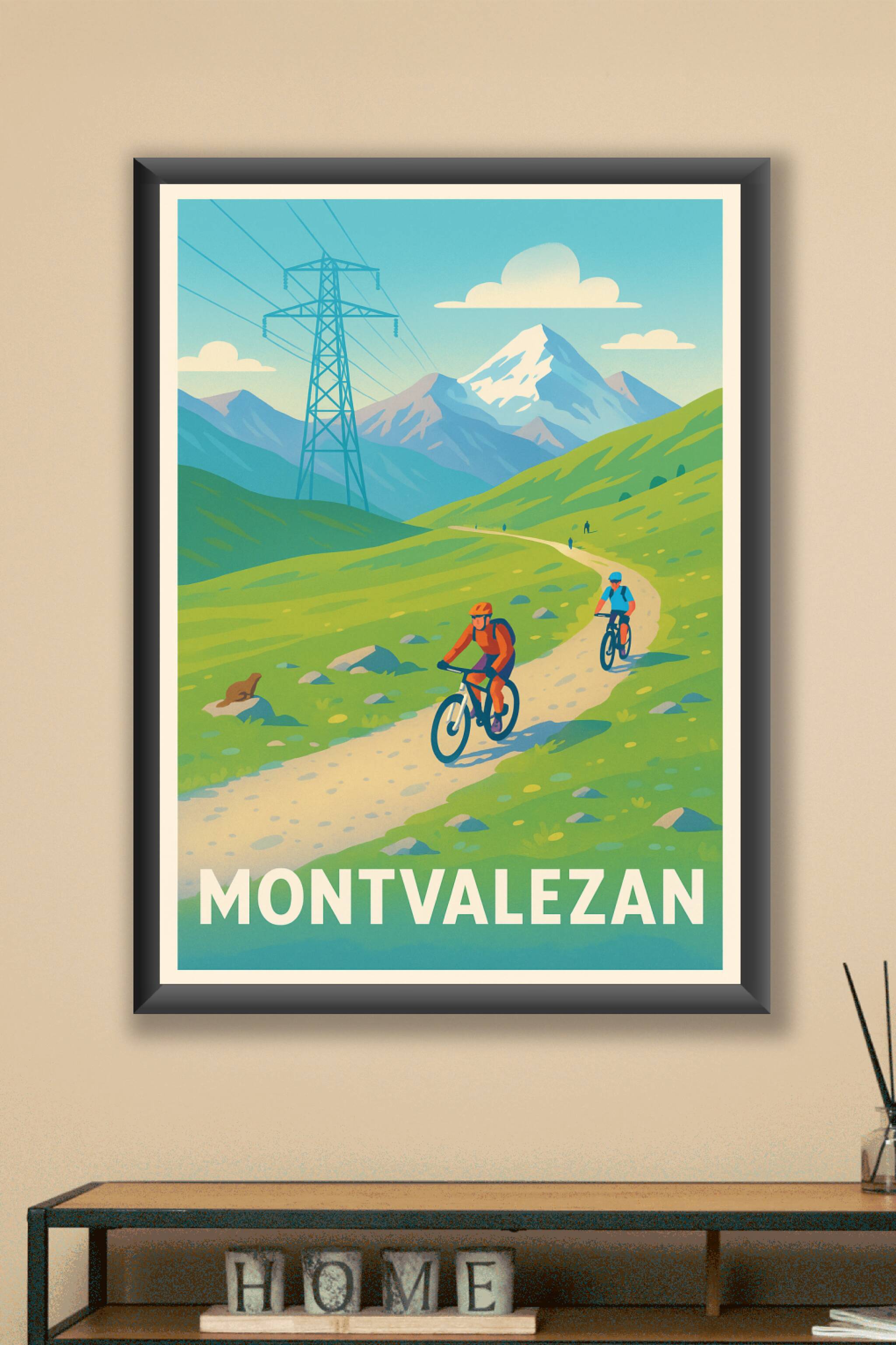 Découvrez l'esprit sportif et la beauté naturelle de Montvalezan avec cette affiche illustrée pleine de fraîcheur et de dynamisme. Le poster met en scène des cyclistes sur un chemin sinueux au cœur des montagnes verdoyantes, avec le sommet enneigé en arrière-plan, capturant l'essence des activités outdoor en milieu alpin.Ce poster est imprimé en tirage "Fine Art" sur un papier 305g coton, garantissant une qualité d'impression exceptionnelle et des couleurs éclatantes qui dureront dans le temps. Disponible en formats A1 à A4, avec ou sans cadre, cette affiche sublimera votre intérieur en apportant une touche sportive et naturelle. Commandez ce tirage premium 100% fabriqué en France pour offrir un cadeau original ou embellir votre décoration avec un souffle de grand air.