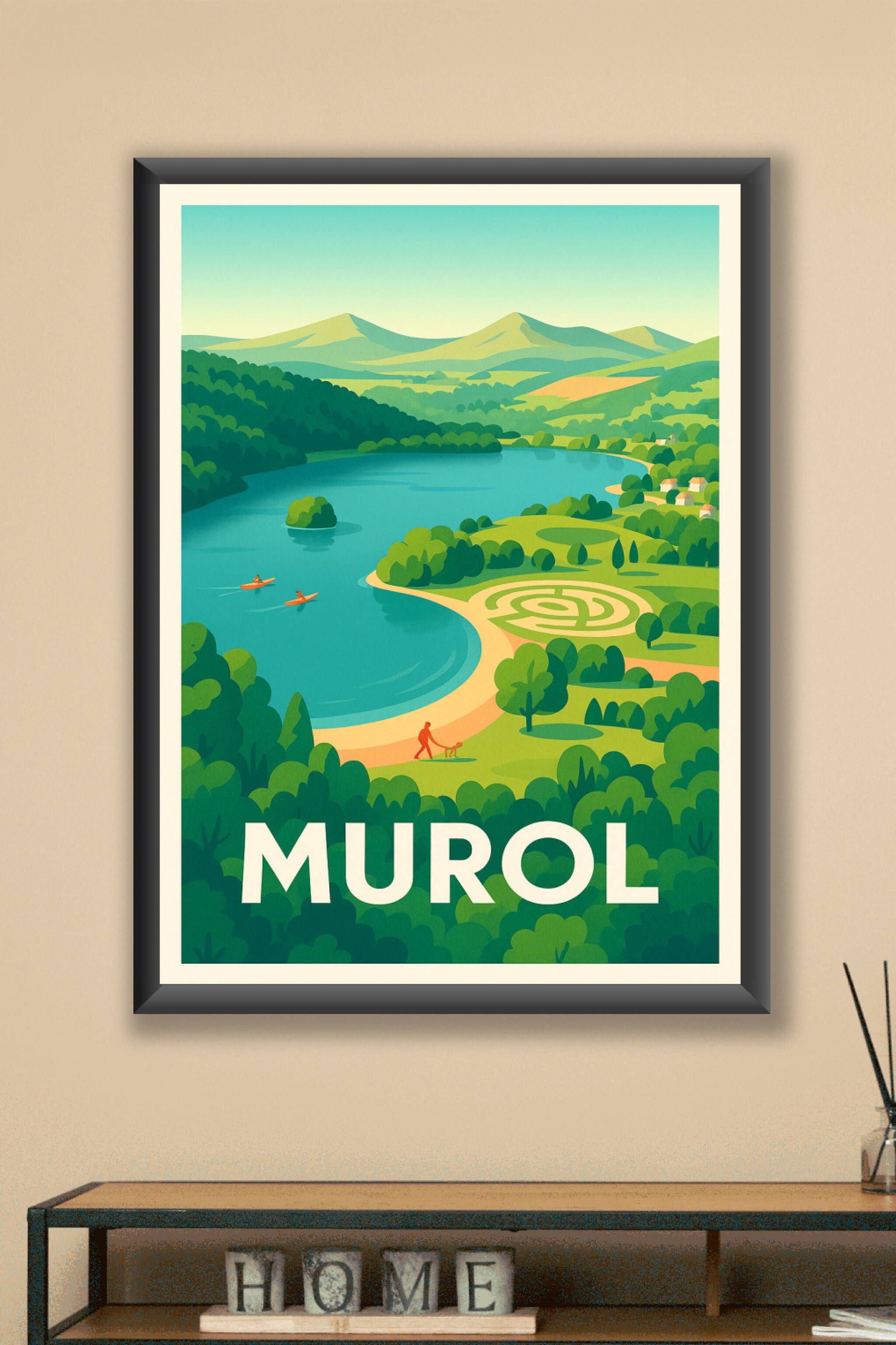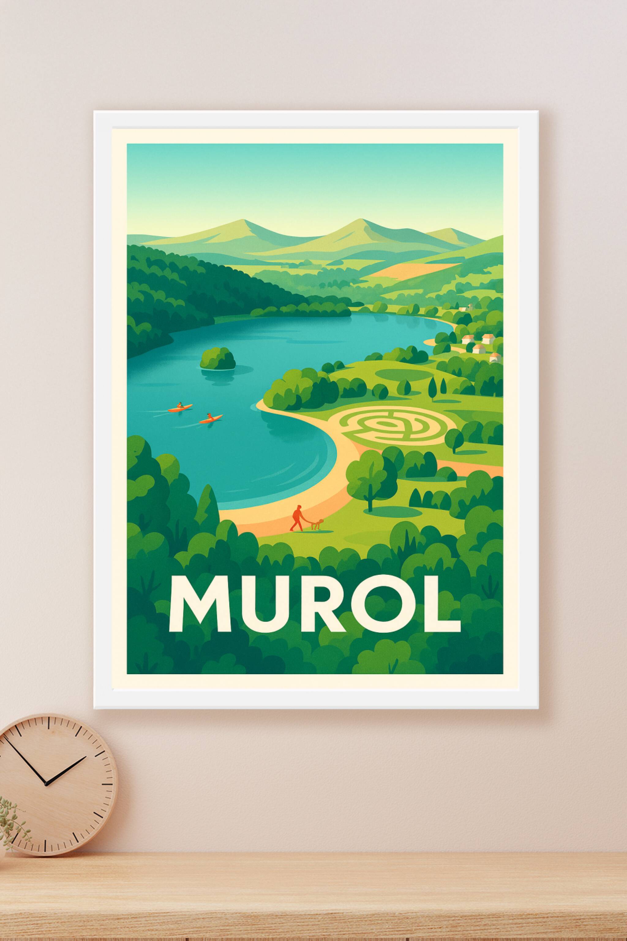 Découvrez la beauté paisible de Murol grâce à cette affiche illustrée mettant en valeur ses paysages verdoyants, son lac apaisant et ses collines m...