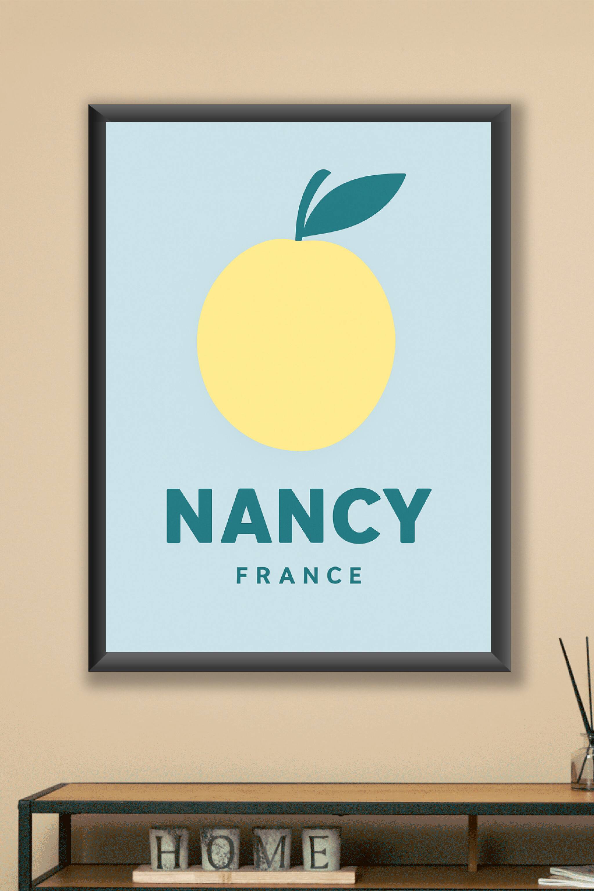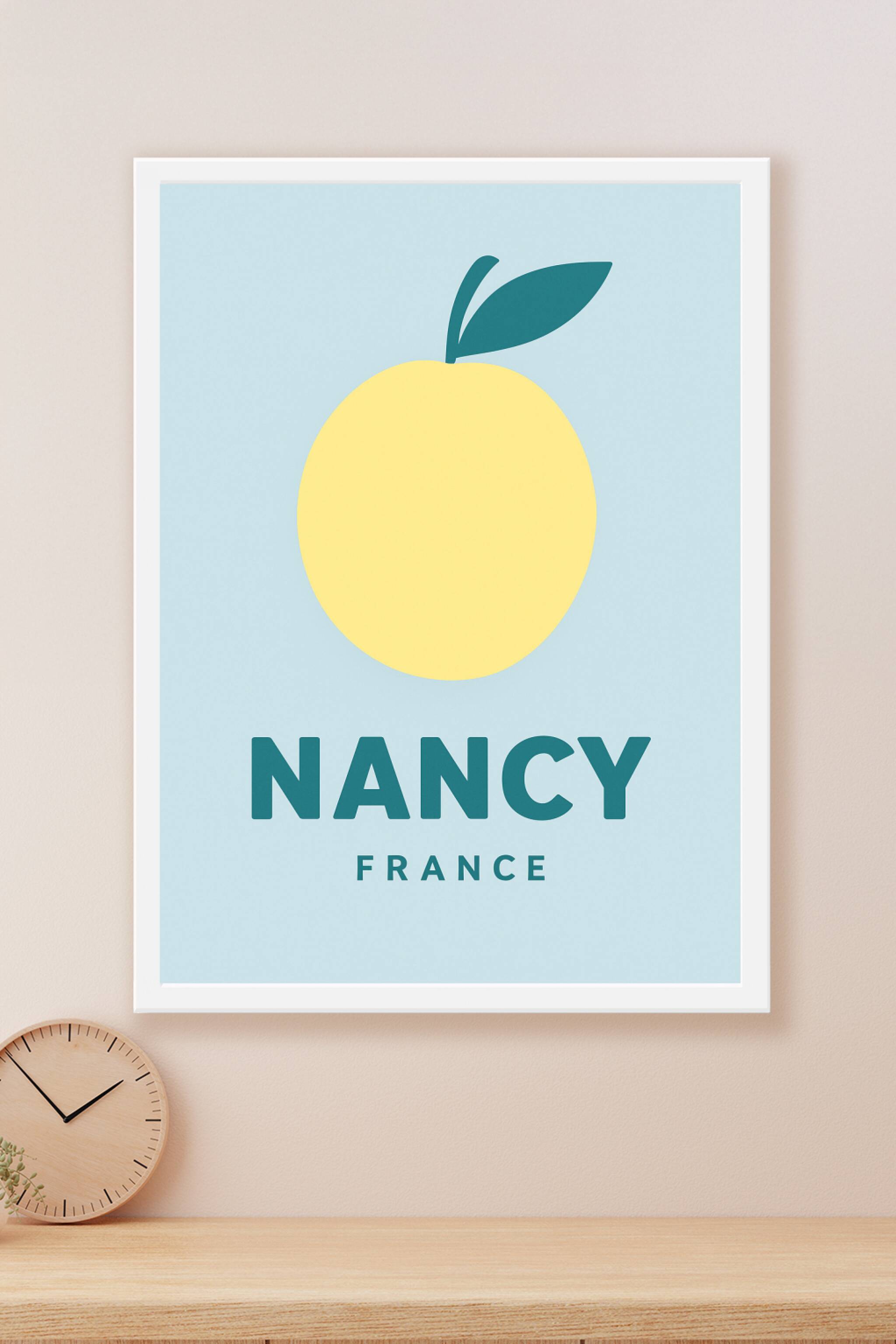Apportez une touche de fraîcheur et de simplicité à votre intérieur avec cette affiche minimaliste mettant en scène un fruit stylisé symbolisant Nancy. Ce poster, au design épuré et coloré, se démarque par sa modernité et son élégance discrète. Imprimé en haute définition sur un papier couché brillant de 250 g/m², il offre un rendu éclatant, épais et résistant. Disponible en formats A1 à A4, avec ou sans cadre, cette affiche s'adapte à tous les espaces et styles décoratifs. Profitez de la qualité premium de cette impression durable pour valoriser vos murs ou offrir un souvenir original aux amateurs de la ville de Nancy.