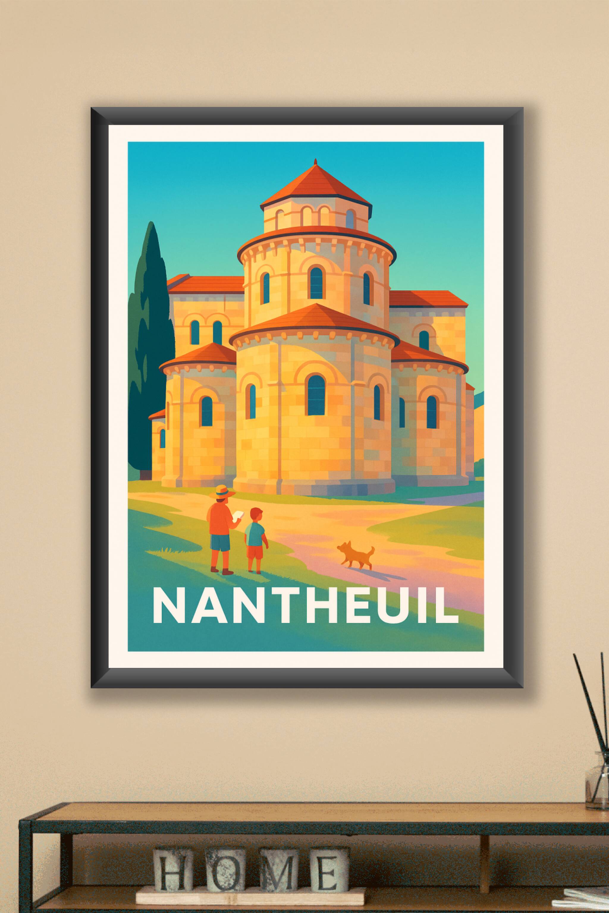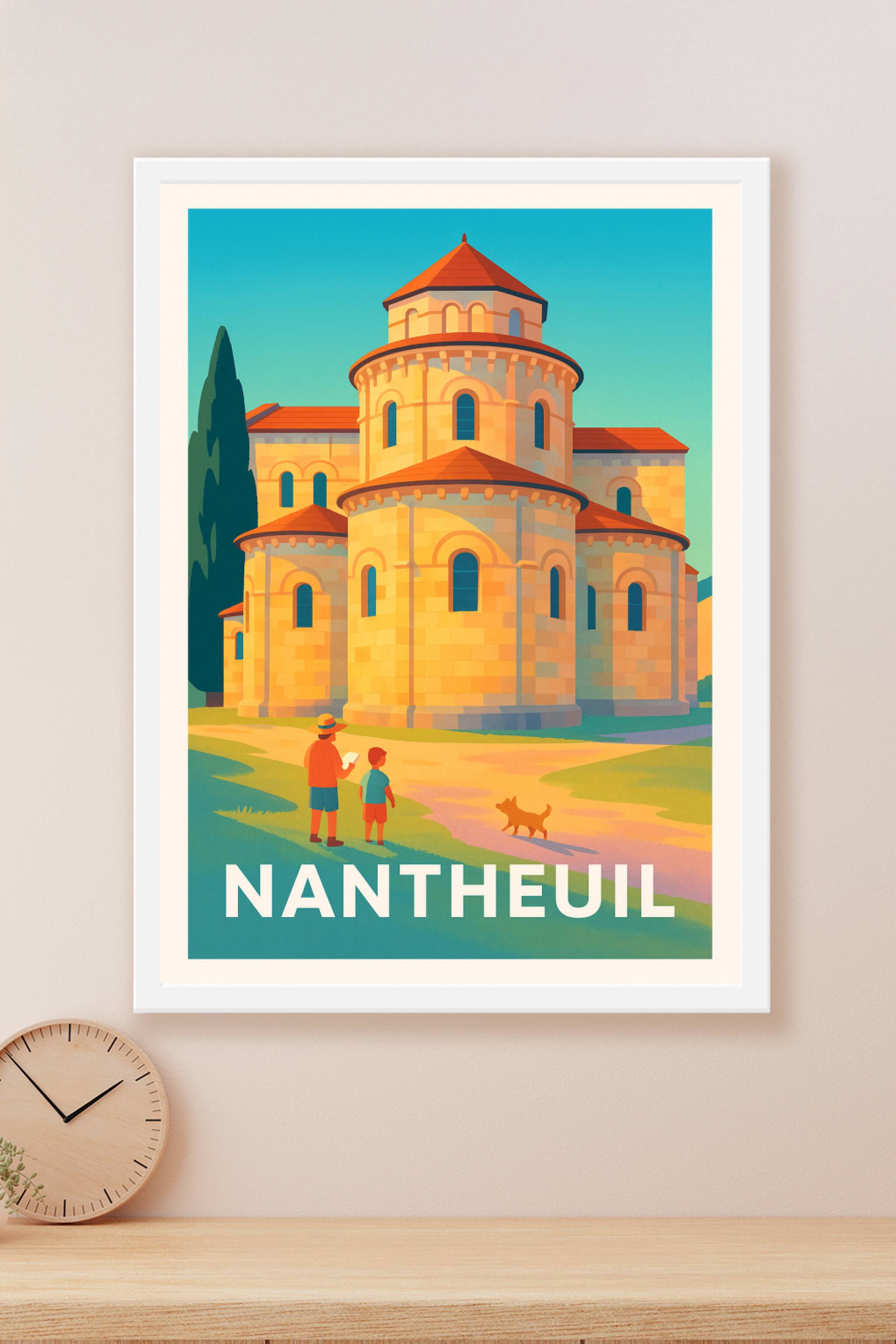 Découvrez la beauté intemporelle de Nantheuil avec cette affiche illustrée mettant en avant l'élégance de son architecture romane baignée par une d...