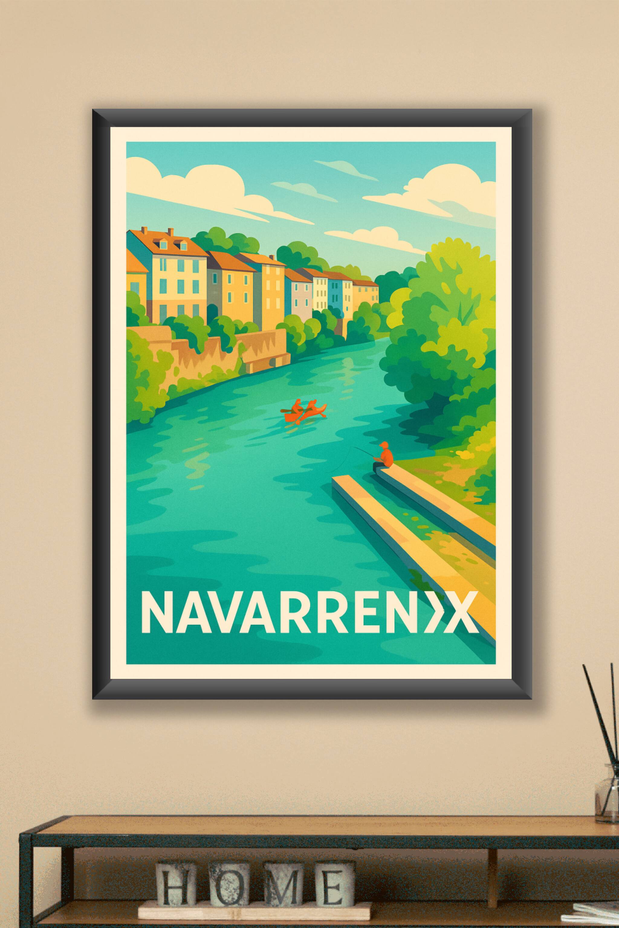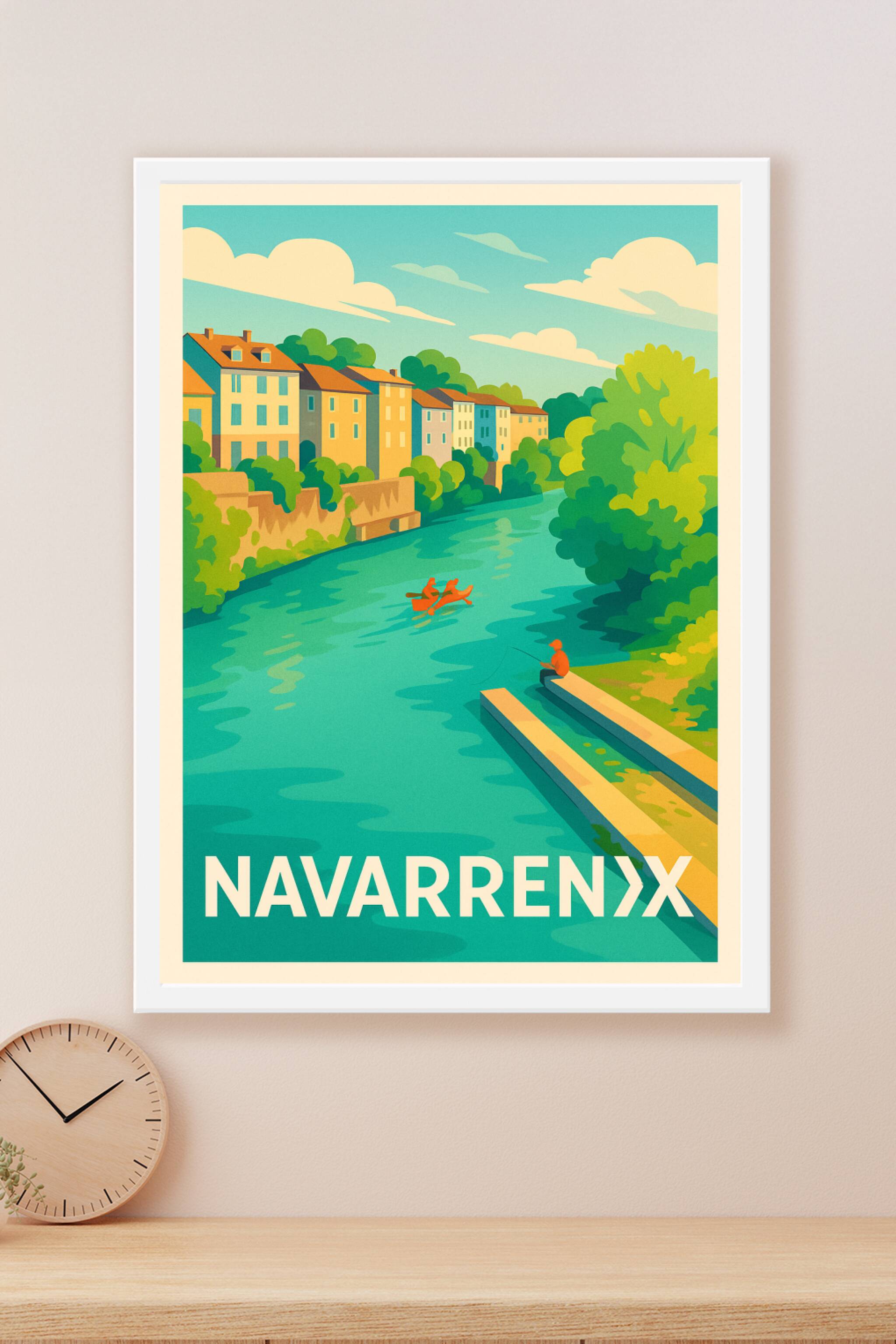 Découvrez la douce quiétude de Navarrenx avec cette magnifique affiche illustrée, où la rivière paisible s'écoule doucement entre maisons colorées et nature verdoyante. Deux personnes en barque et un pêcheur sur un ponton ajoutent une touche de vie et de sérénité à cette scène bucolique.Ce poster est imprimé en tirage "Fine Art" sur un papier 305g coton de qualité supérieure, assurant des couleurs lumineuses et une durabilité optimale. Disponible en formats A1 à A4, avec ou sans cadre, cette affiche apportera une ambiance apaisante et élégante à votre intérieur. Profitez d'une impression premium 100% fabriquée en France pour une décoration raffinée ou un cadeau unique aux amoureux de Navarrenx.