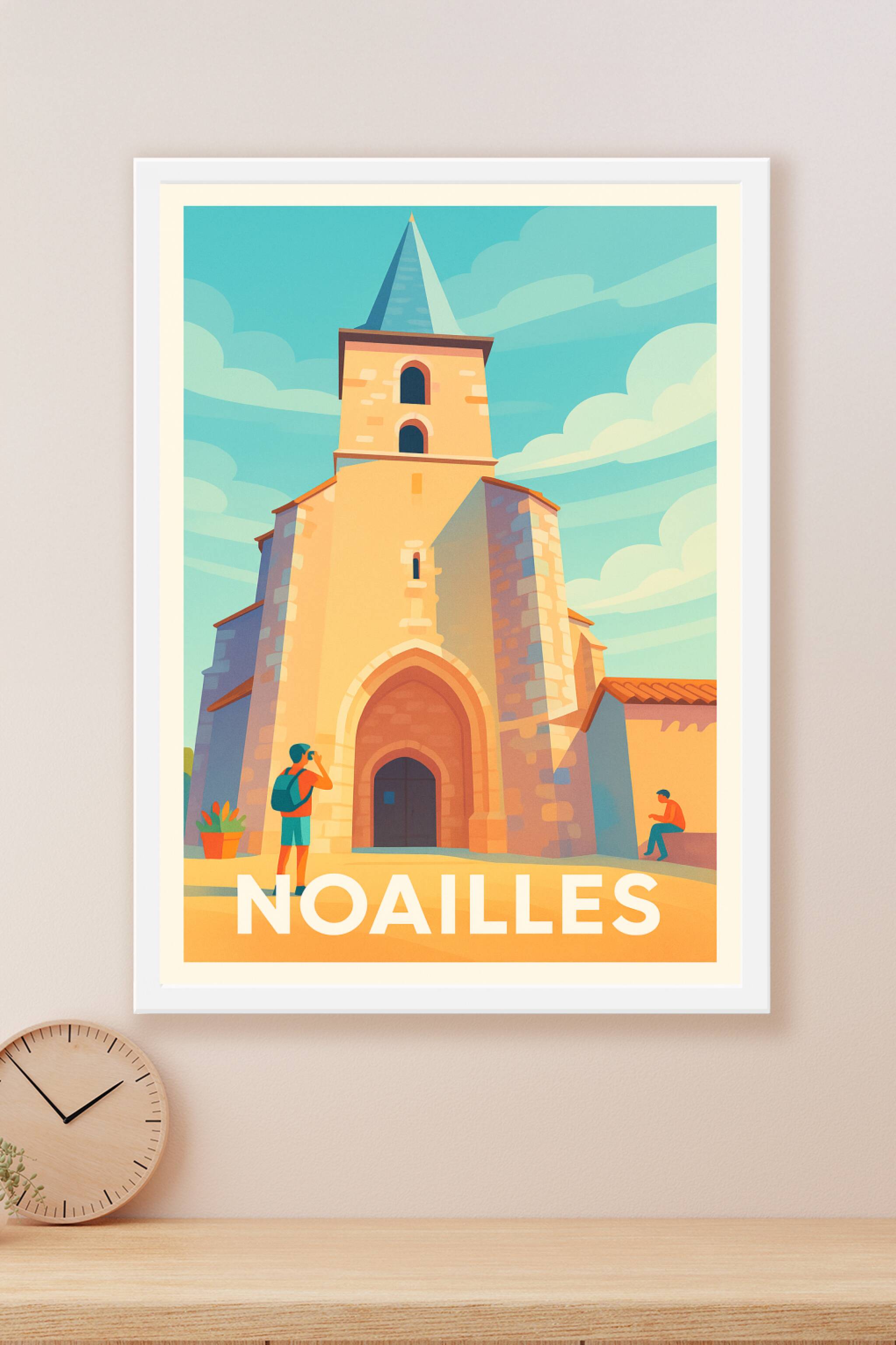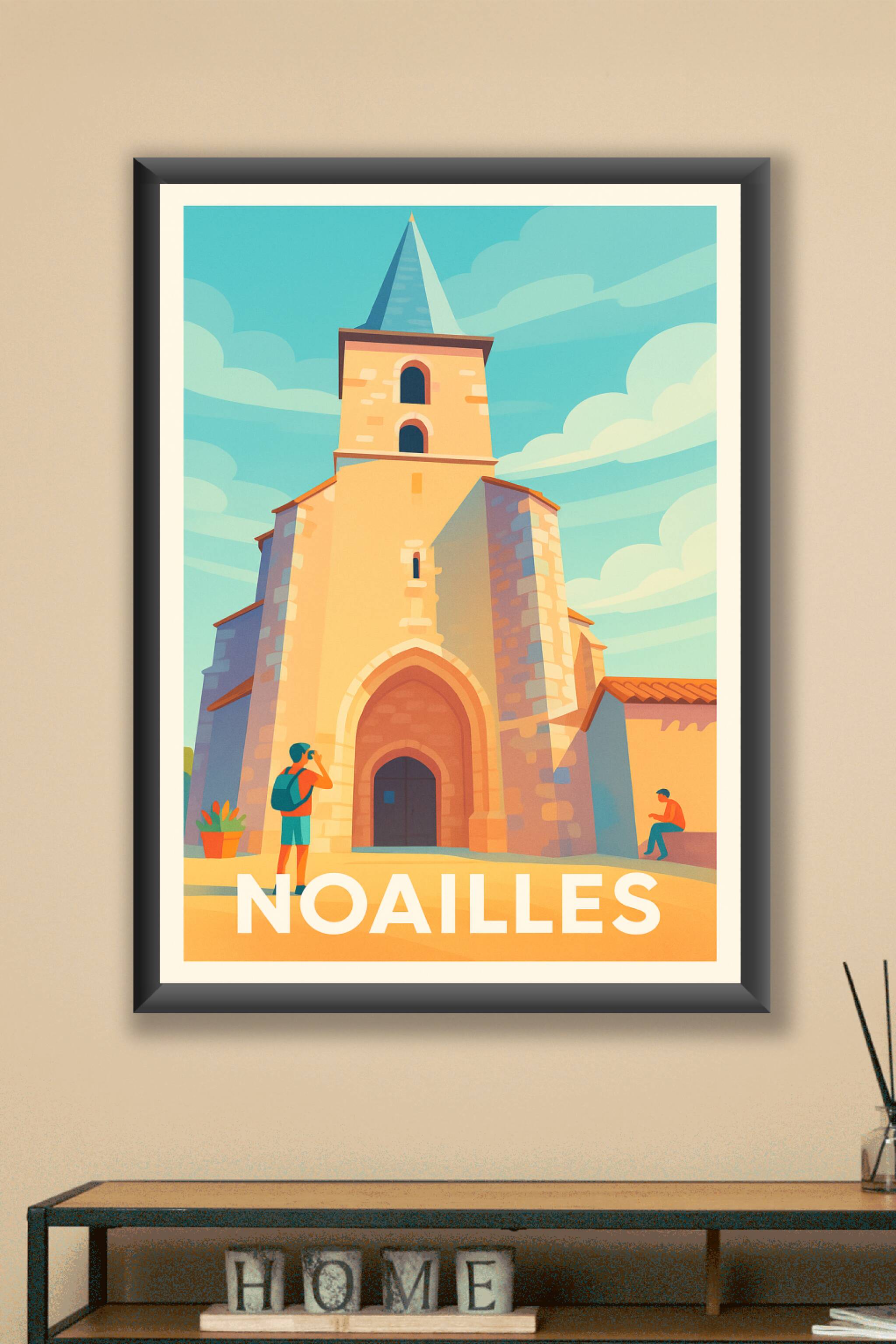 Découvrez l'élégance intemporelle de Noailles avec cette affiche illustrée mettant en avant l'architecture remarquable de son édifice emblématique....